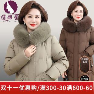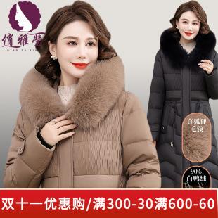 Chaqueta de plumas para mujer de mediana edad y anciana Qiao Yaying, otoño e invierno, plumón de pato blanco, abrigo grueso y cálido de piel de zorro de longitud media