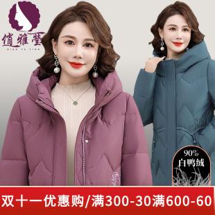 Chaqueta de plumón elegante de invierno para madre, de longitud media, nueva chaqueta de plumón de pato blanca de otoño e invierno para mujer de mediana edad y anciana, abrigo grueso de algodón 2022