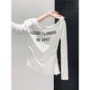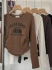 YPFF - Camiseta básica de manga larga con cuello redondo, estilo europeo y americano, estilo retro, ajustada, adelgazante, de color sólido, corta y pequeña