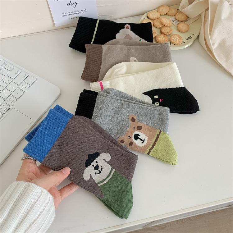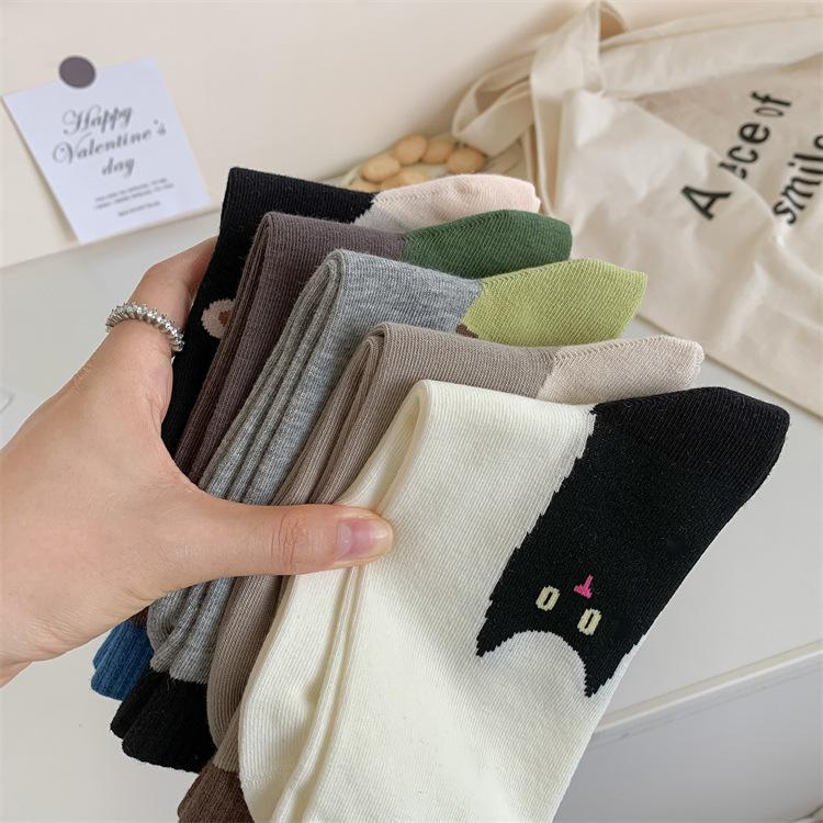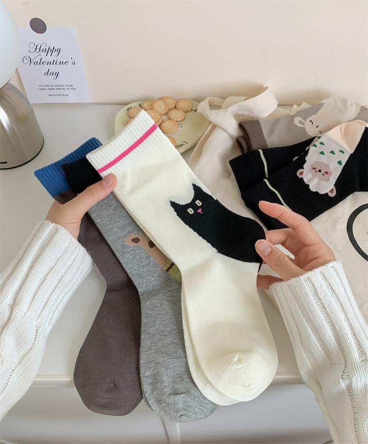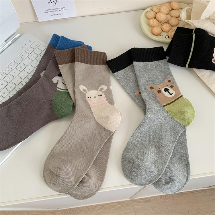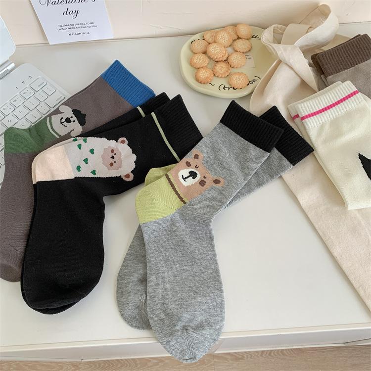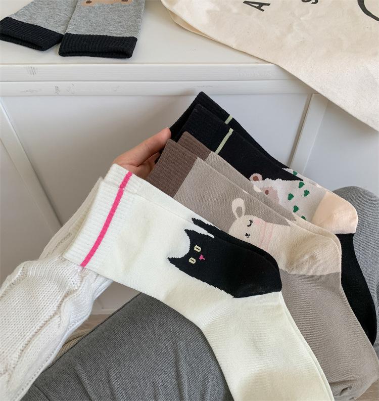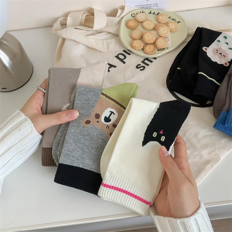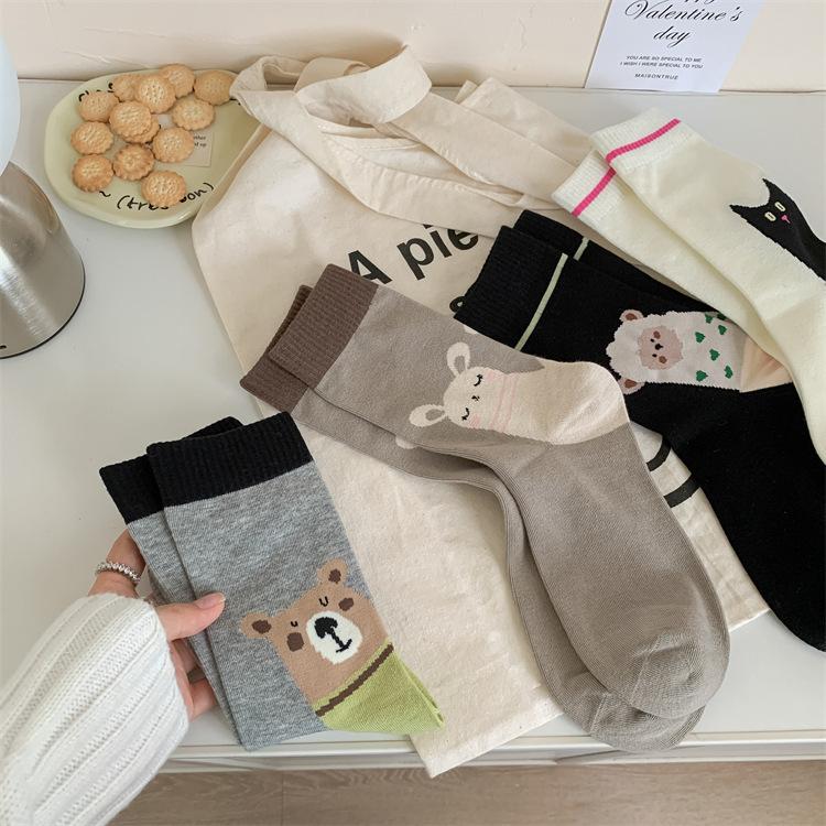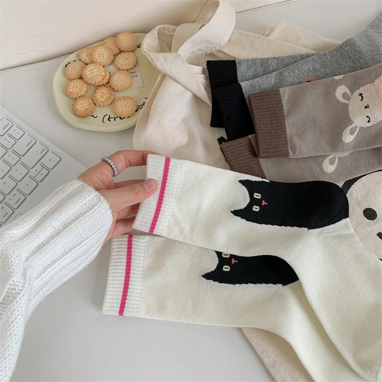 Calcetines de Nuevo Estilo Otoño e Invierno 2024 para Mujer, Ins Modernos Estilo Japonés Lindo Dibujo Animado Kitty Oso Personalizados Estilo Académico Calcetines Medios