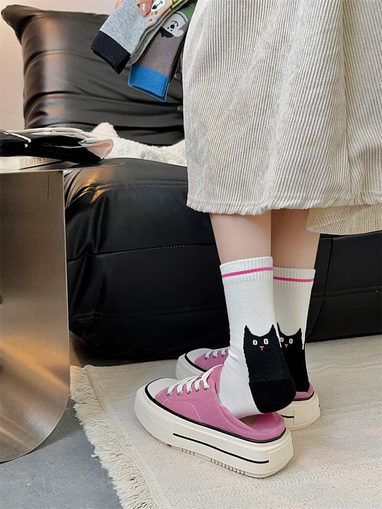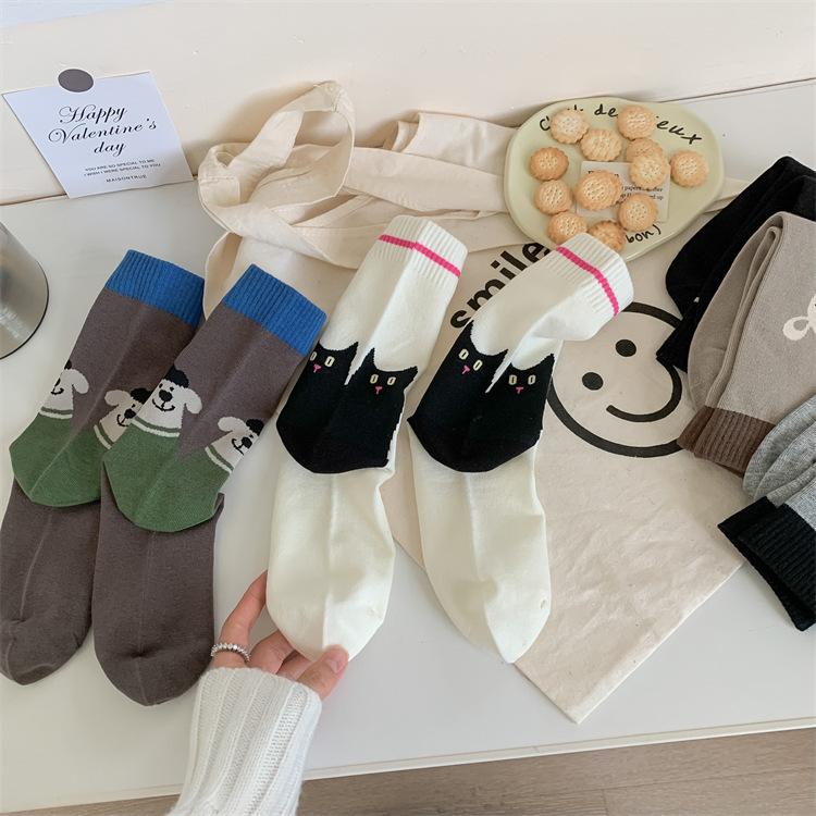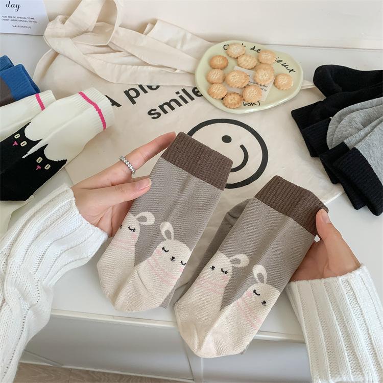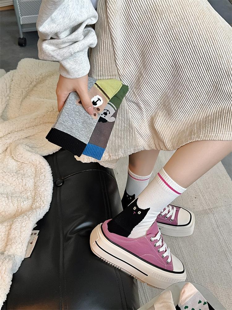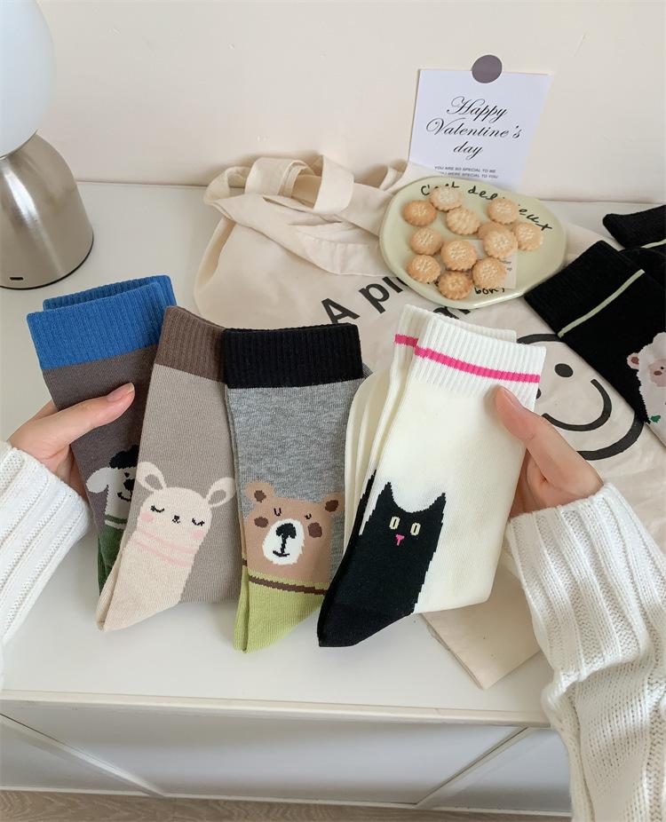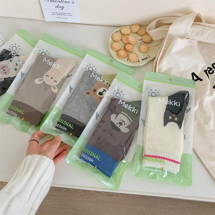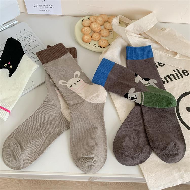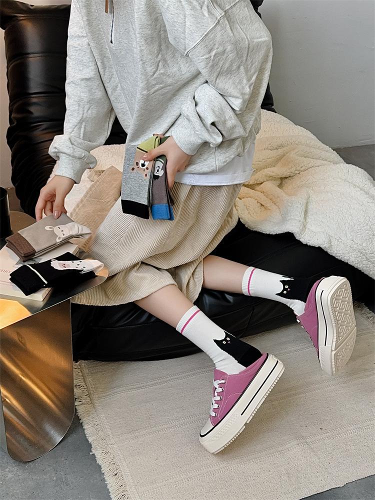Calcetines de Nuevo Estilo Otoño e Invierno 2024 para Mujer, Ins Modernos Estilo Japonés Lindo Dibujo Animado Kitty Oso Personalizados Estilo Académico Calcetines Medios