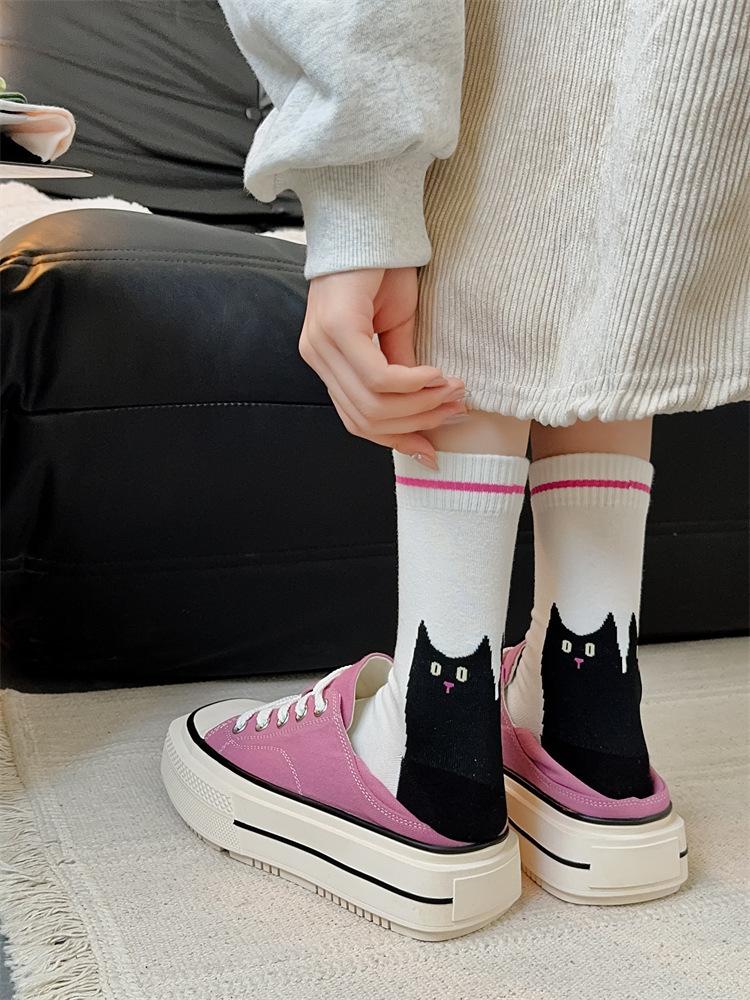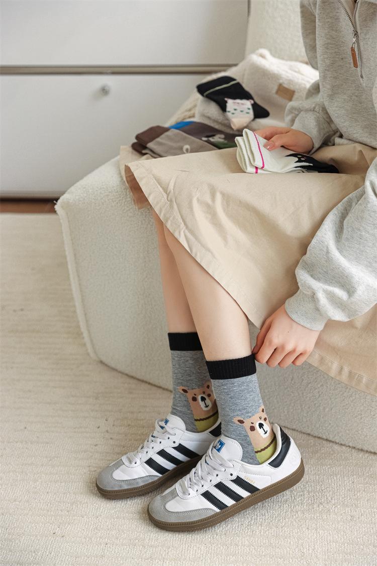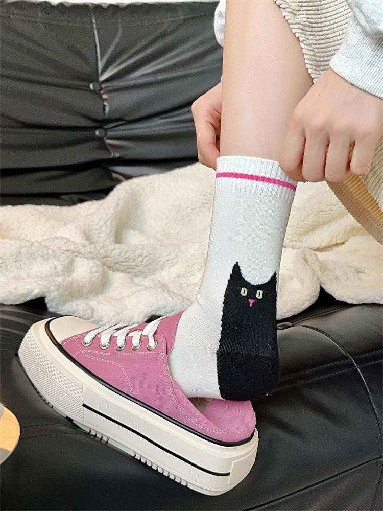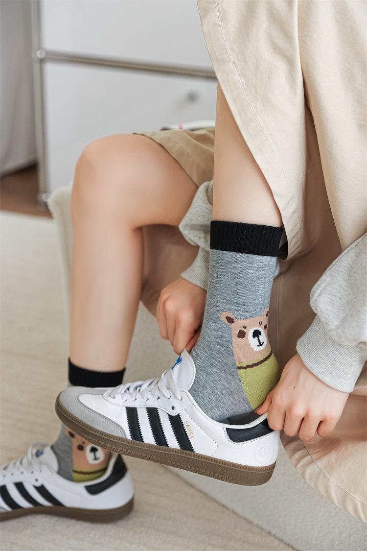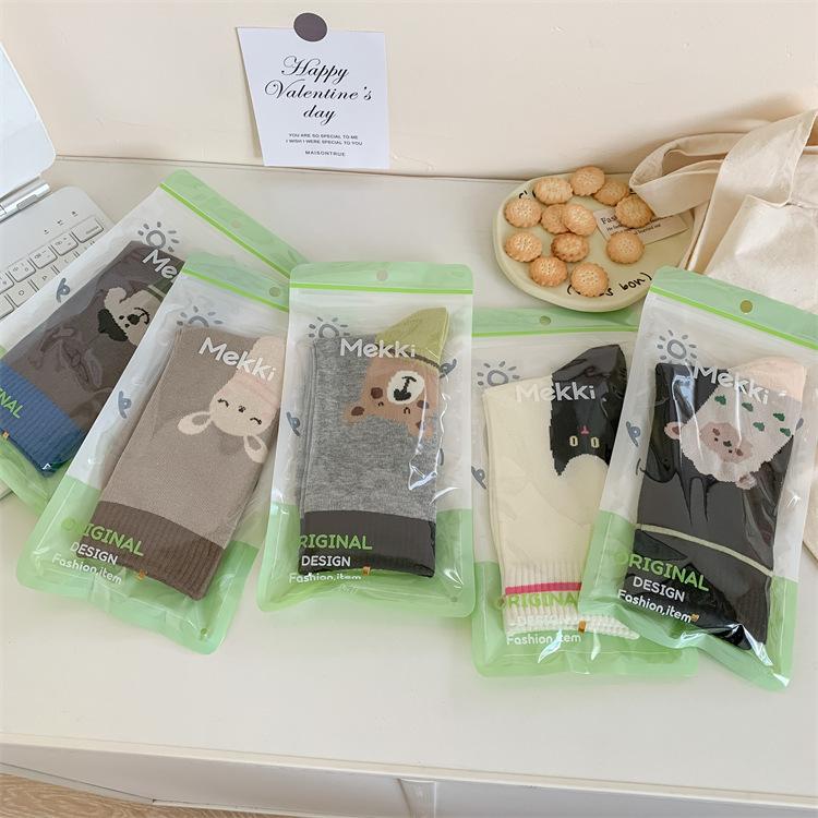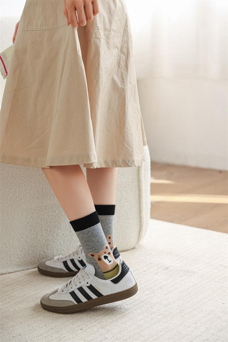 Calcetines de Nuevo Estilo Otoño e Invierno 2024 para Mujer, Ins Modernos Estilo Japonés Lindo Dibujo Animado Kitty Oso Personalizados Estilo Académico Calcetines Medios