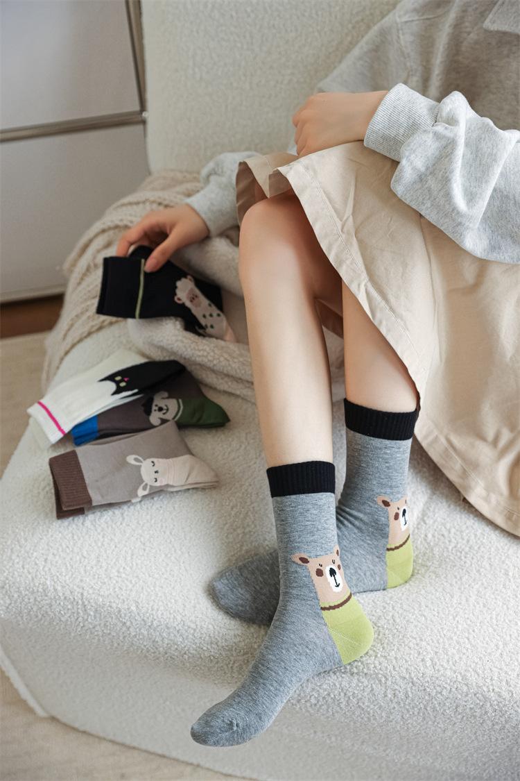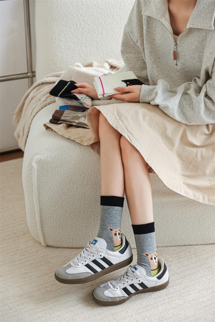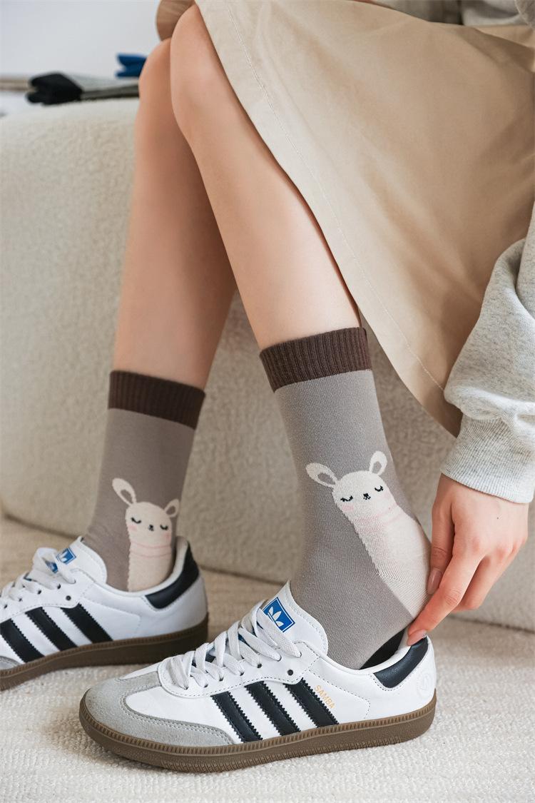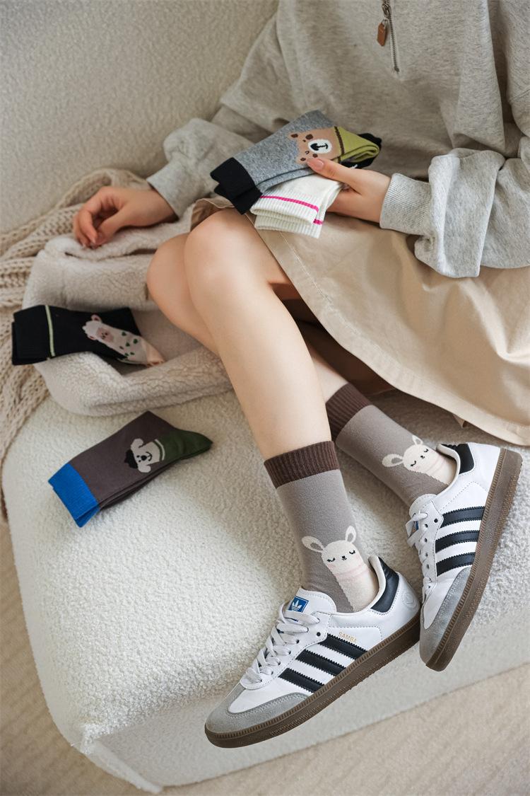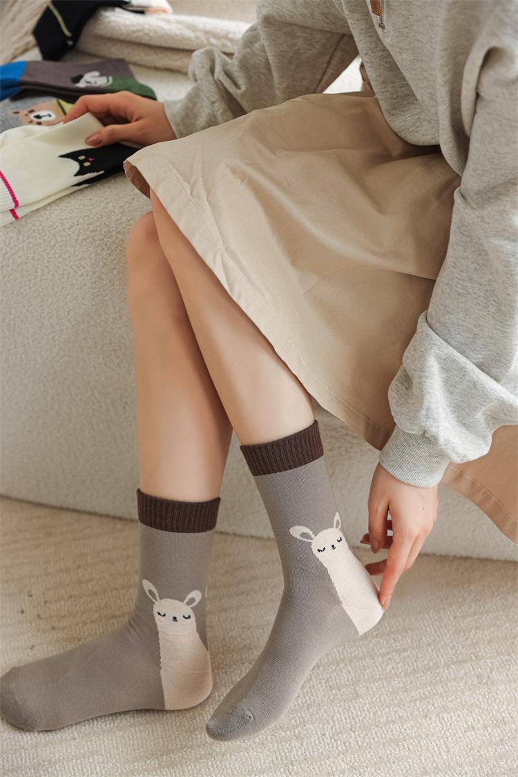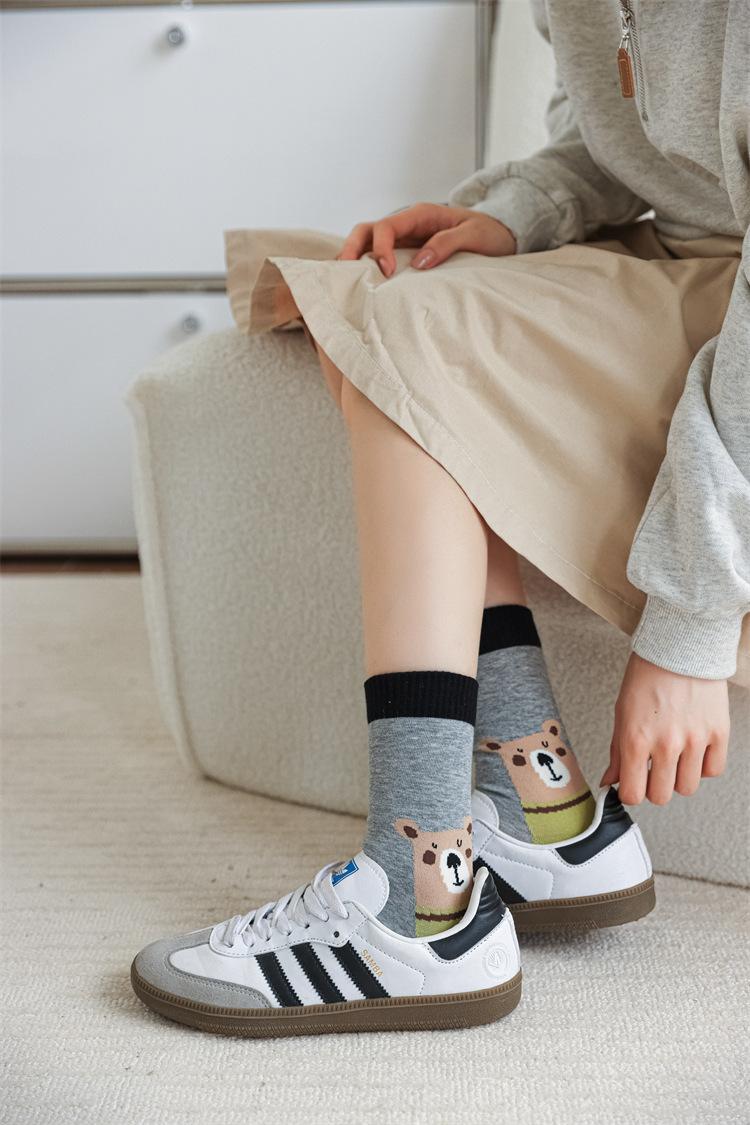 Calcetines de Nuevo Estilo Otoño e Invierno 2024 para Mujer, Ins Modernos Estilo Japonés Lindo Dibujo Animado Kitty Oso Personalizados Estilo Académico Calcetines Medios
