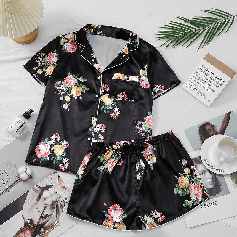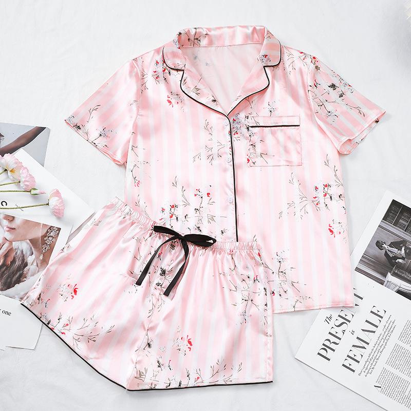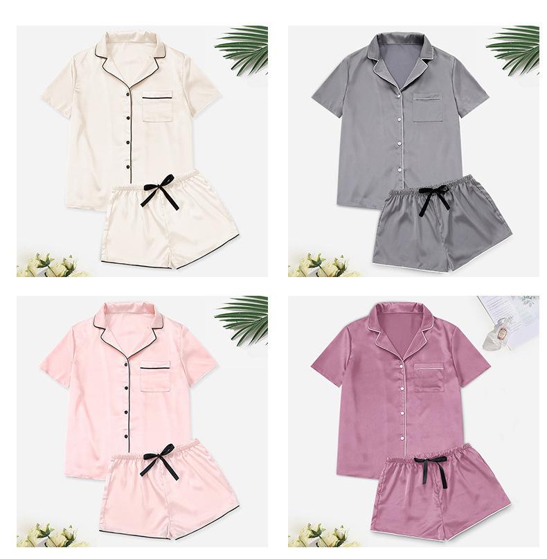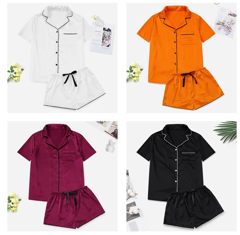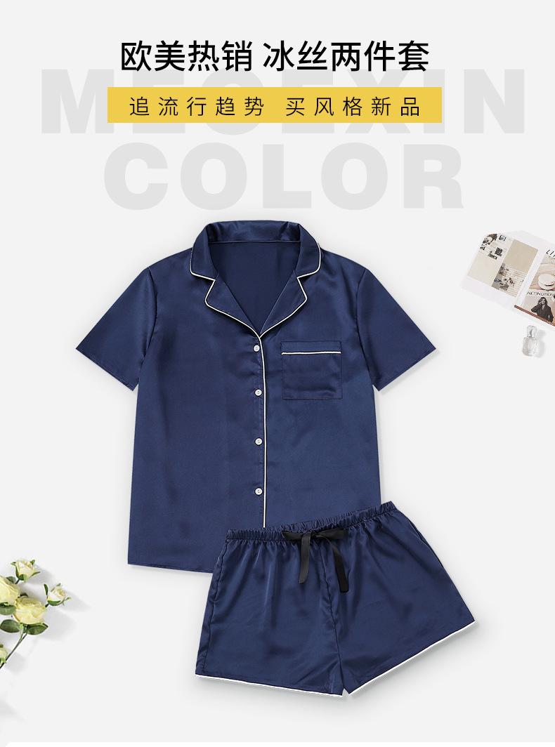 Pijama de verano de alta calidad de satén elástico, cómodo, para el hogar, de dos piezas, multicolor, para comercio exterior transfronterizo en Amazon.