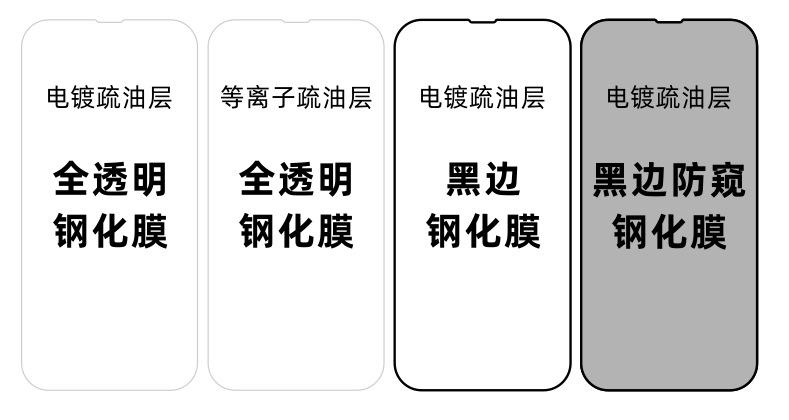 Full screen transparent electroplated oleophobic layer, Full screen transparent plasma oleophobic layer, Black...