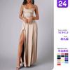 Ropa nueva transfronteriza europea y americana para mujer 2025 moda de invierno temperamento tirantes slim color sólido abertura vestido con lazo mujer