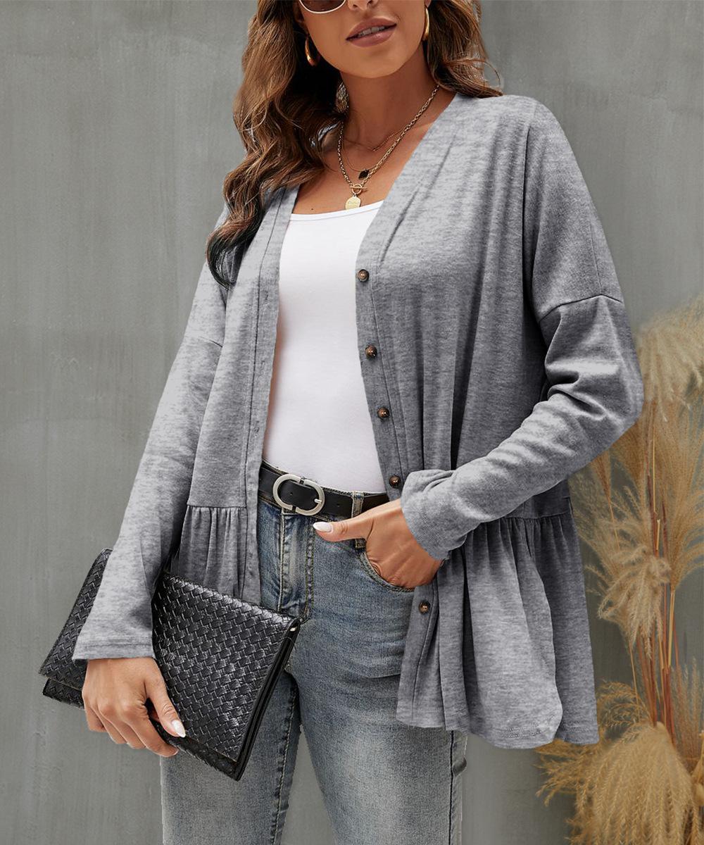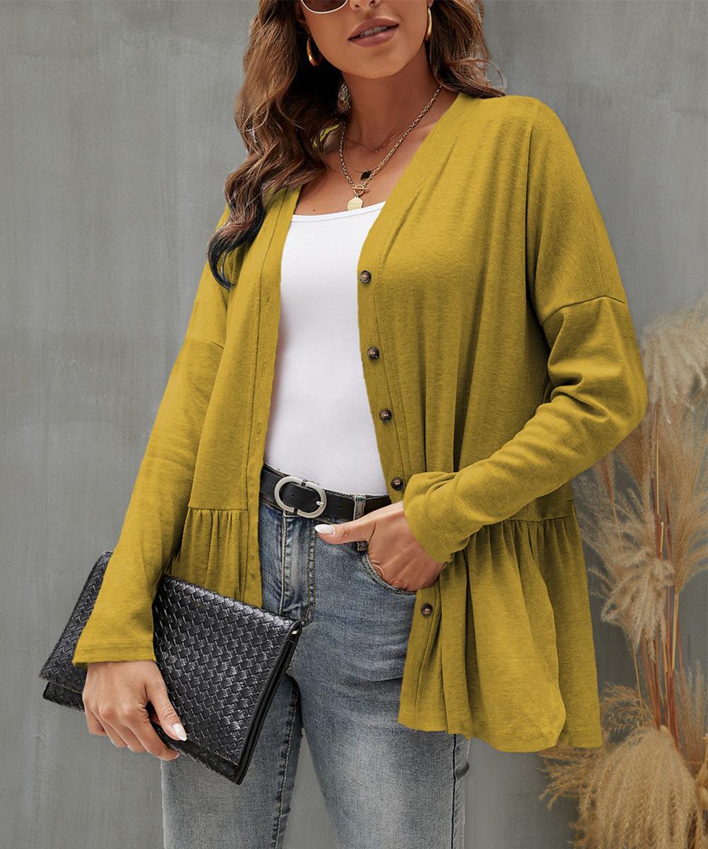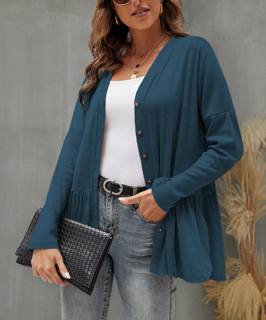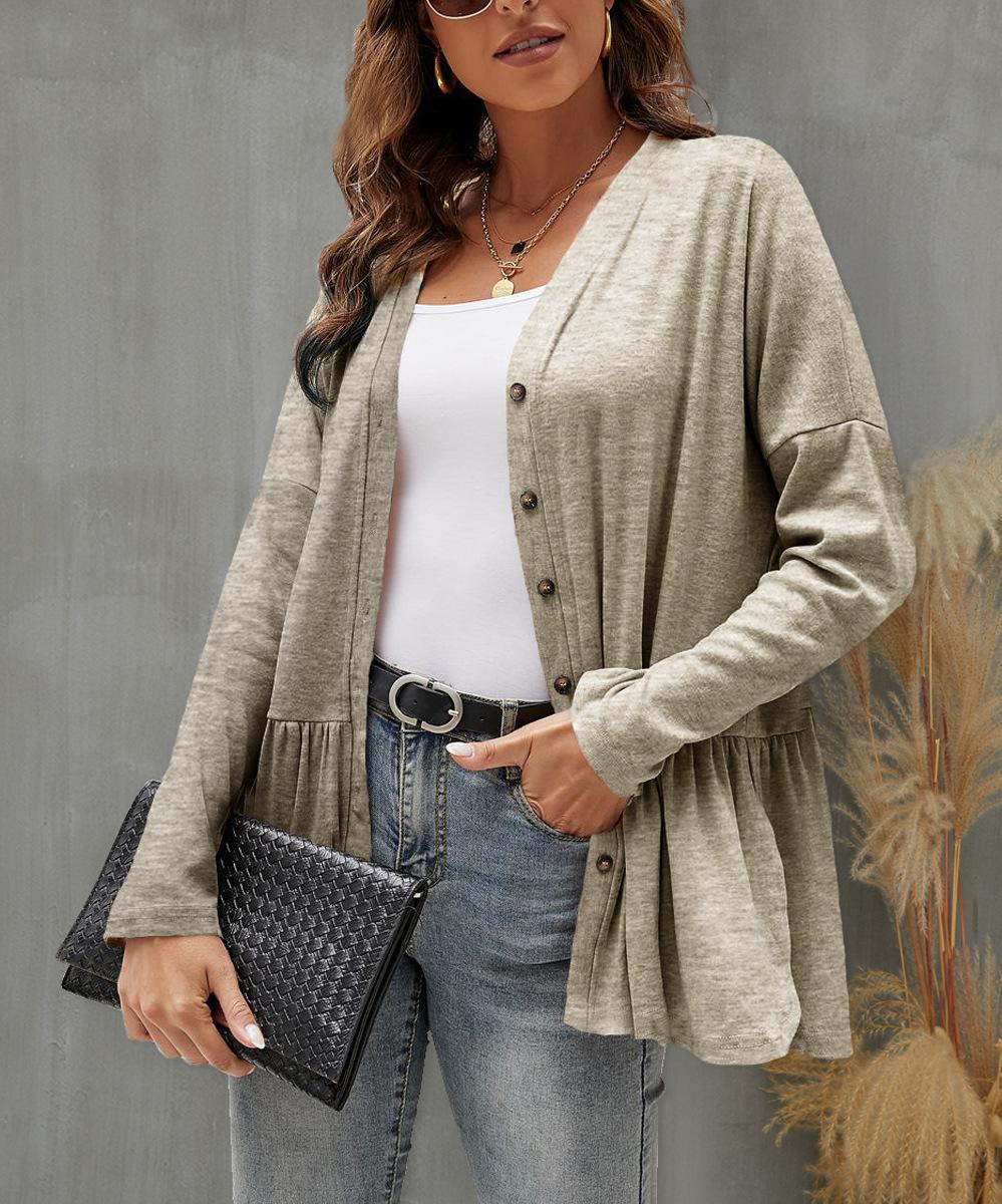 Suéter de mujer Amazon transfronterizo 2024 nuevo cárdigan de color sólido con botones abrigo de manga larga