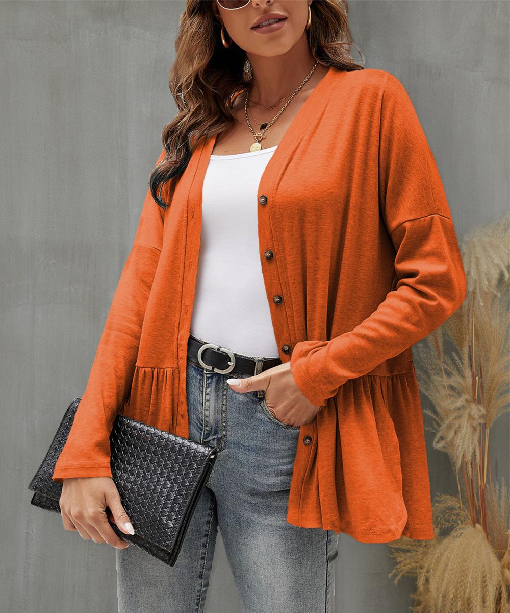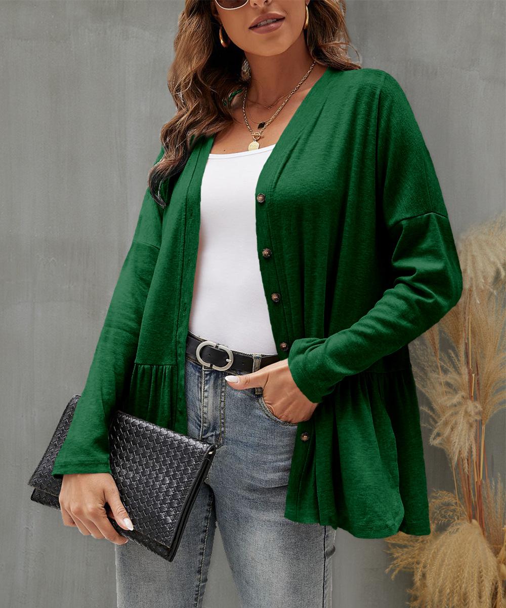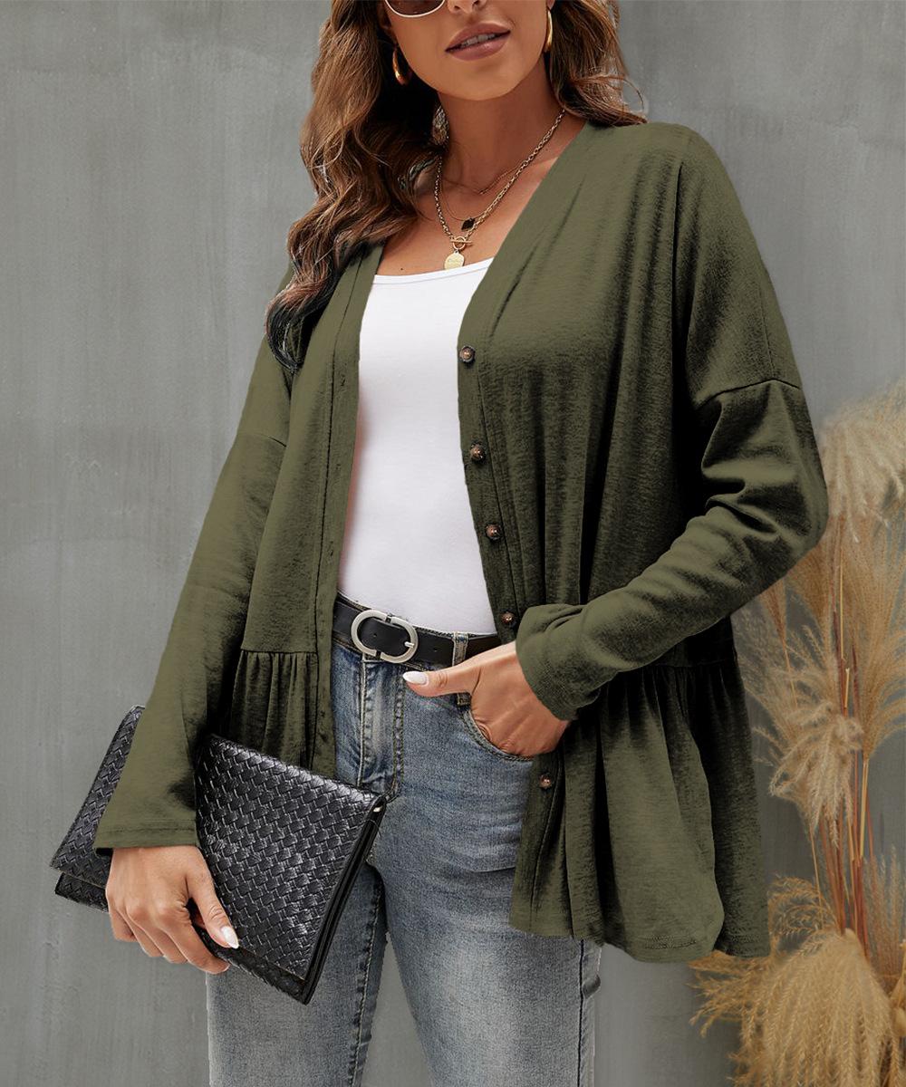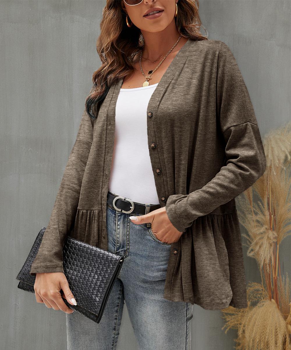 Suéter de mujer Amazon transfronterizo 2024 nuevo cárdigan de color sólido con botones abrigo de manga larga
