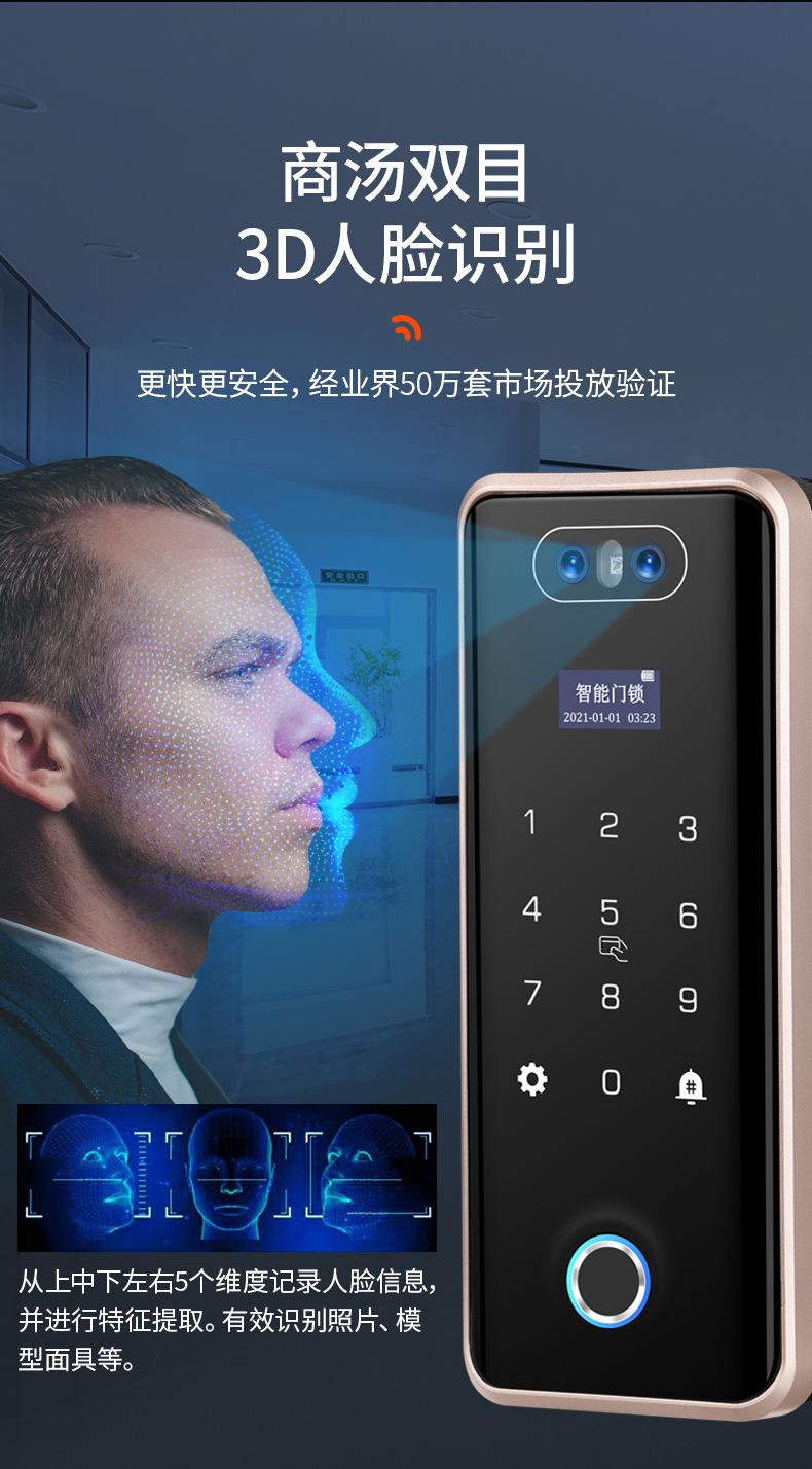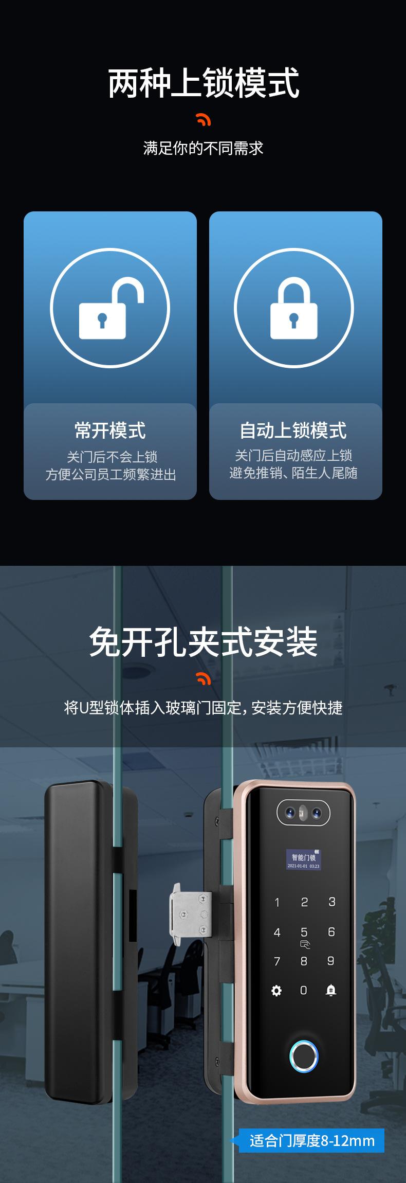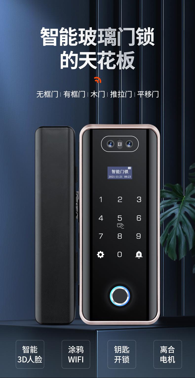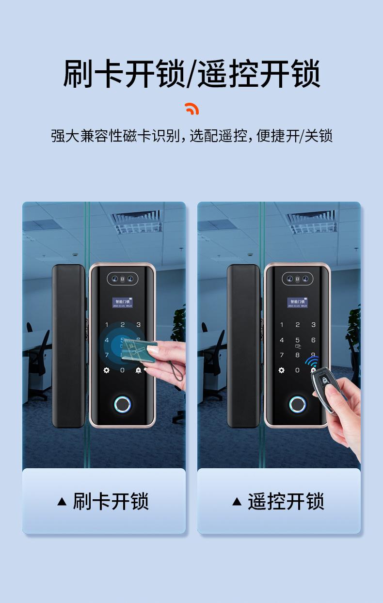 Cerradura de Puerta de Vidrio Inteligente de Alta Gama con Reconocimiento Facial, Desbloqueo Remoto por Contraseña, Cerradura de Huella Digital para Oficina y Tienda, Cerradura Electrónica