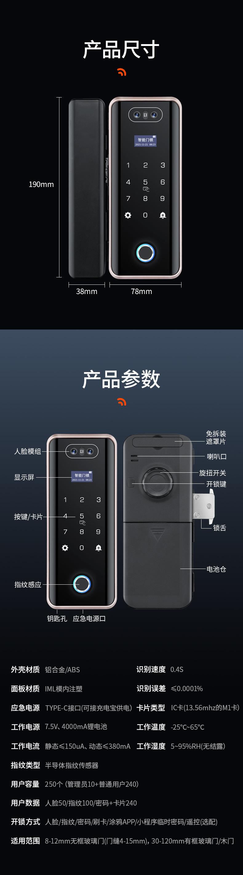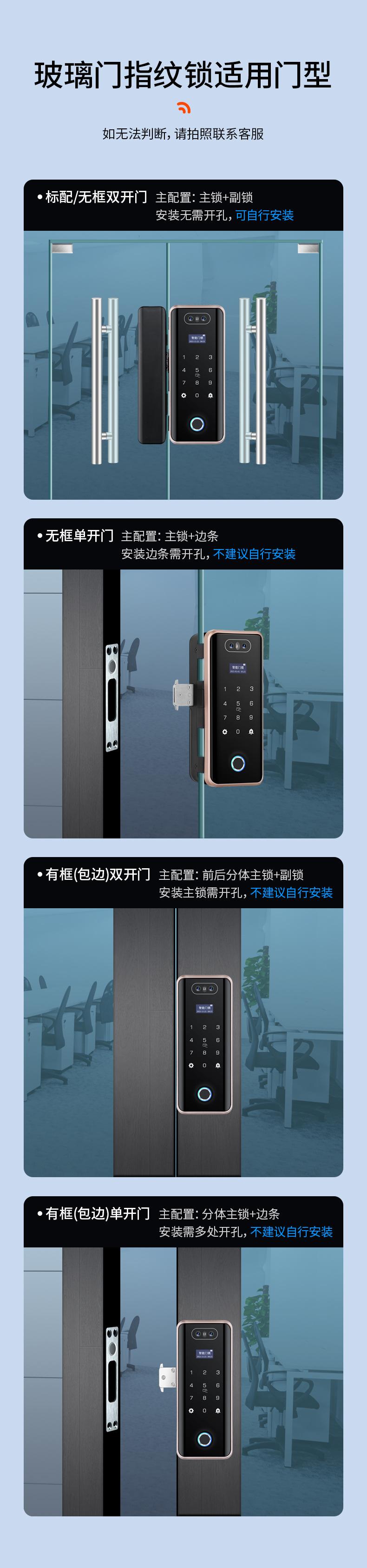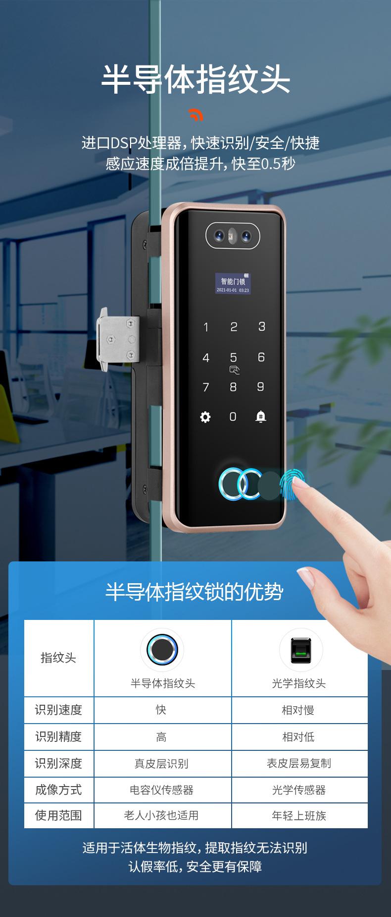 Cerradura de Puerta de Vidrio Inteligente de Alta Gama con Reconocimiento Facial, Desbloqueo Remoto por Contraseña, Cerradura de Huella Digital para Oficina y Tienda, Cerradura Electrónica