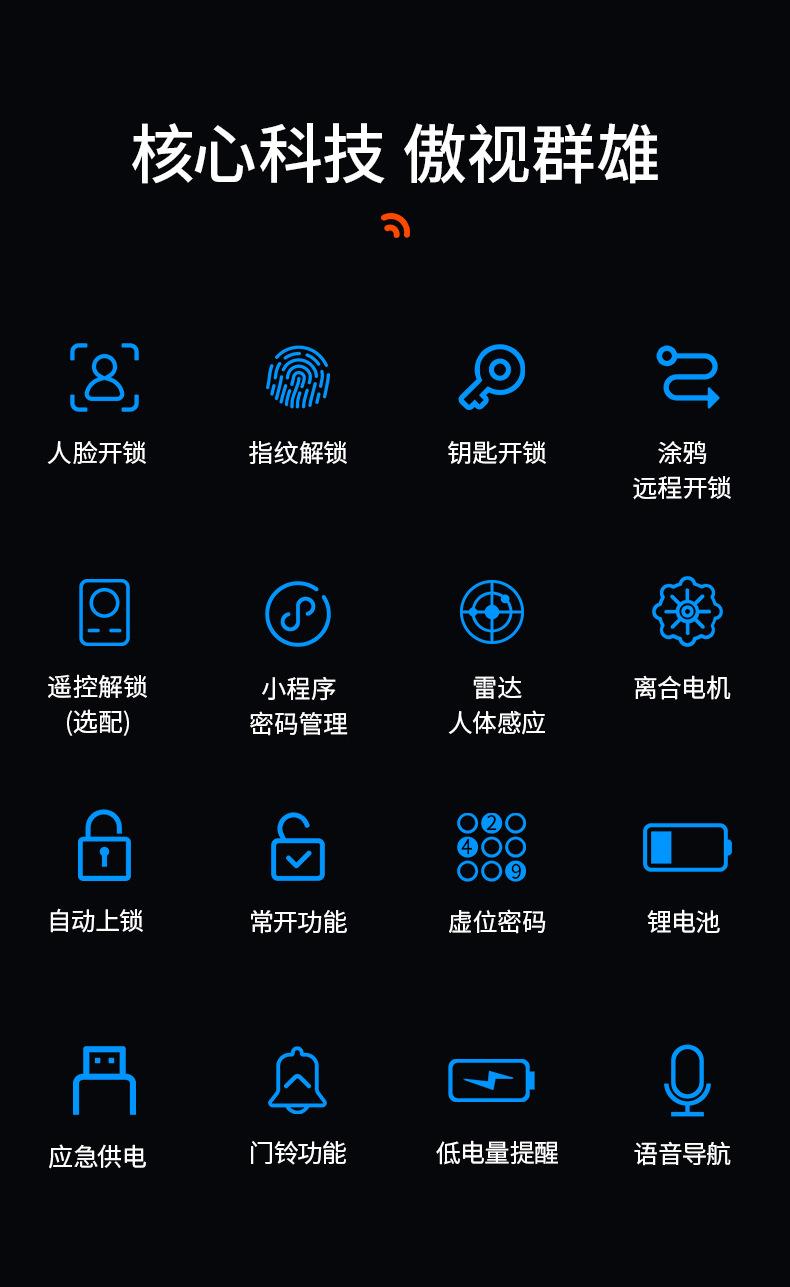 Fingerprint, Password, Bring key, Remote unlock