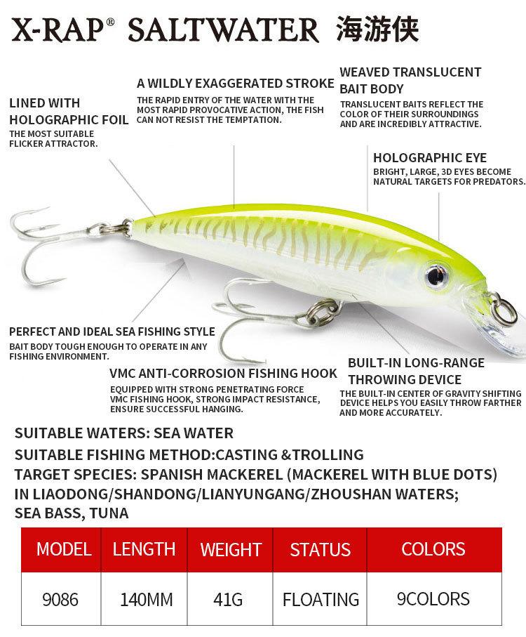 Cebo flotante Luya de 140 mm/41 g, cebo láser Minonone para pesca de lubina en agua dulce 9086