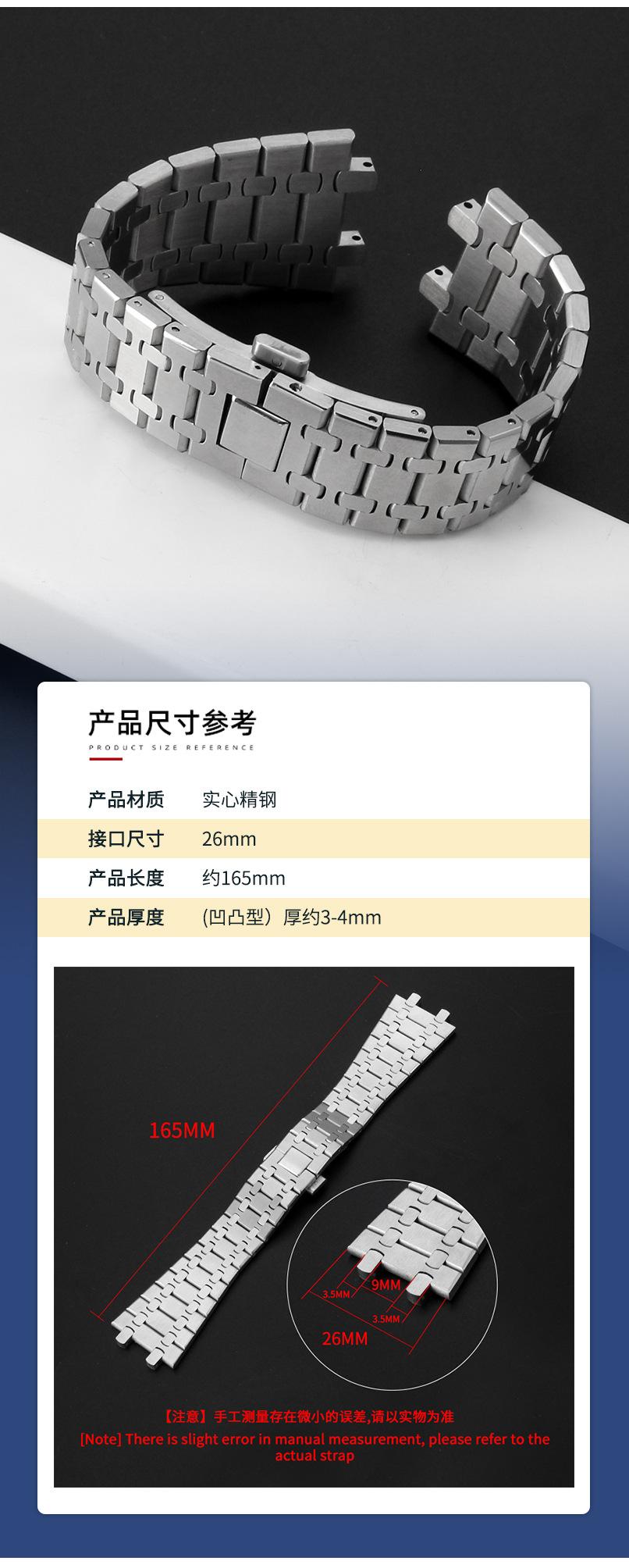 Adecuado para AP 41MM Royal Oak 15400 15500 316 correa de reloj de acero inoxidable sólido correa de muñeca 26 mm