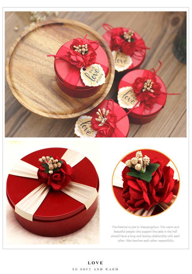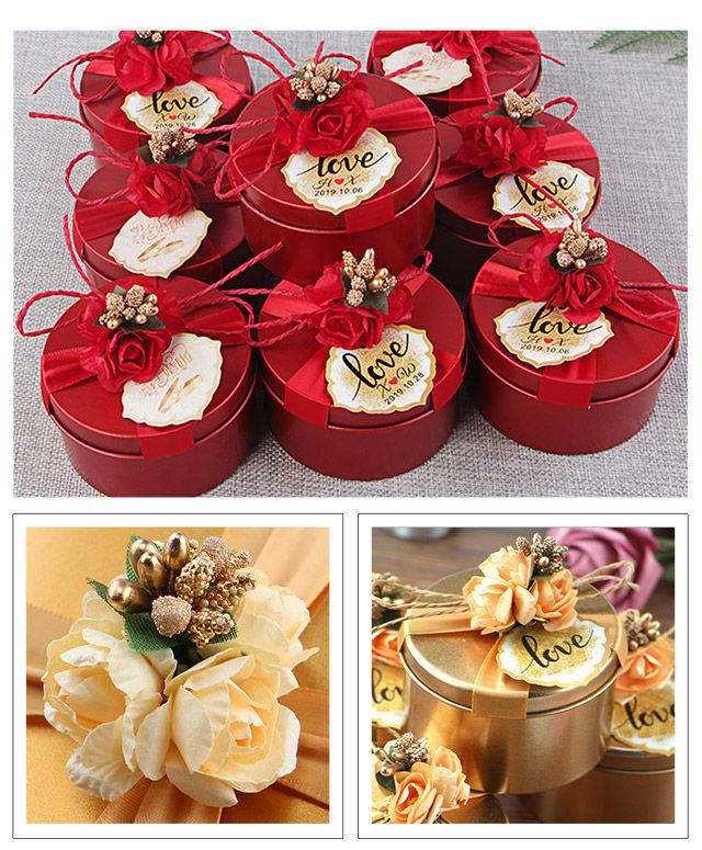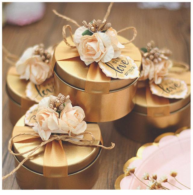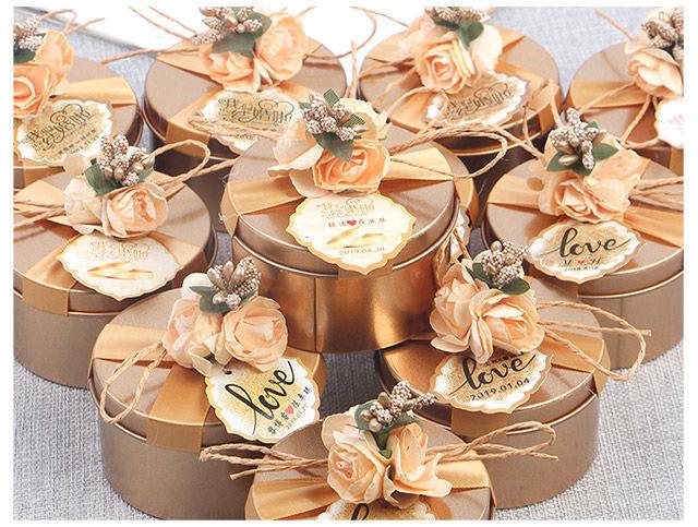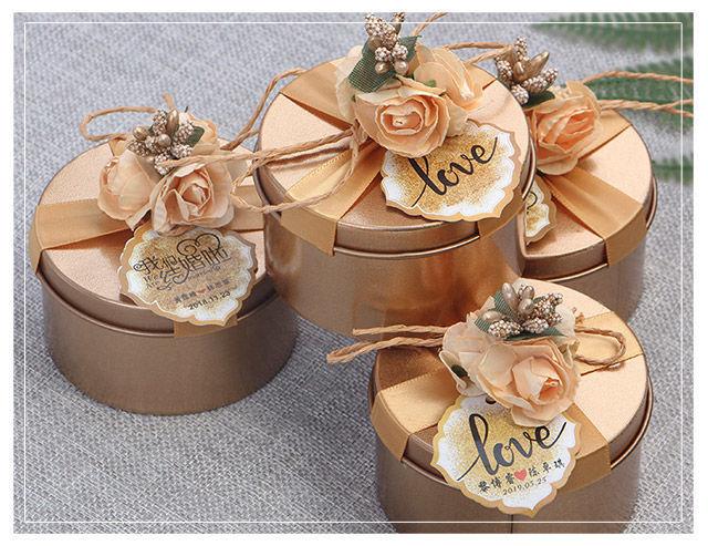 Caja de dulces de boda europea caja de hierro caja vacía tamaño pequeño redonda caja de regalo de boda caja de dulces al por mayor