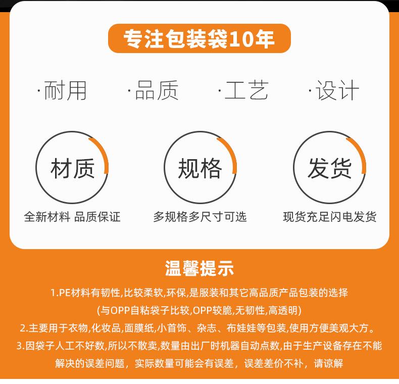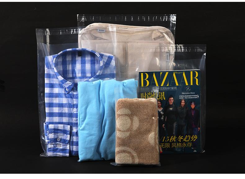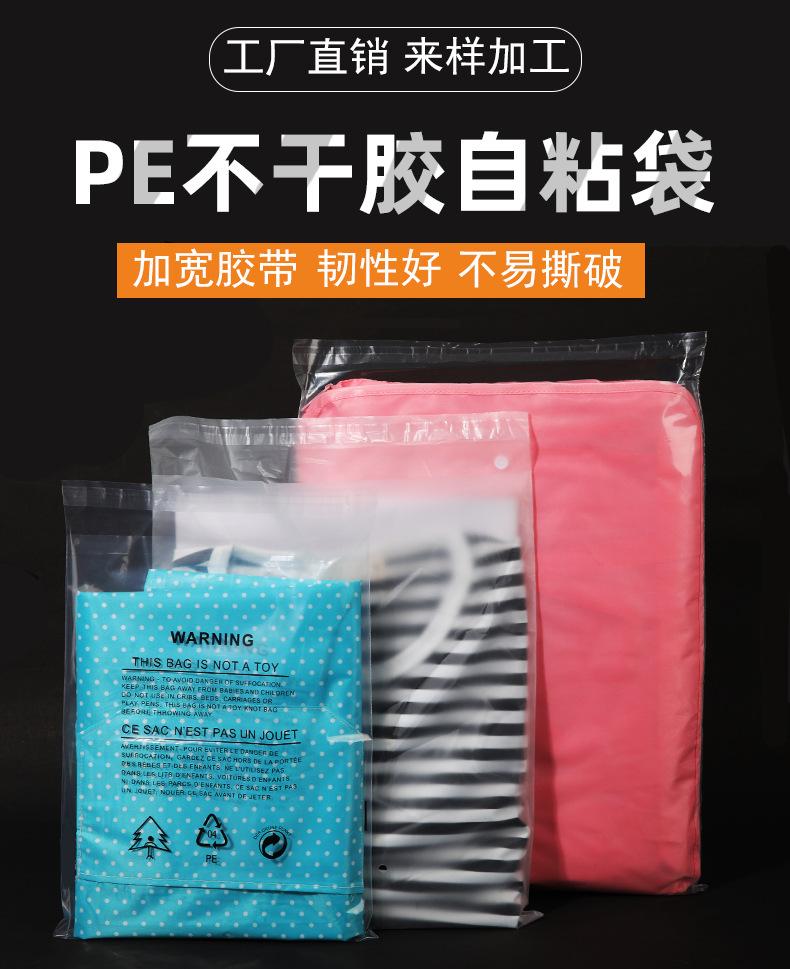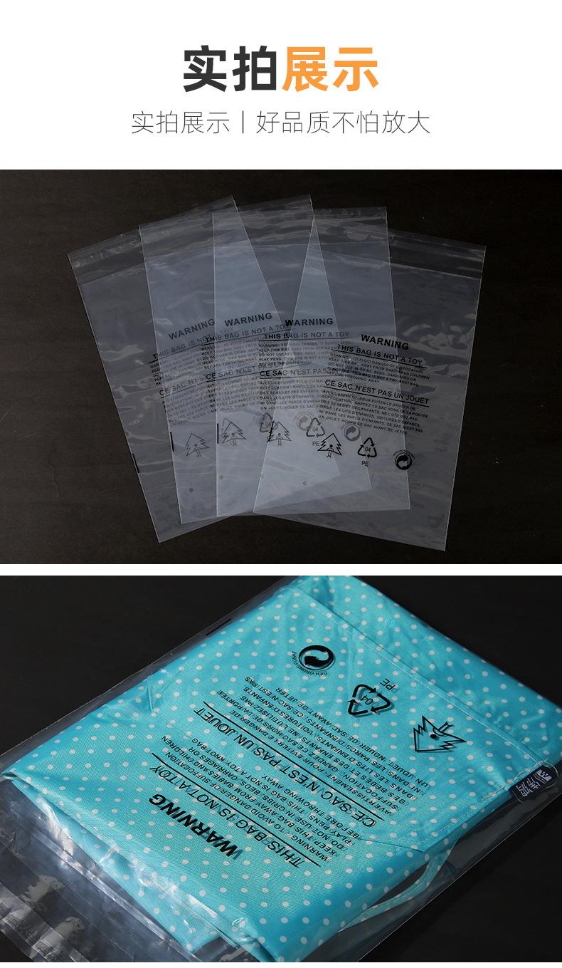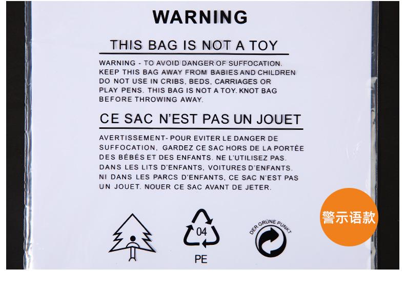 Bolsa autoadhesiva de plástico blando de PE para embalaje de ropa, con película transparente de advertencia, gruesa y esmerilada, impresión