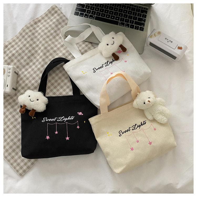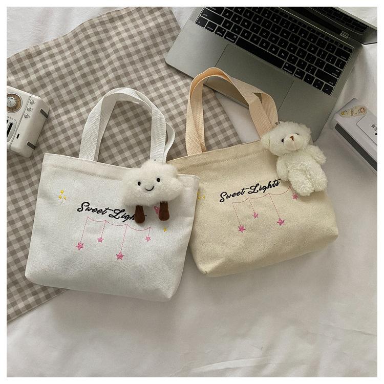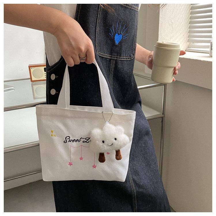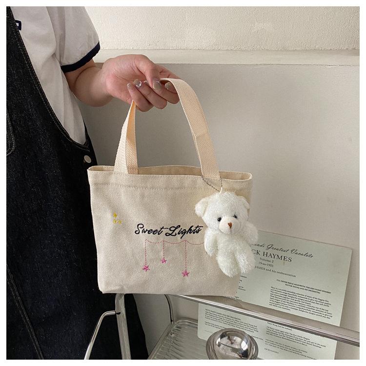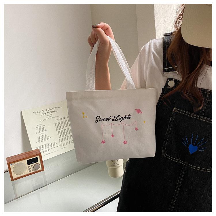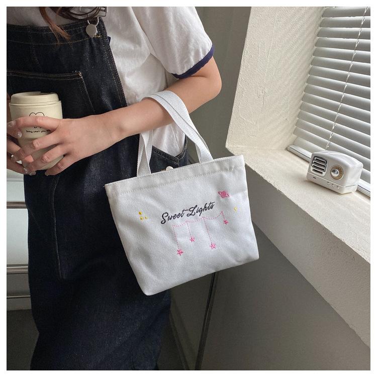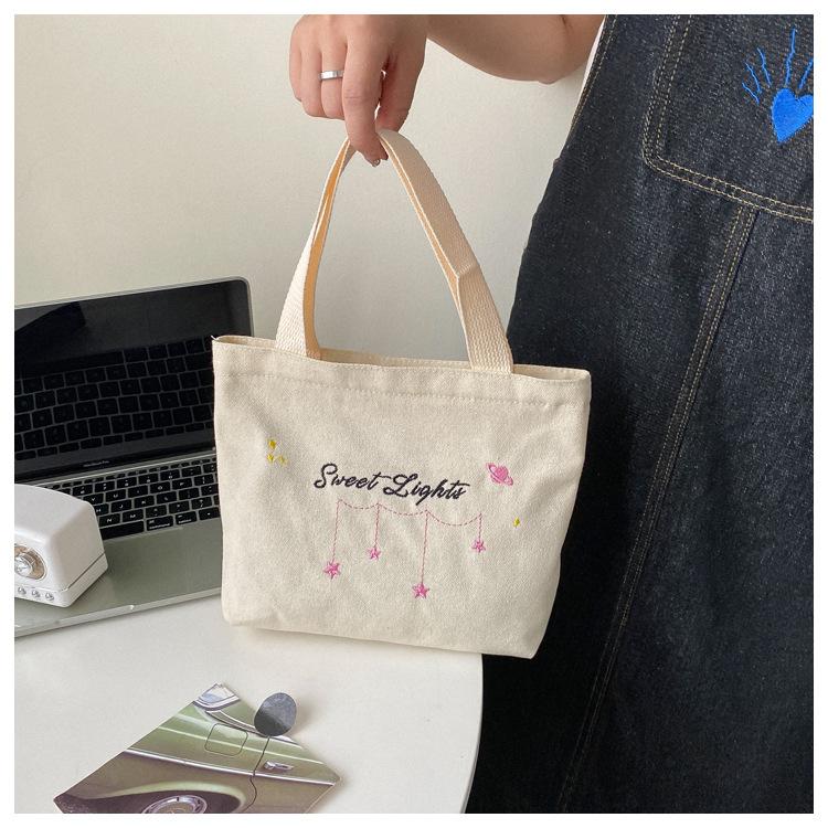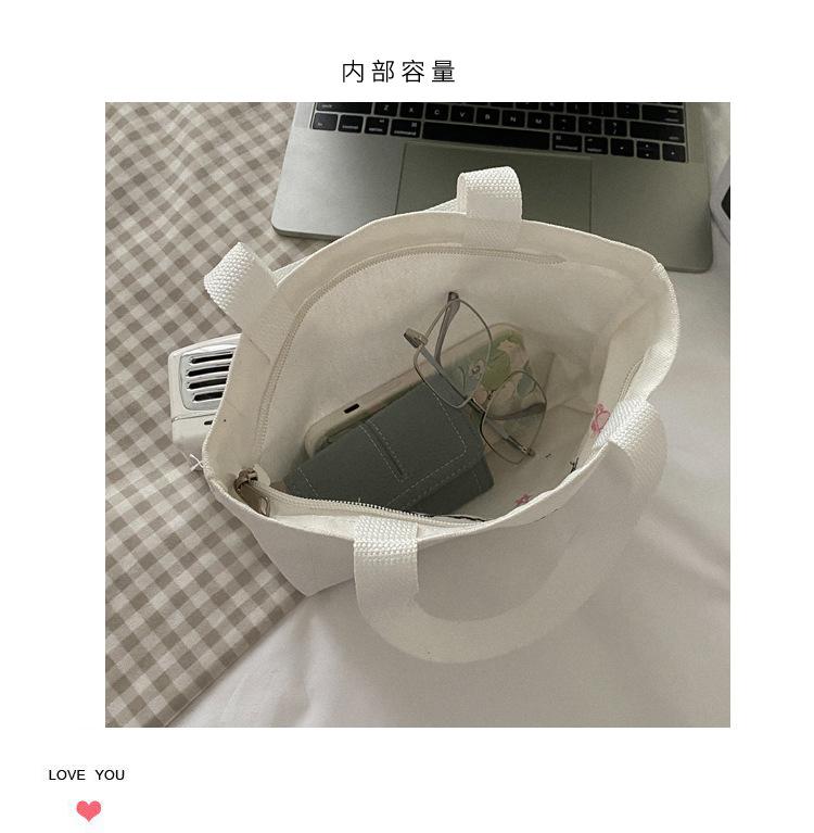 Bolsa pequeña de lona para mujer, informal, de tela, para llevar en la mano, estilo occidental, para el almuerzo de estudiantes, con cremallera