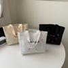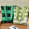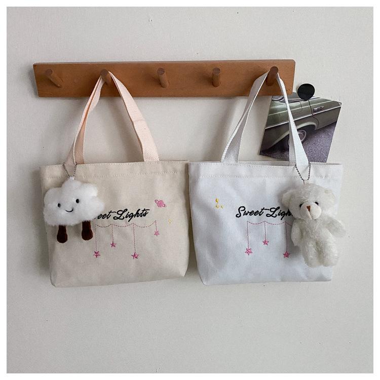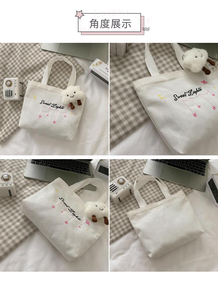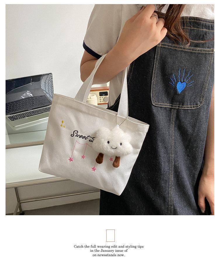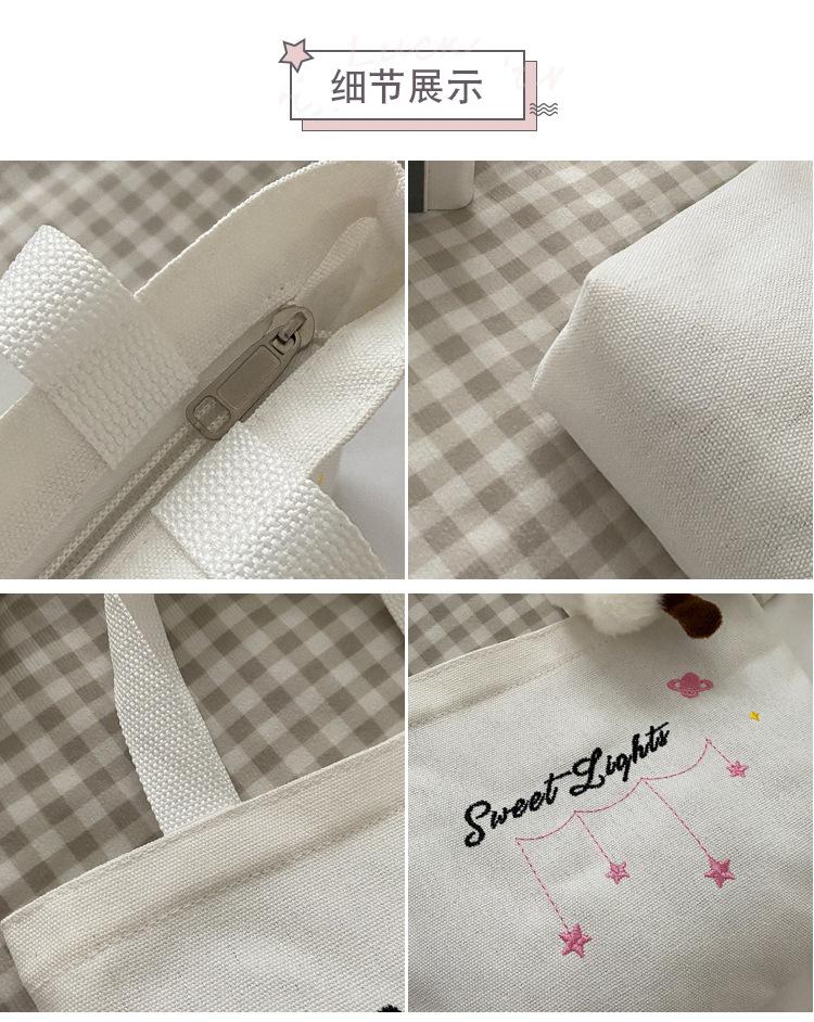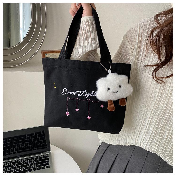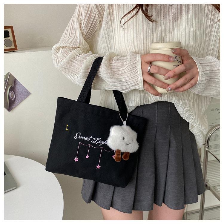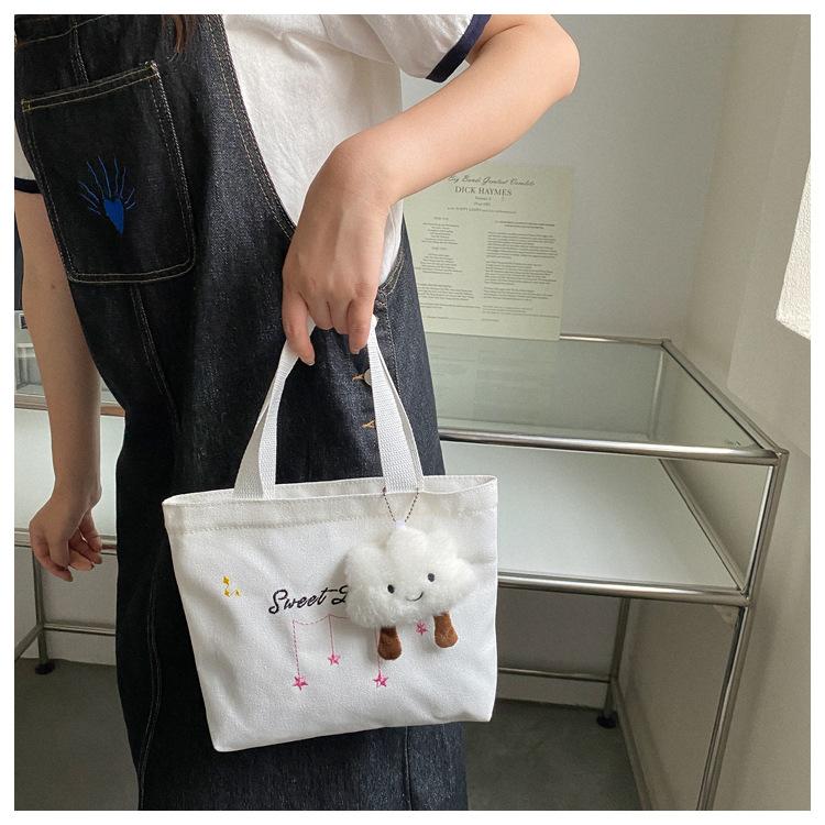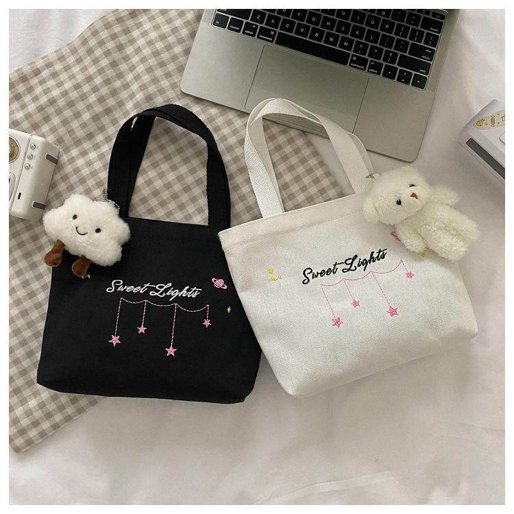 Bolsa pequeña de lona para mujer, informal, de tela, para llevar en la mano, estilo occidental, para el almuerzo de estudiantes, con cremallera