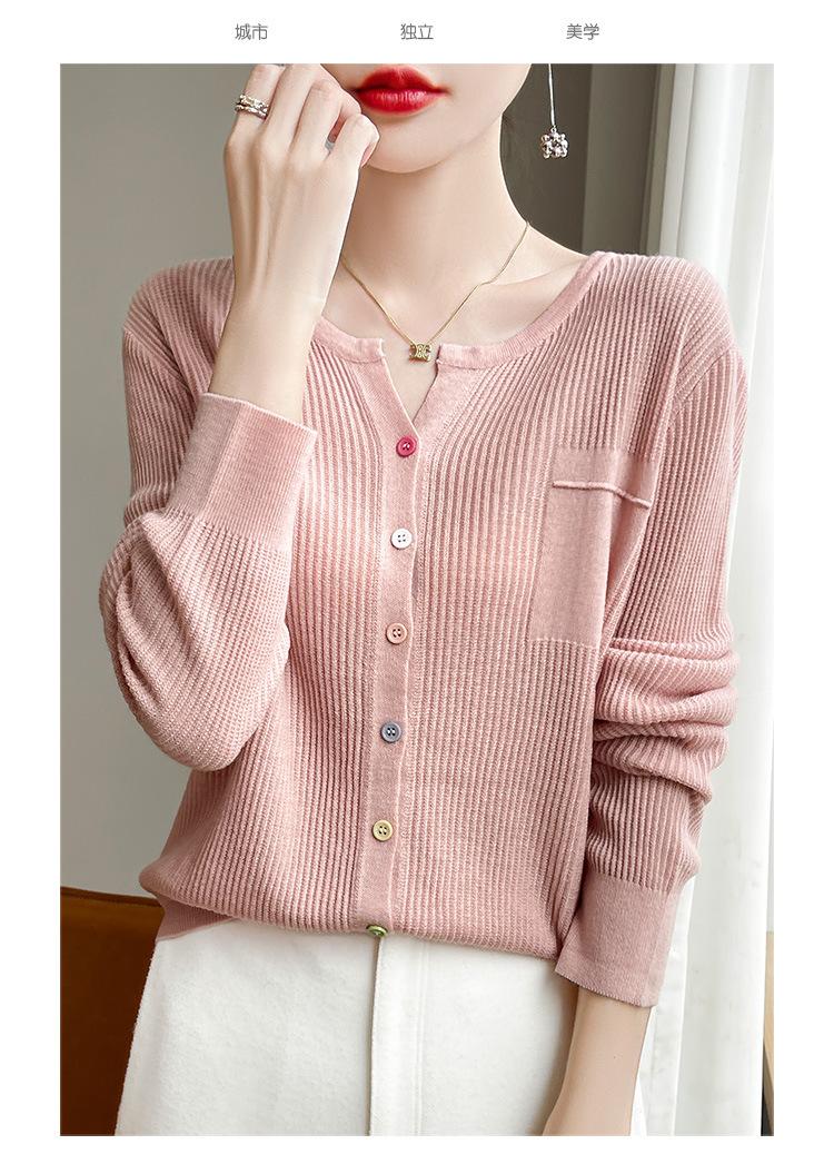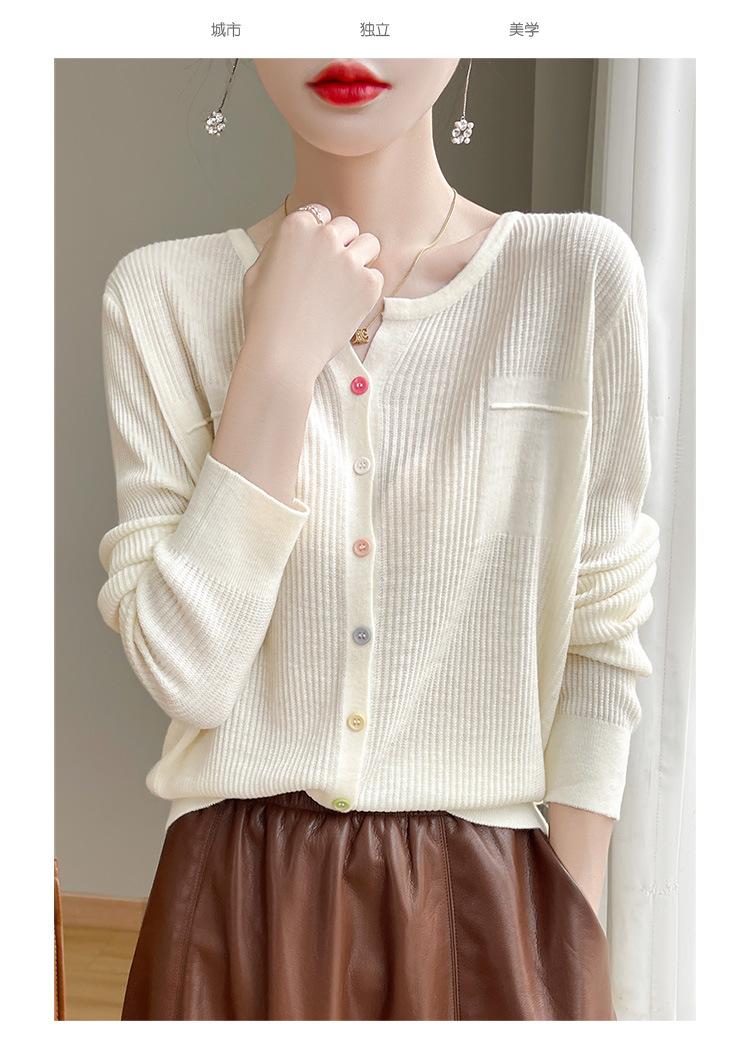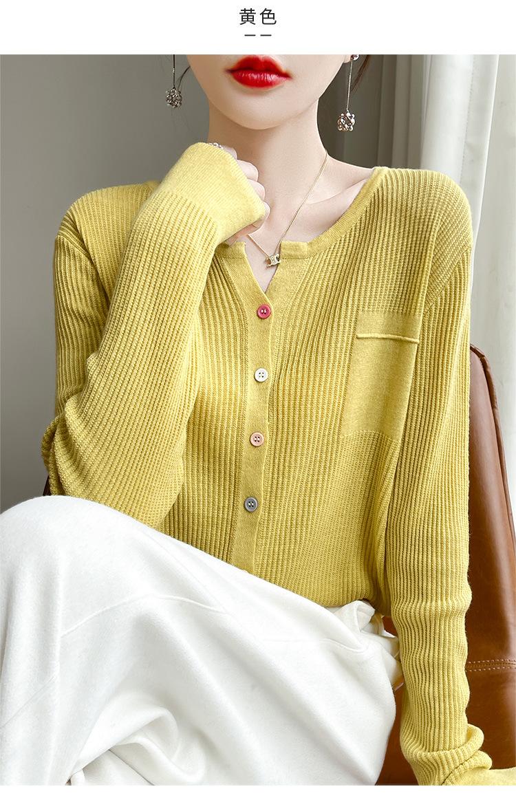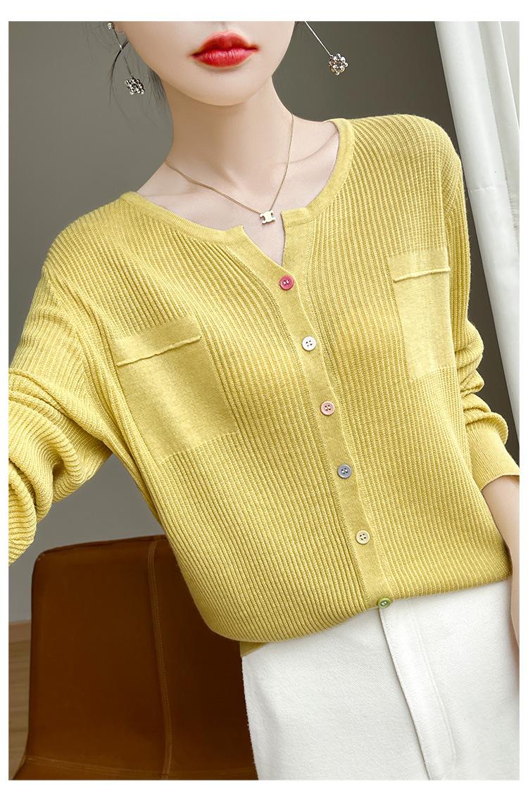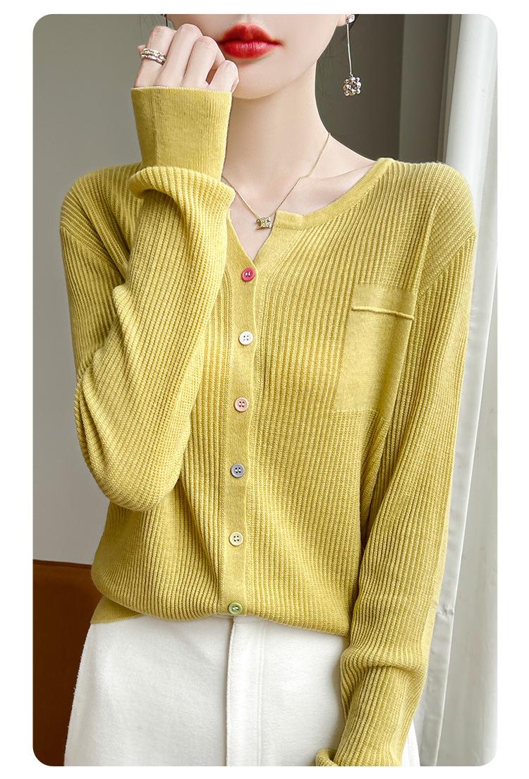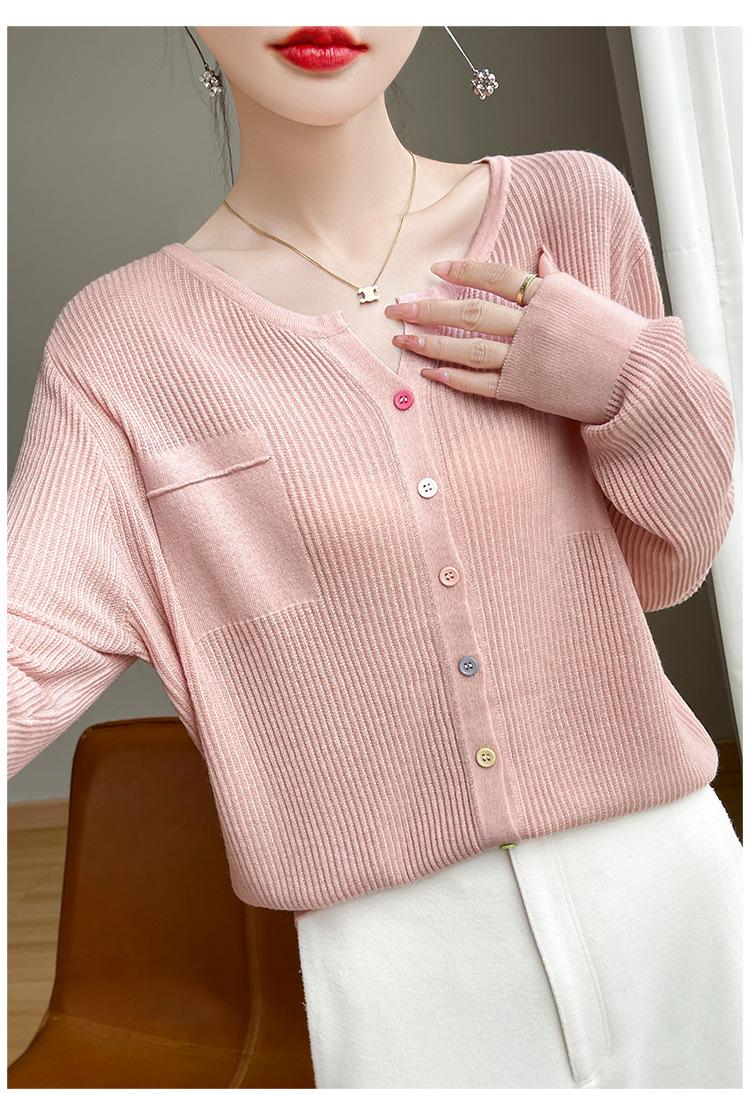 Cárdigan de Punto de Lana Peinada de Estilo Coreano Nuevo de Primavera y Otoño para Mujer, con Cuello en V, Botones Coloridos, Diseño de Bolsillos Falsos, Suéter Fino para Exterior