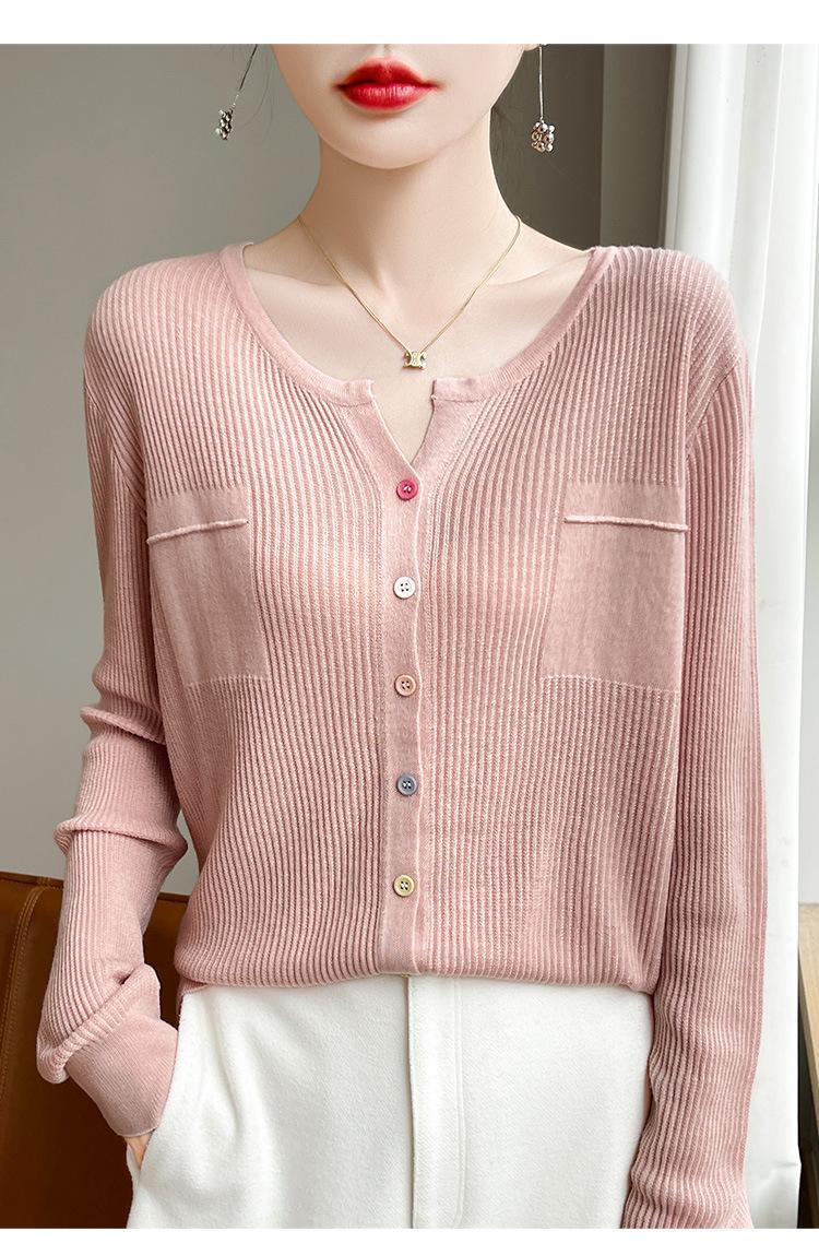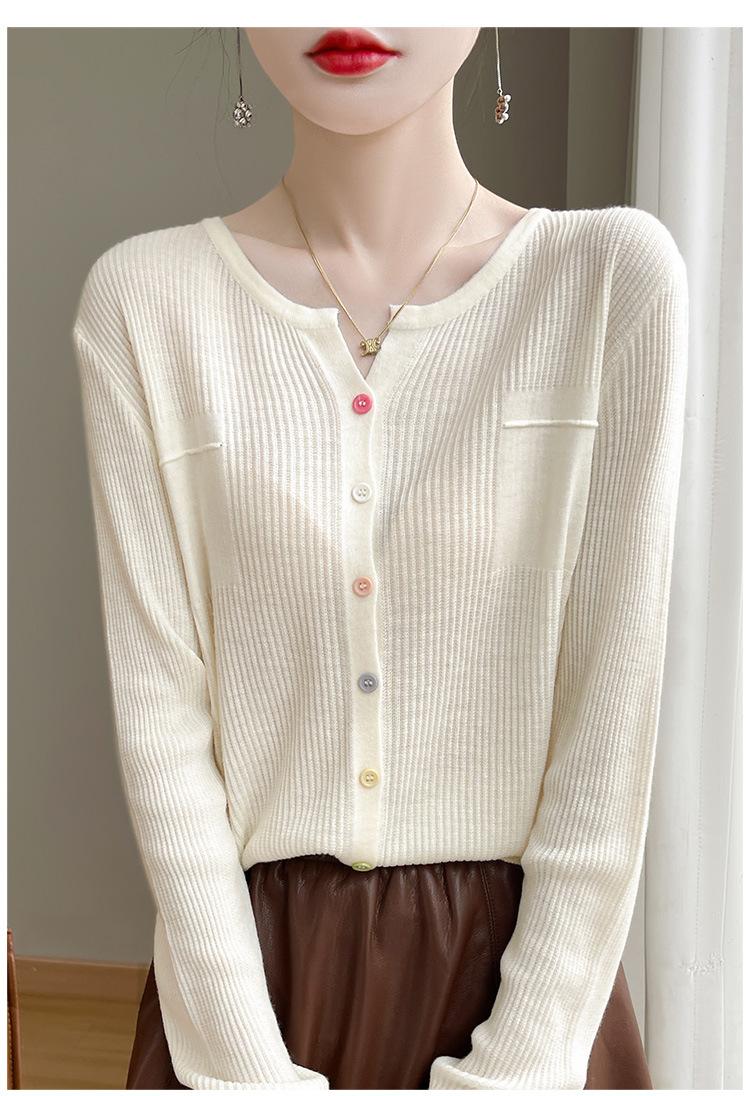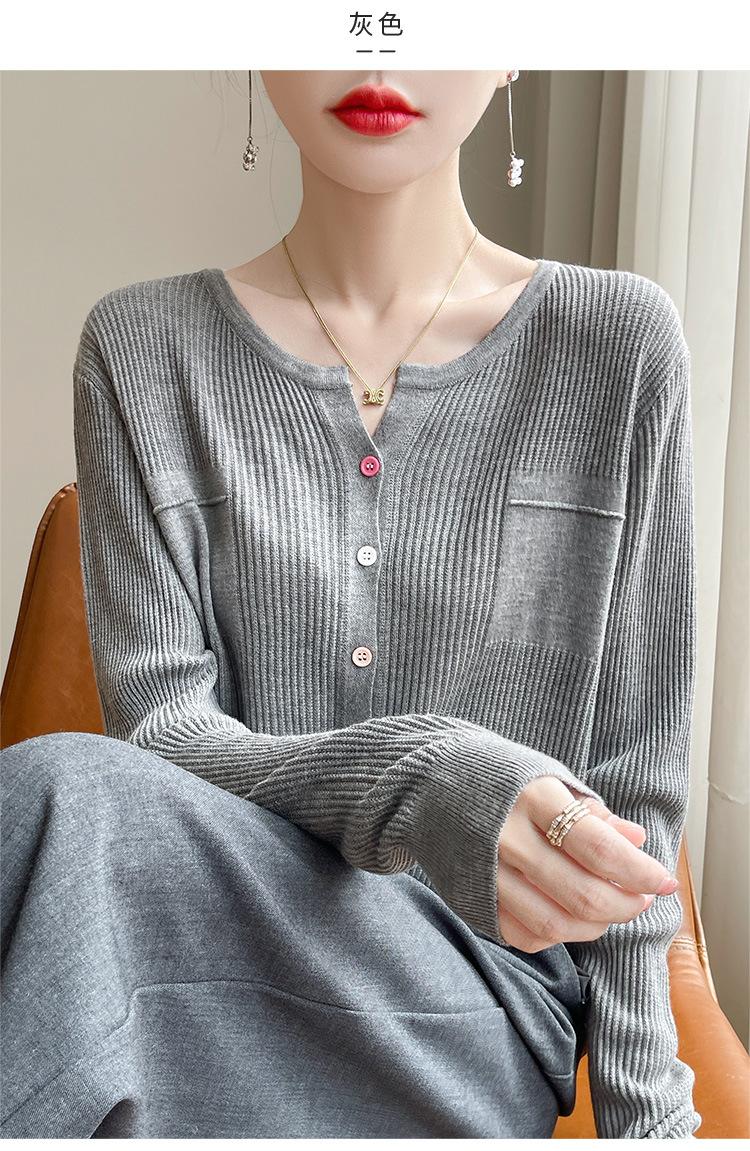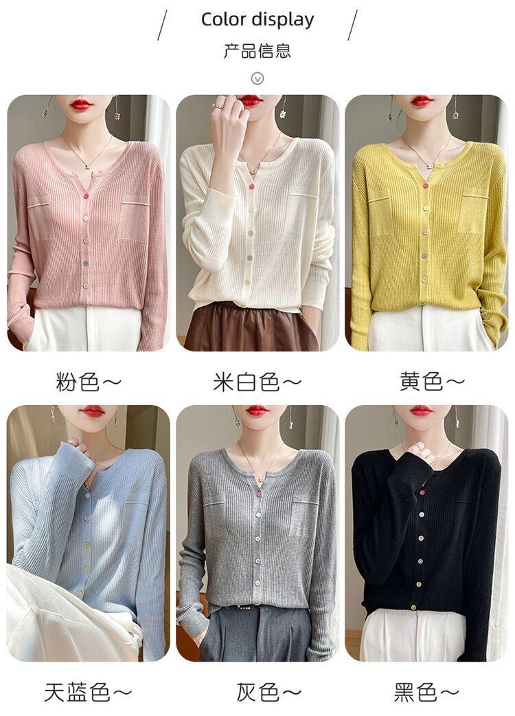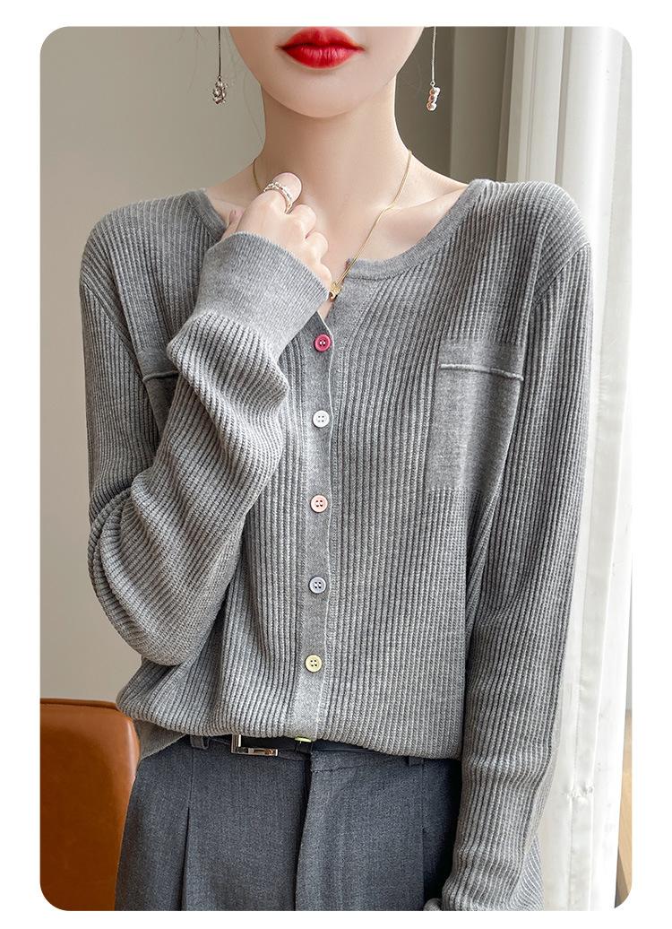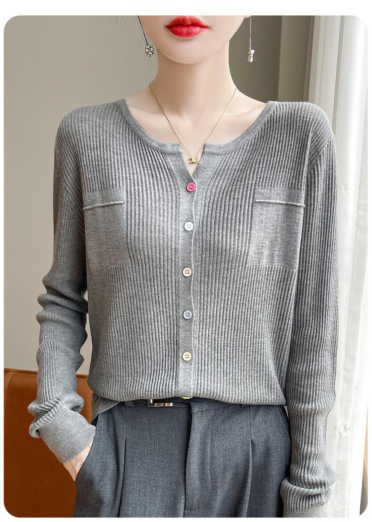 Cárdigan de Punto de Lana Peinada de Estilo Coreano Nuevo de Primavera y Otoño para Mujer, con Cuello en V, Botones Coloridos, Diseño de Bolsillos Falsos, Suéter Fino para Exterior