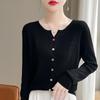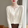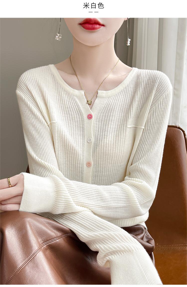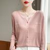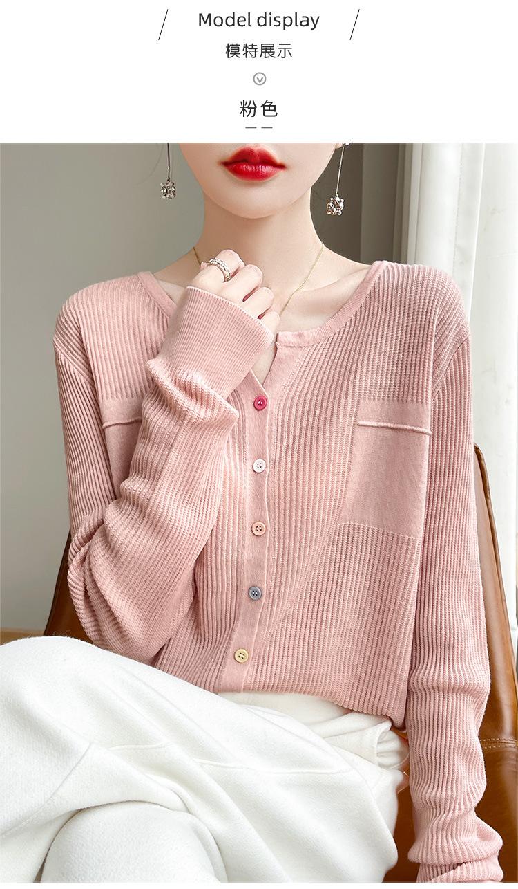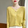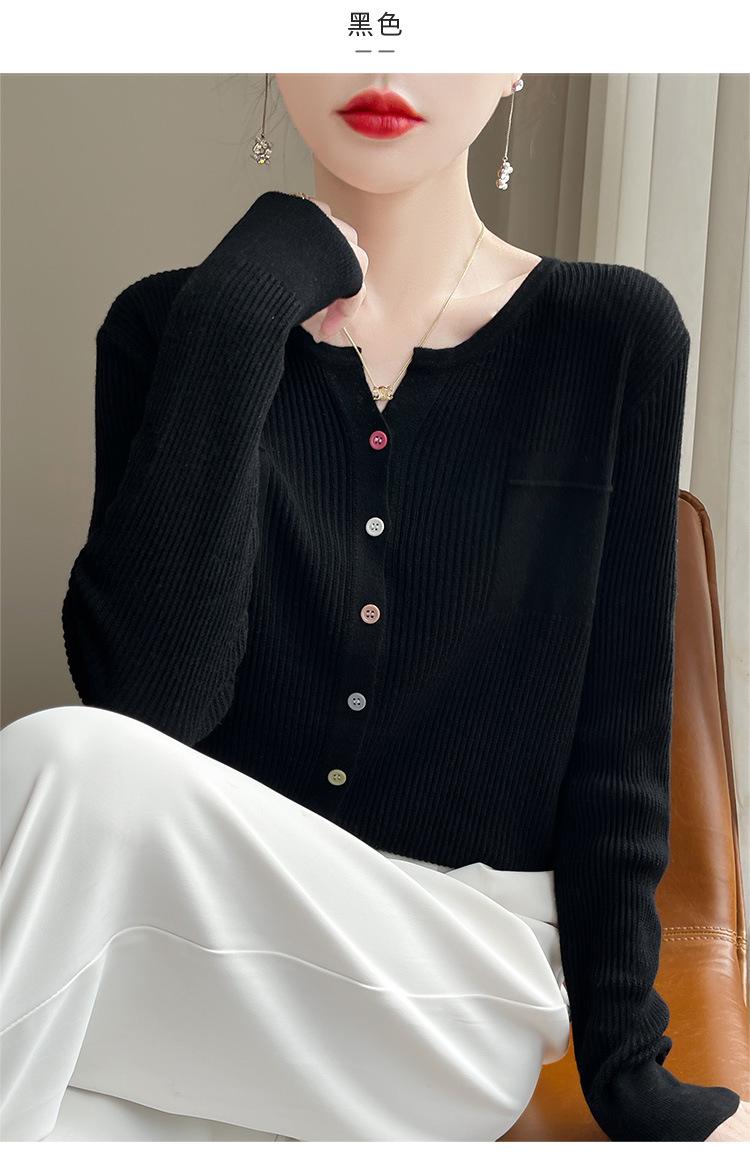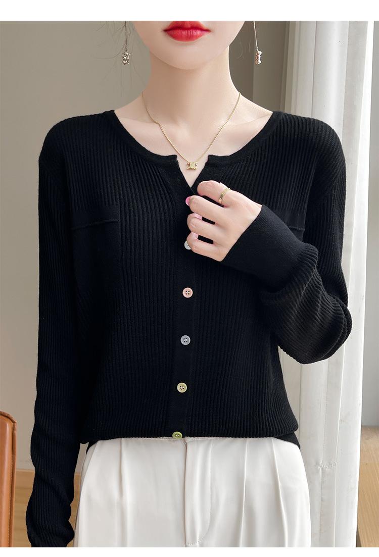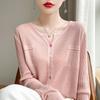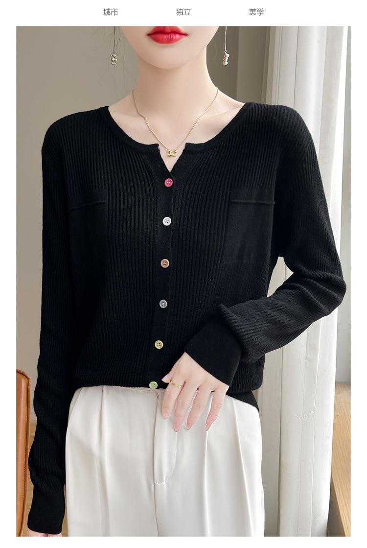 Cárdigan de Punto de Lana Peinada de Estilo Coreano Nuevo de Primavera y Otoño para Mujer, con Cuello en V, Botones Coloridos, Diseño de Bolsillos Falsos, Suéter Fino para Exterior