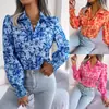 Venta de liquidación: Camisa Casual Europea y Americana de Primavera/Verano con Manga Farol, Bloque de Color, Floral y Solapa - Moda para Mujer Transfronteriza de Amazon