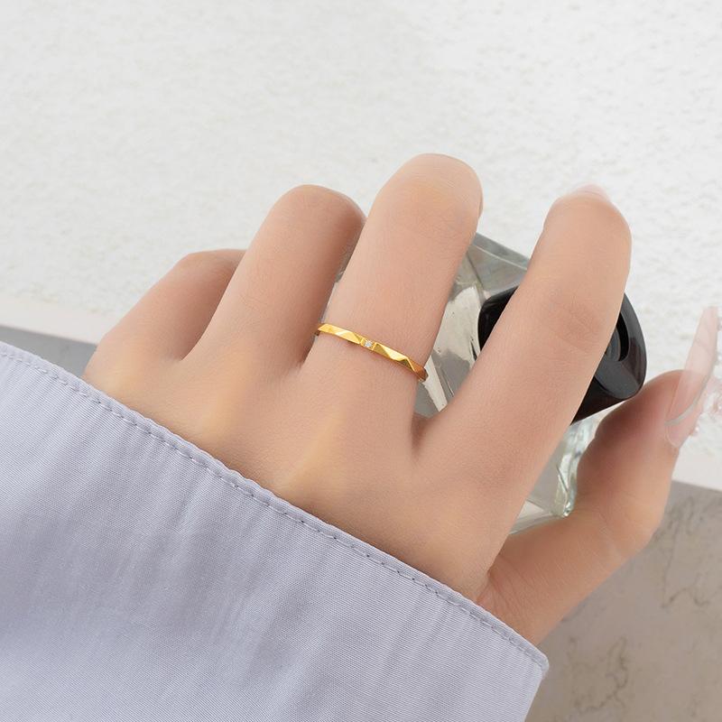 Anillo redondo de estilo europeo y americano con corte triangular de flor y diamante solitario, acero de titanio chapado en oro de 18 quilates, anillo sencillo para el dedo índice para mujer