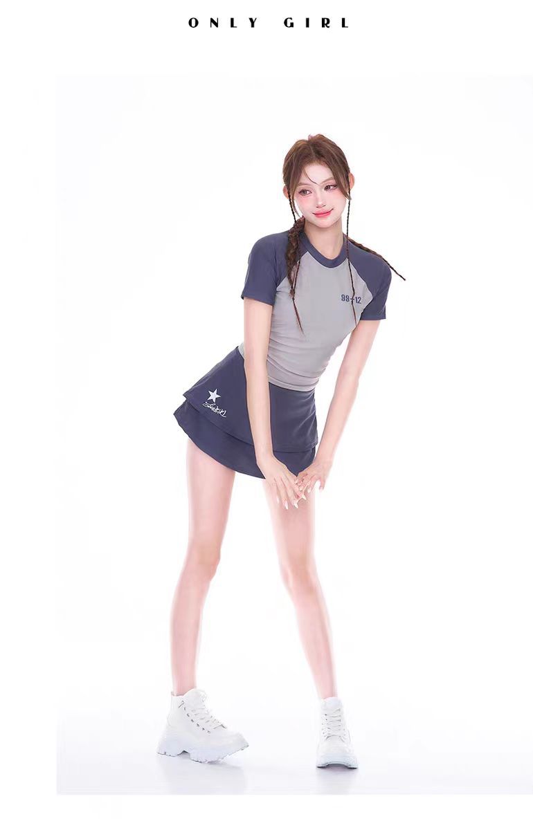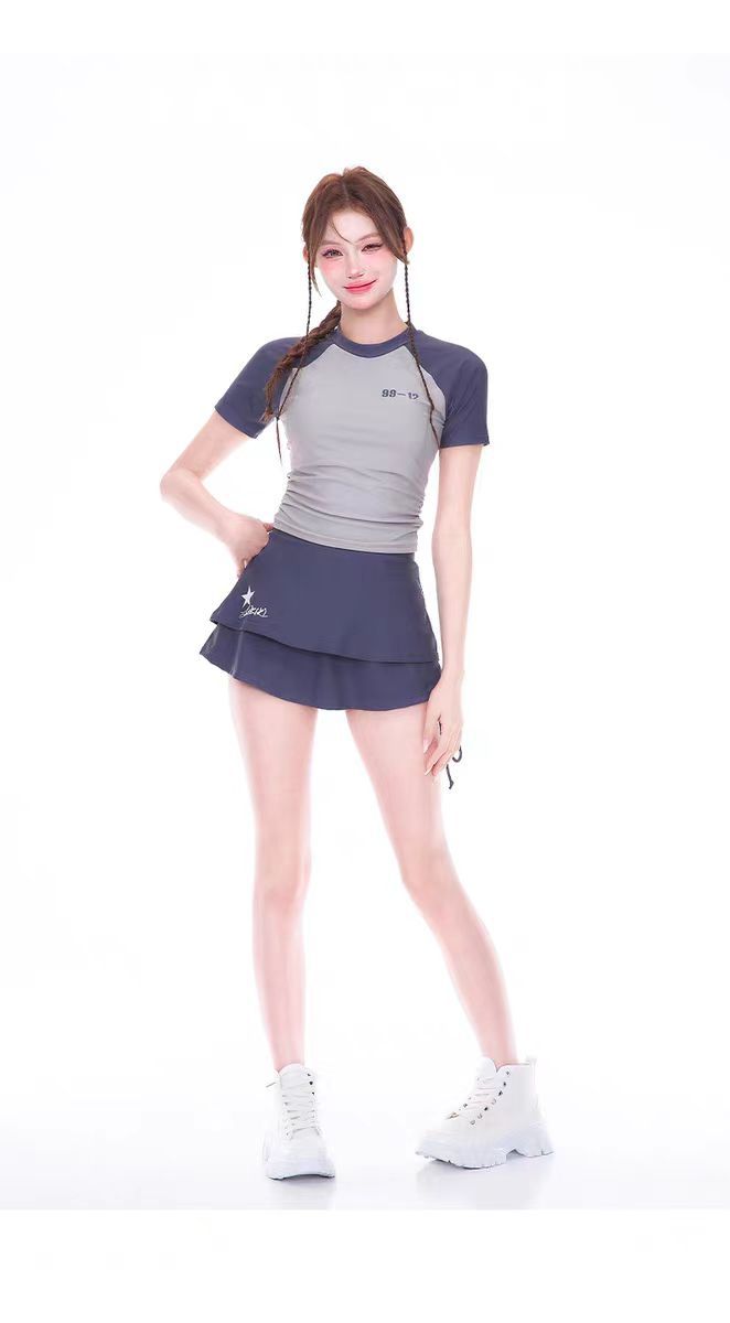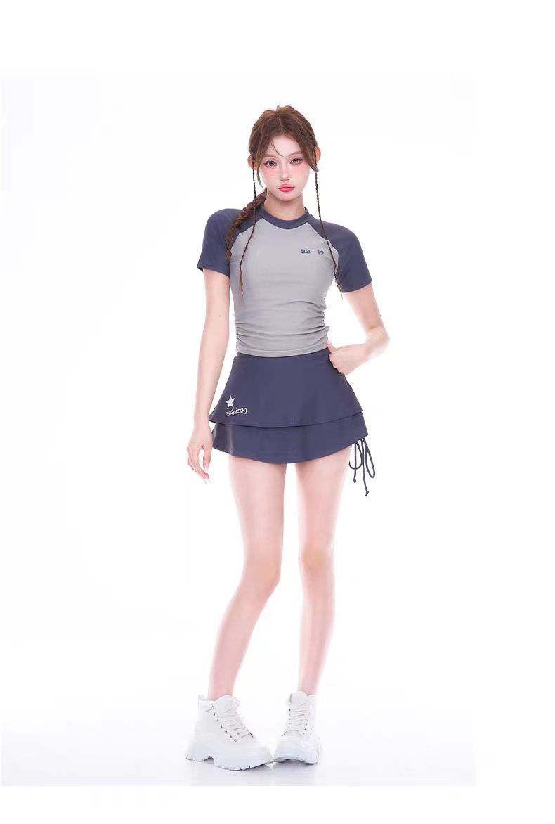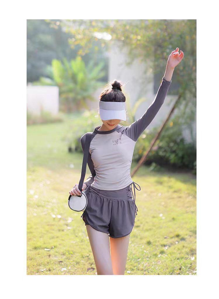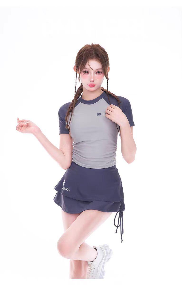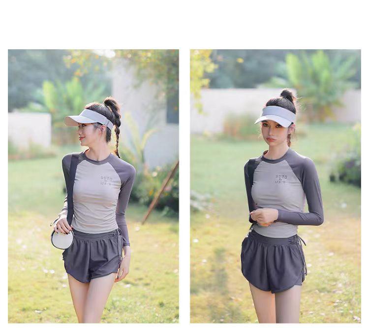 Traje de baño de dos piezas dividido para mujer, deportivo, estilo coreano, informal, sencillo, conservador, para chicas estudiantes, adelgazante, para aguas termales.