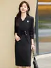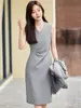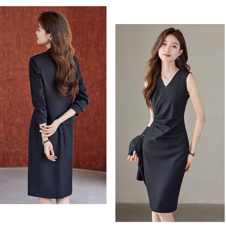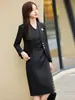 Traje profesional negro para mujer, ropa de trabajo de alta gama con temperamento elegante para consultor de salón de belleza, conjunto de dos piezas