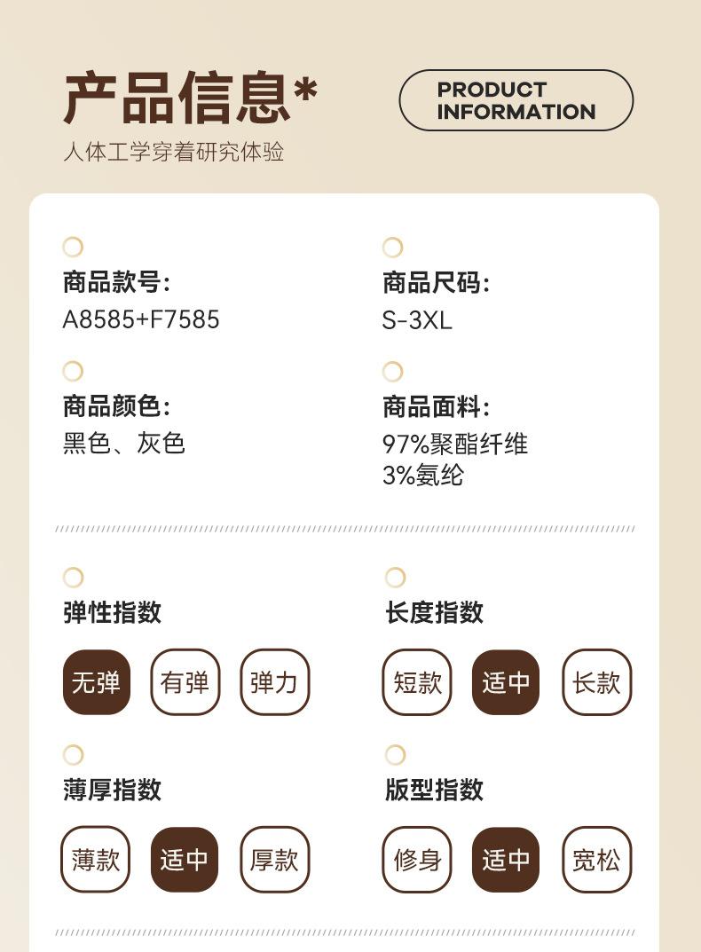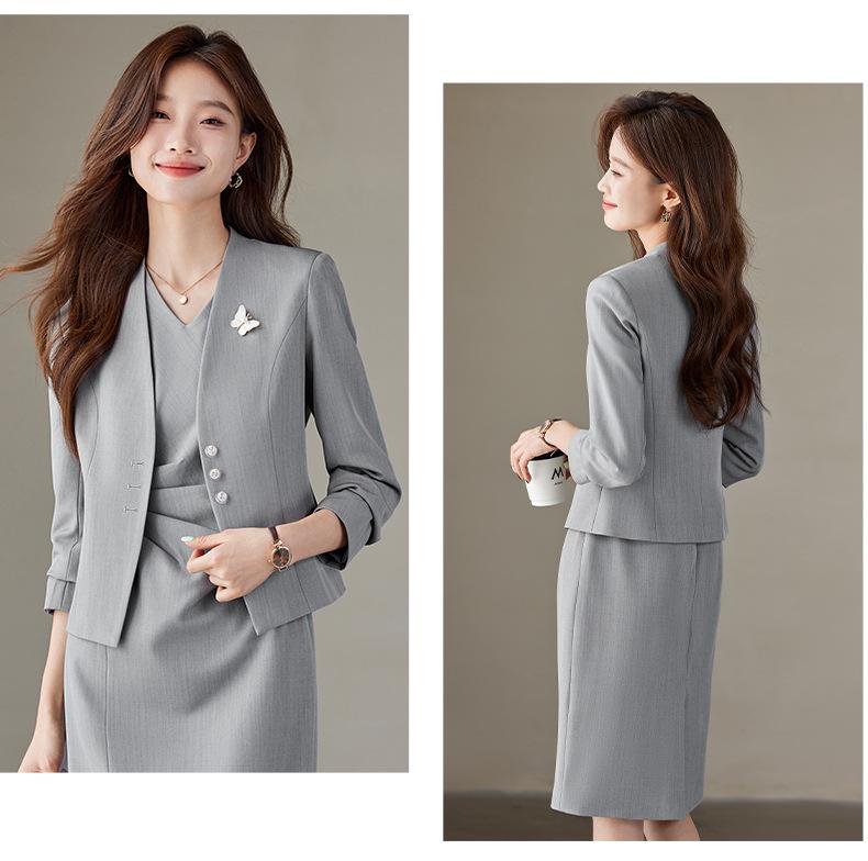 7585 light gray dress, 7585 black dress, 8585 light gray suit, 8585 black suit