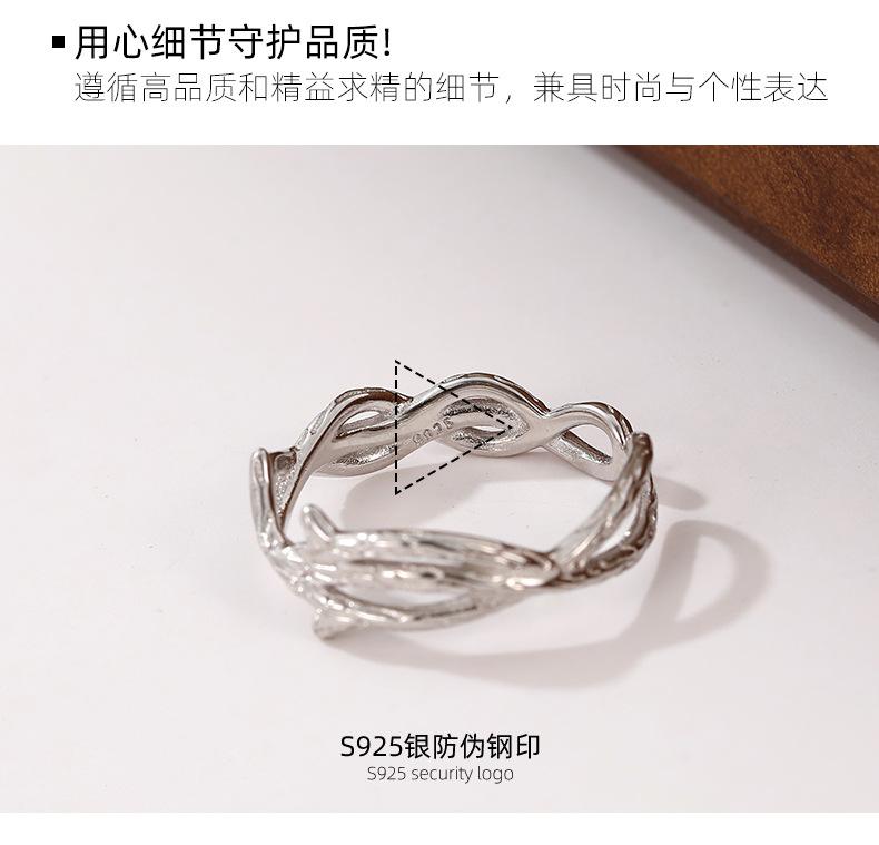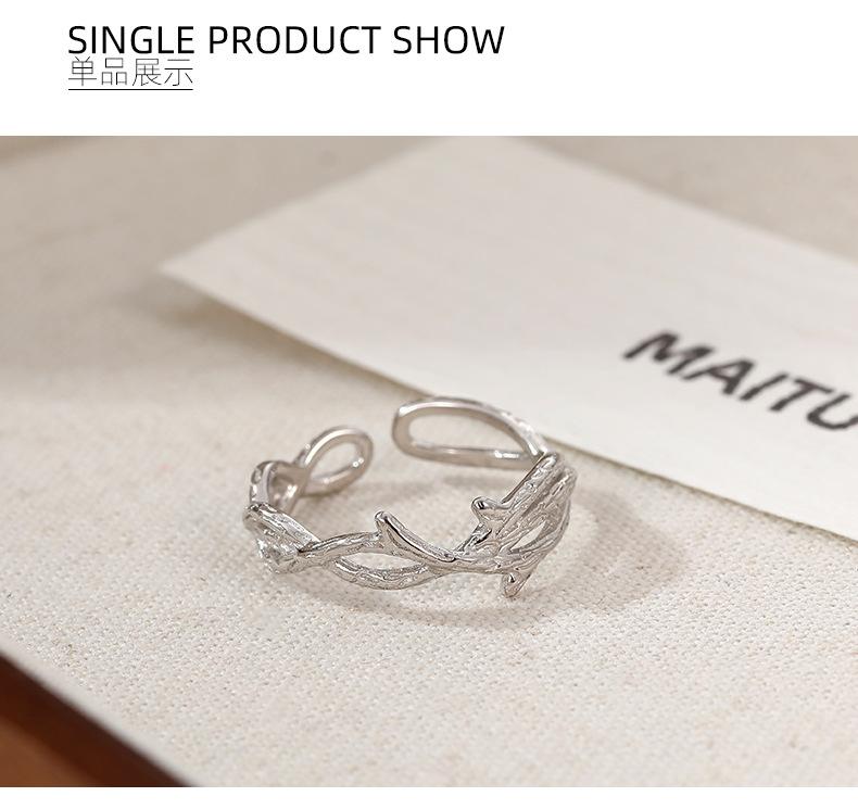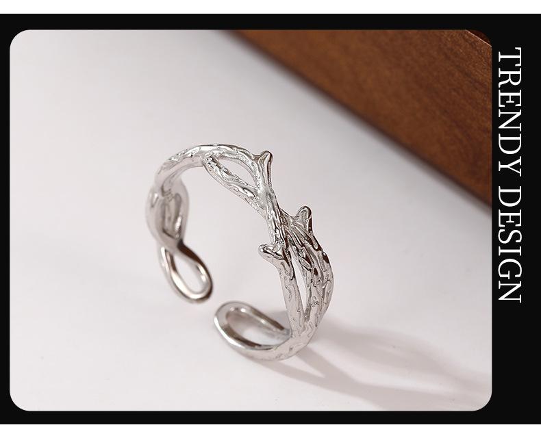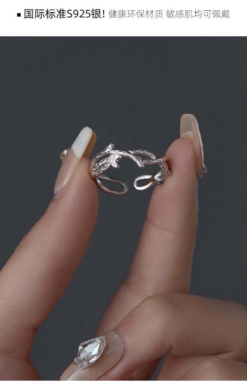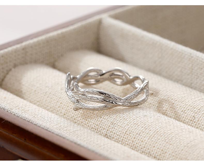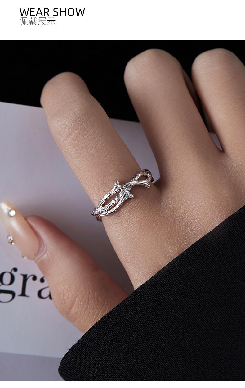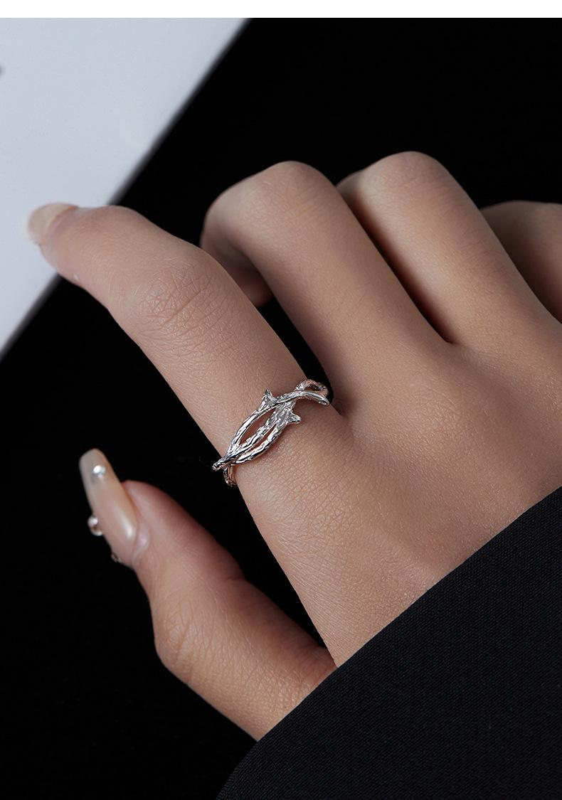 Anillo de espinas de viento frío de plata S925 bajo el árbol baniano personalidad anillo de rama irregular ajustable anillo de dedo ins food
