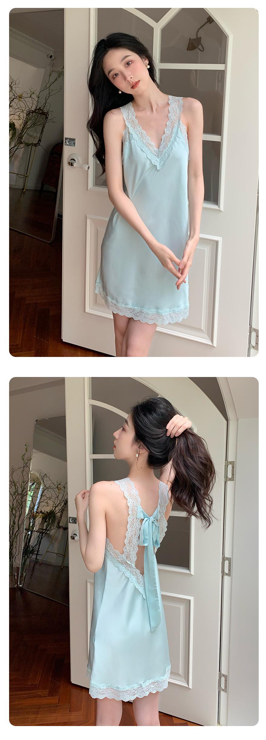 2023 Nuevo Libro Rojo Pequeño recomendado ~ Camisón de mujer con lazo de encaje en la espalda, pijama de tirantes, conjunto de dos piezas para el hogar