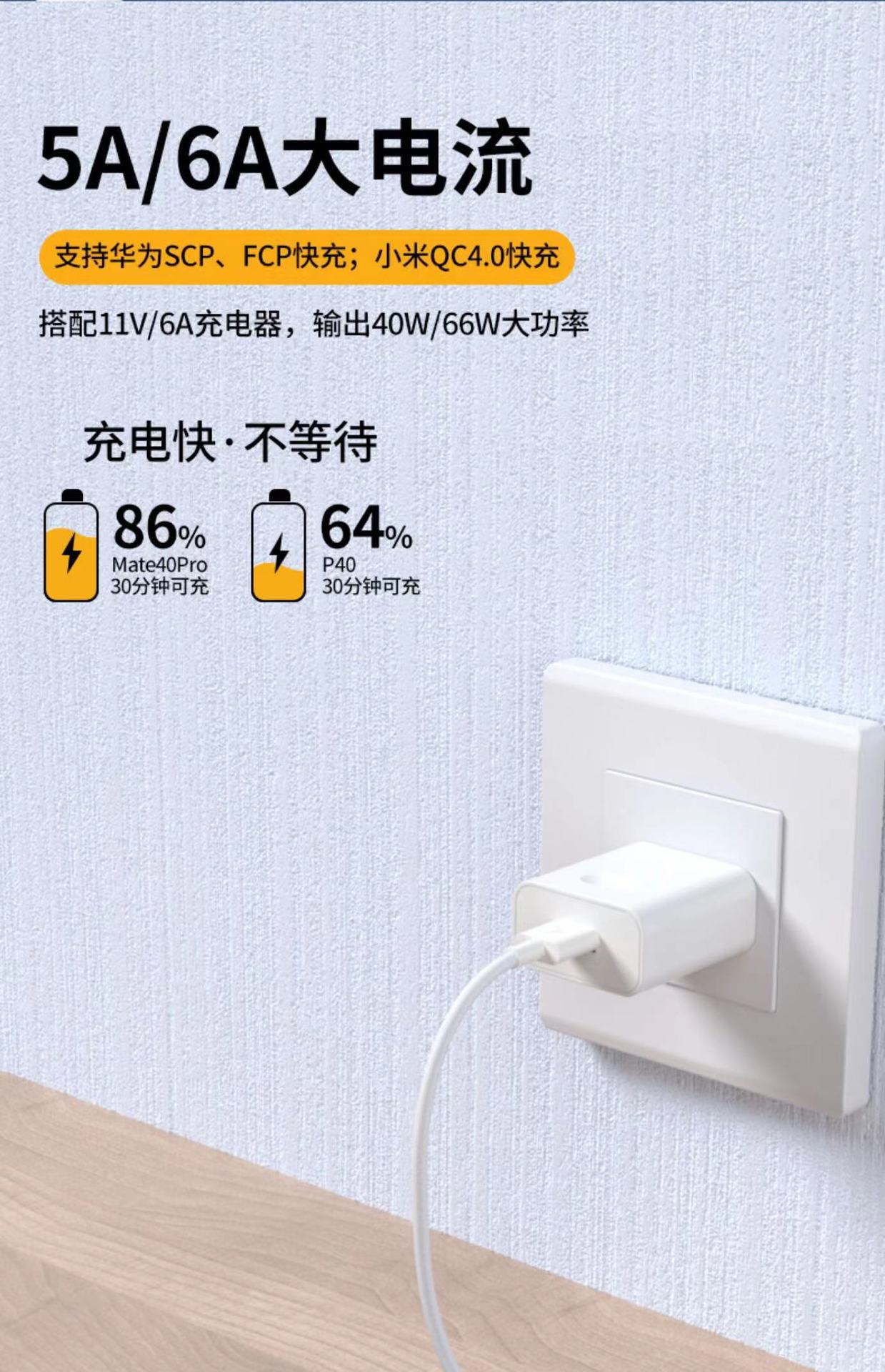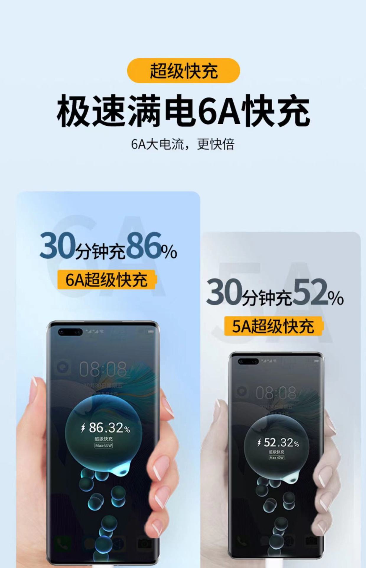 Cable de Datos de Carga Super Rápida de 66W Adecuado para Huawei Tipo-C Android Apple Teléfono Móvil Cable de Carga 6A/5A Venta al por Mayor