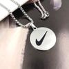 Collar con colgante redondo de acero inoxidable estilo europeo y americano, con gancho, estilo hip hop callejero, cadena de suéter vintage que no se decolora.