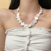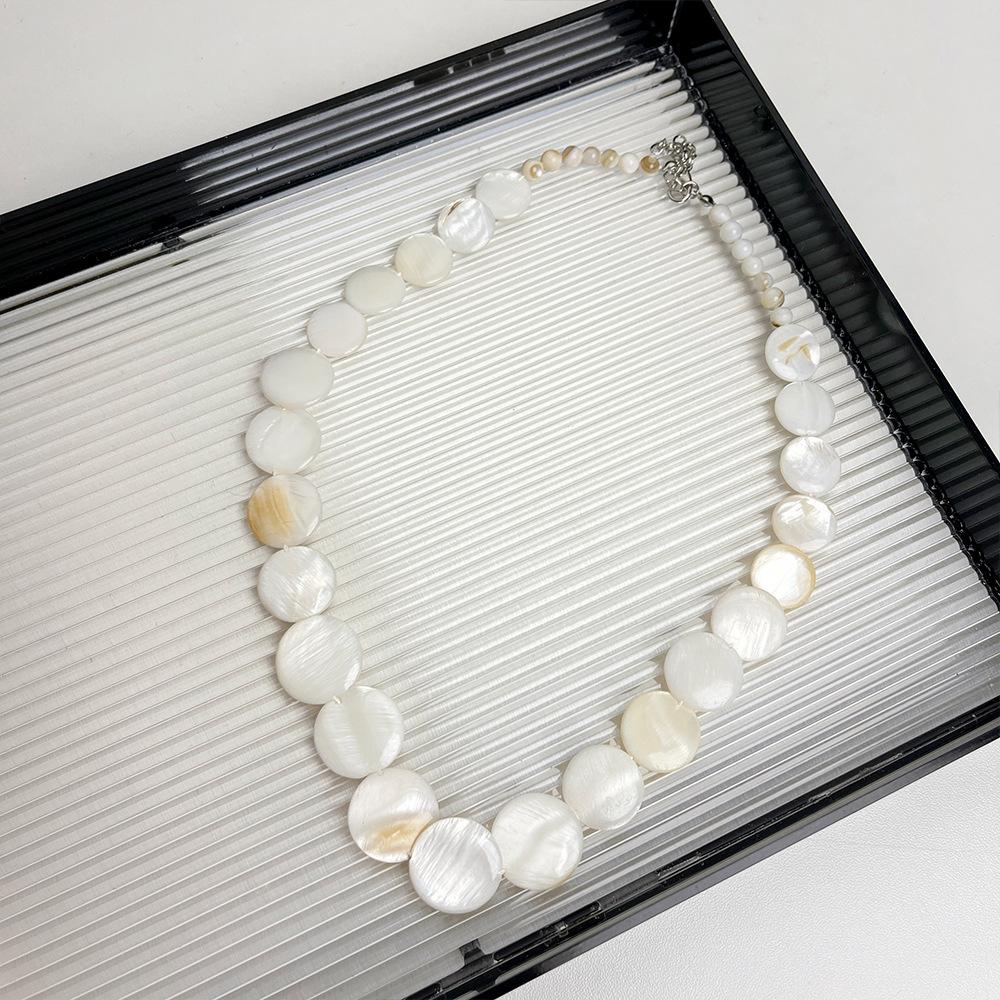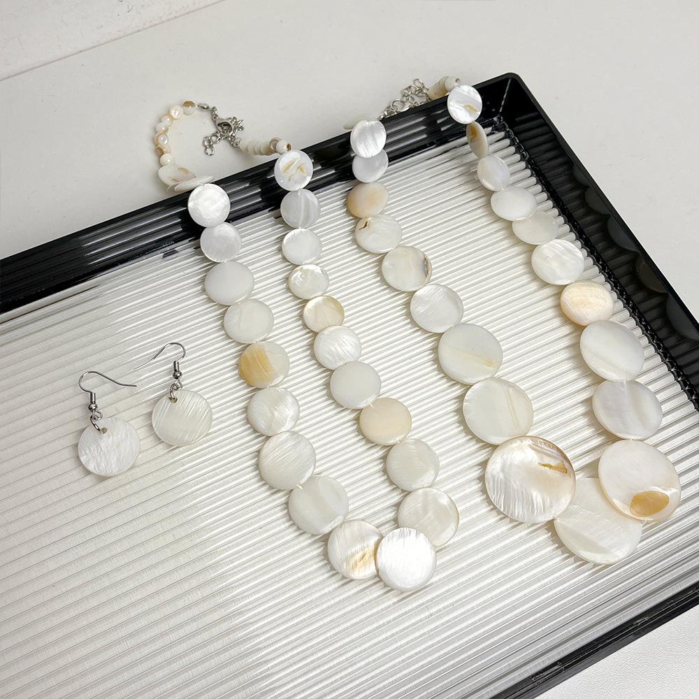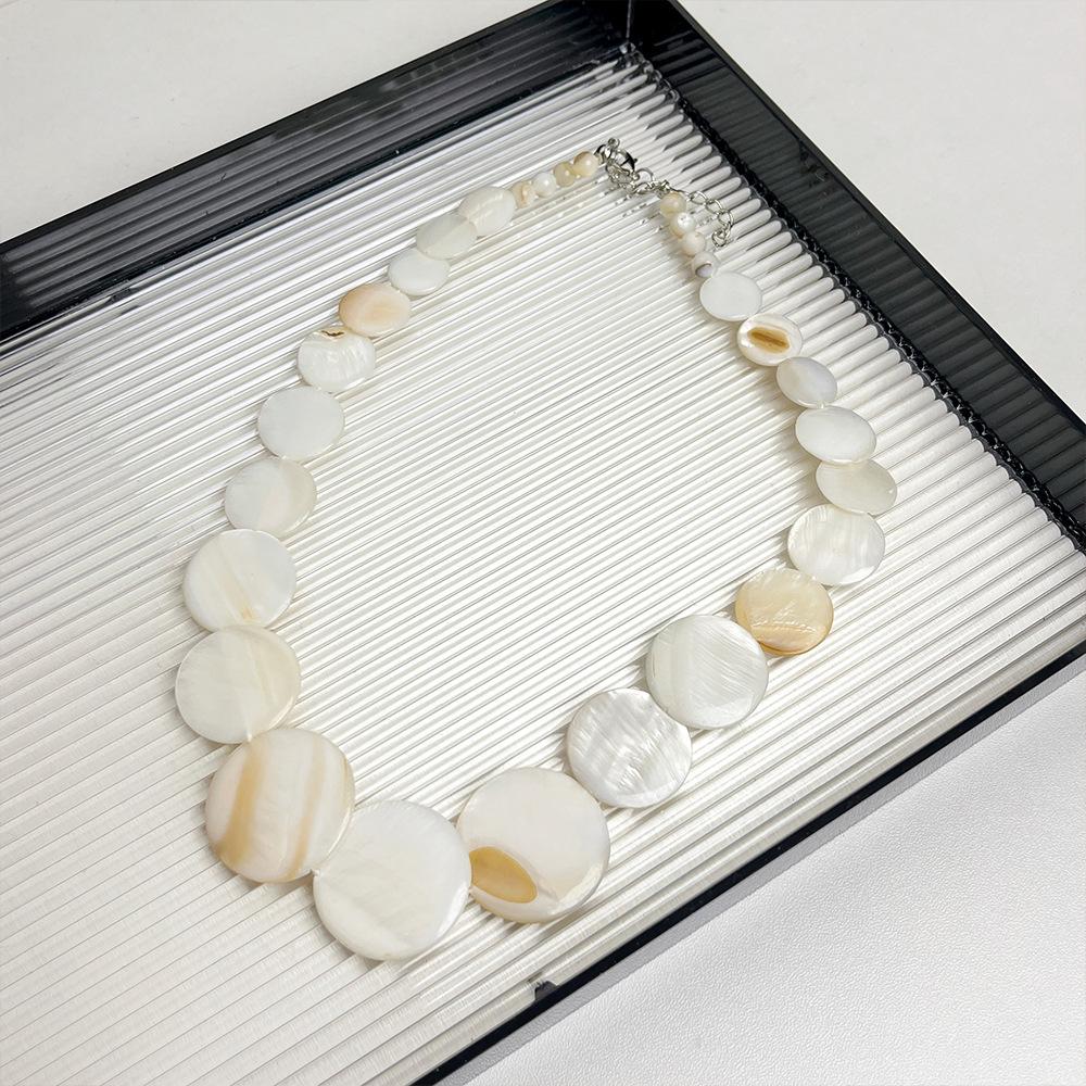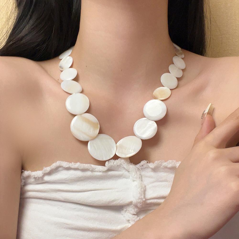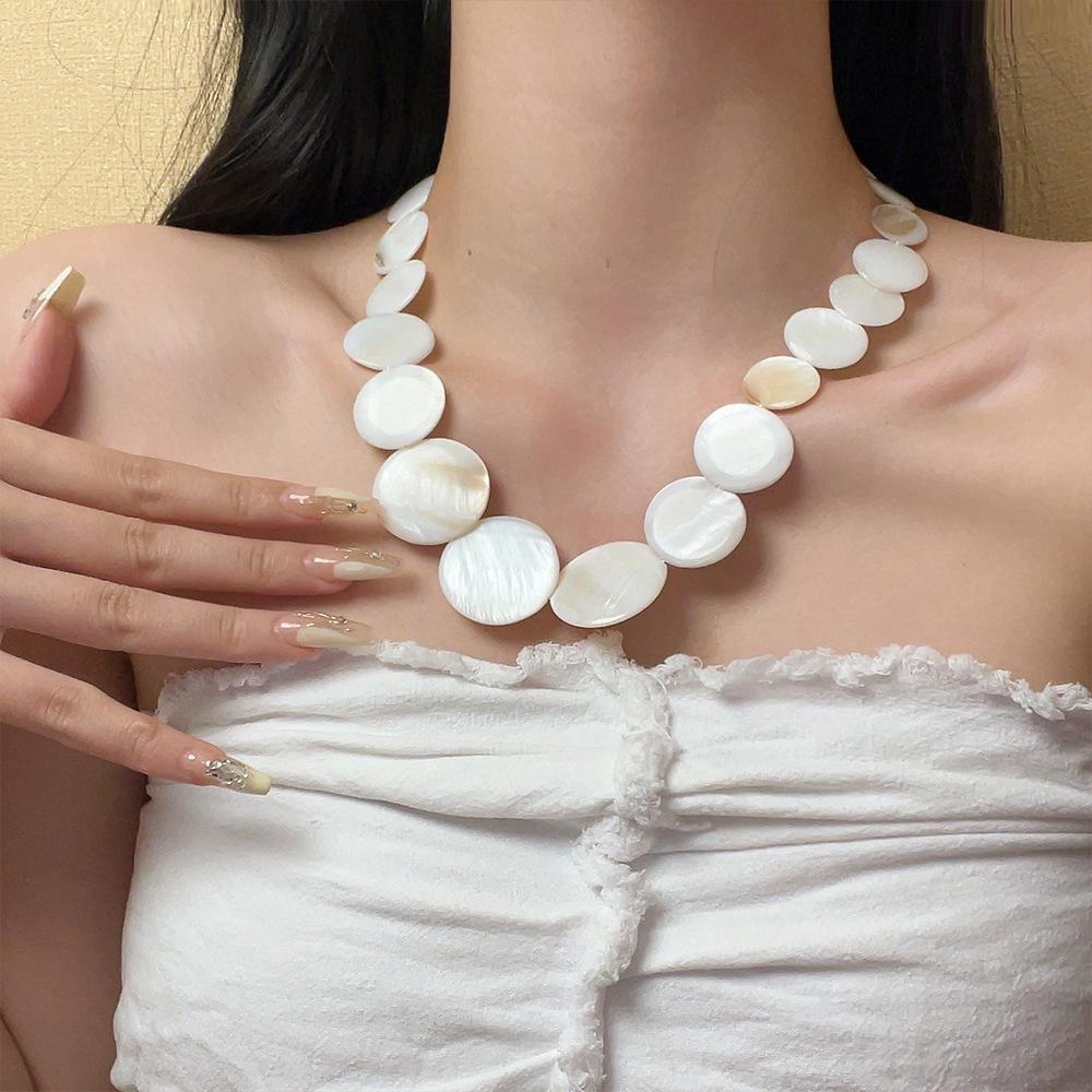 Pendientes de collar con cuentas de concha natural redondas estilo festivo, diseño de nicho costero, elegante cadena de clavícula, nuevos pendientes