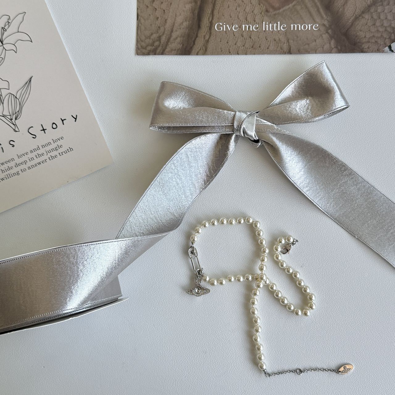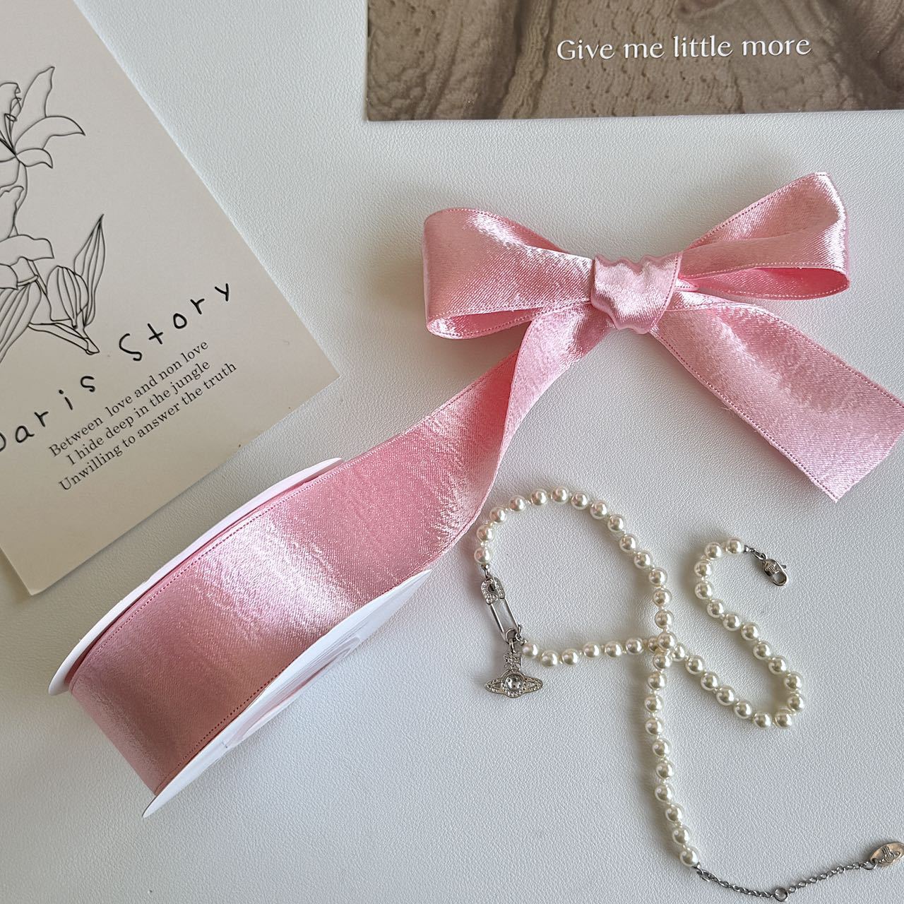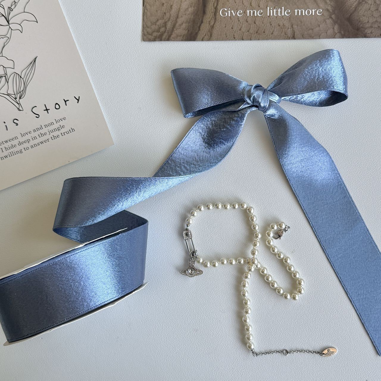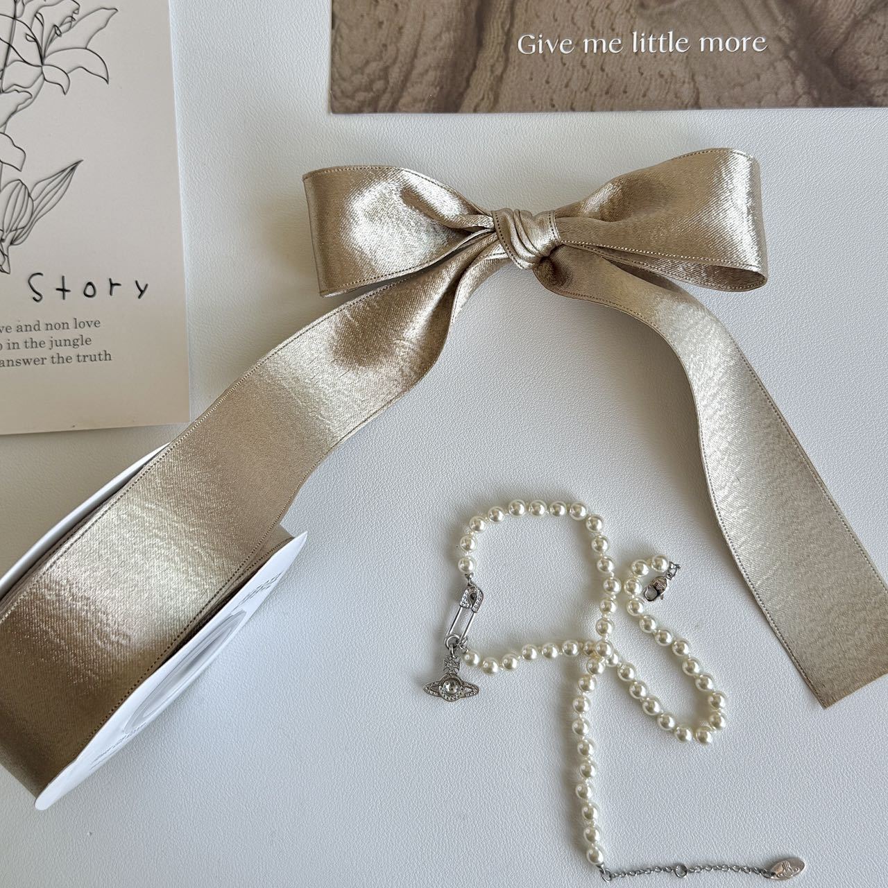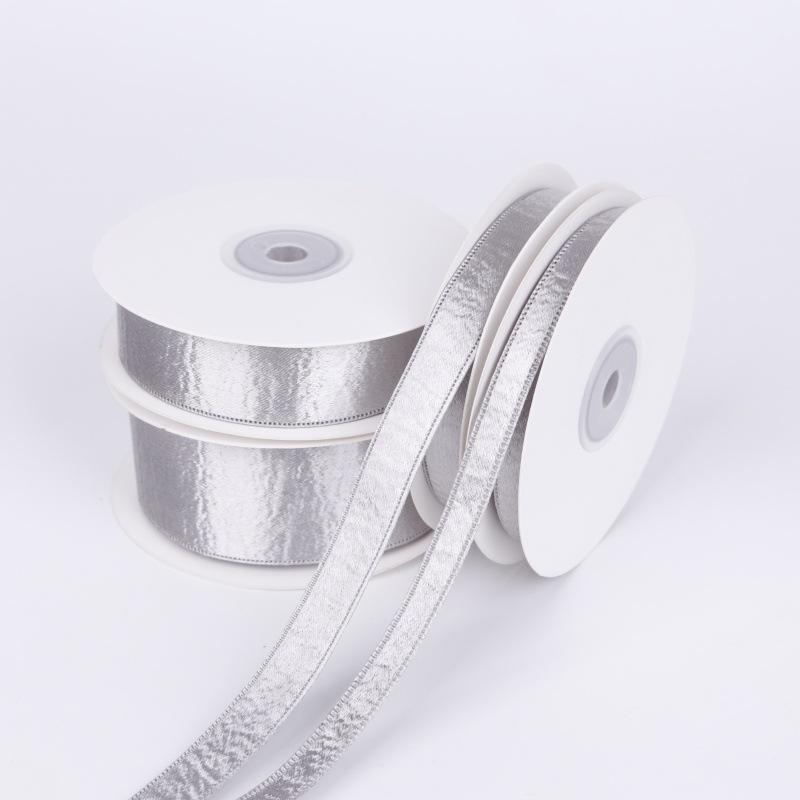Cinta de Raso Metalizada de Doble Cara Plateada Coreana Cinta de Raso de Alta Gama Lazo Metálico Accesorios para el Cabello Tocado Accesorios de Vestir