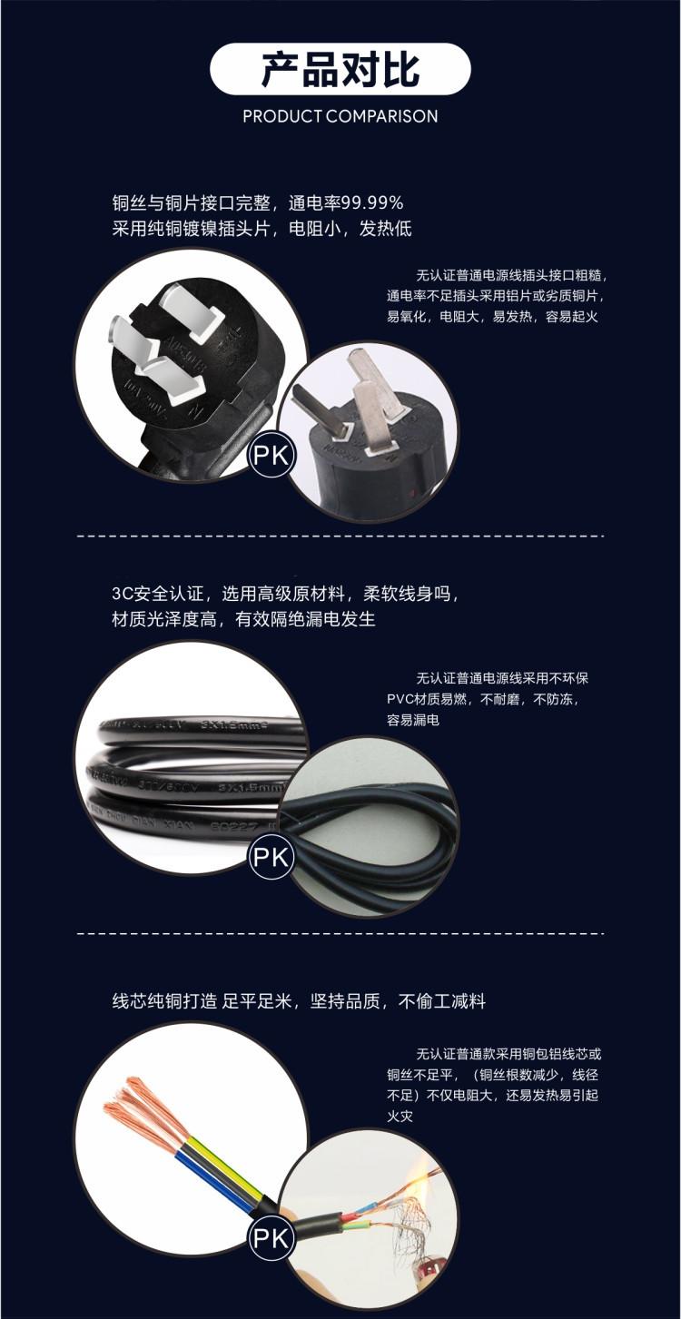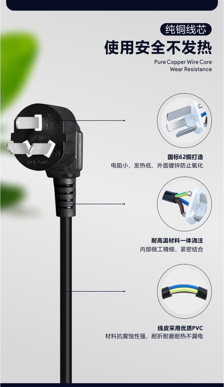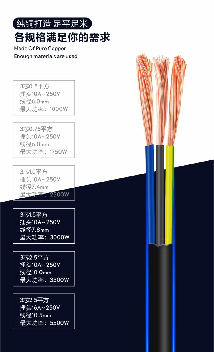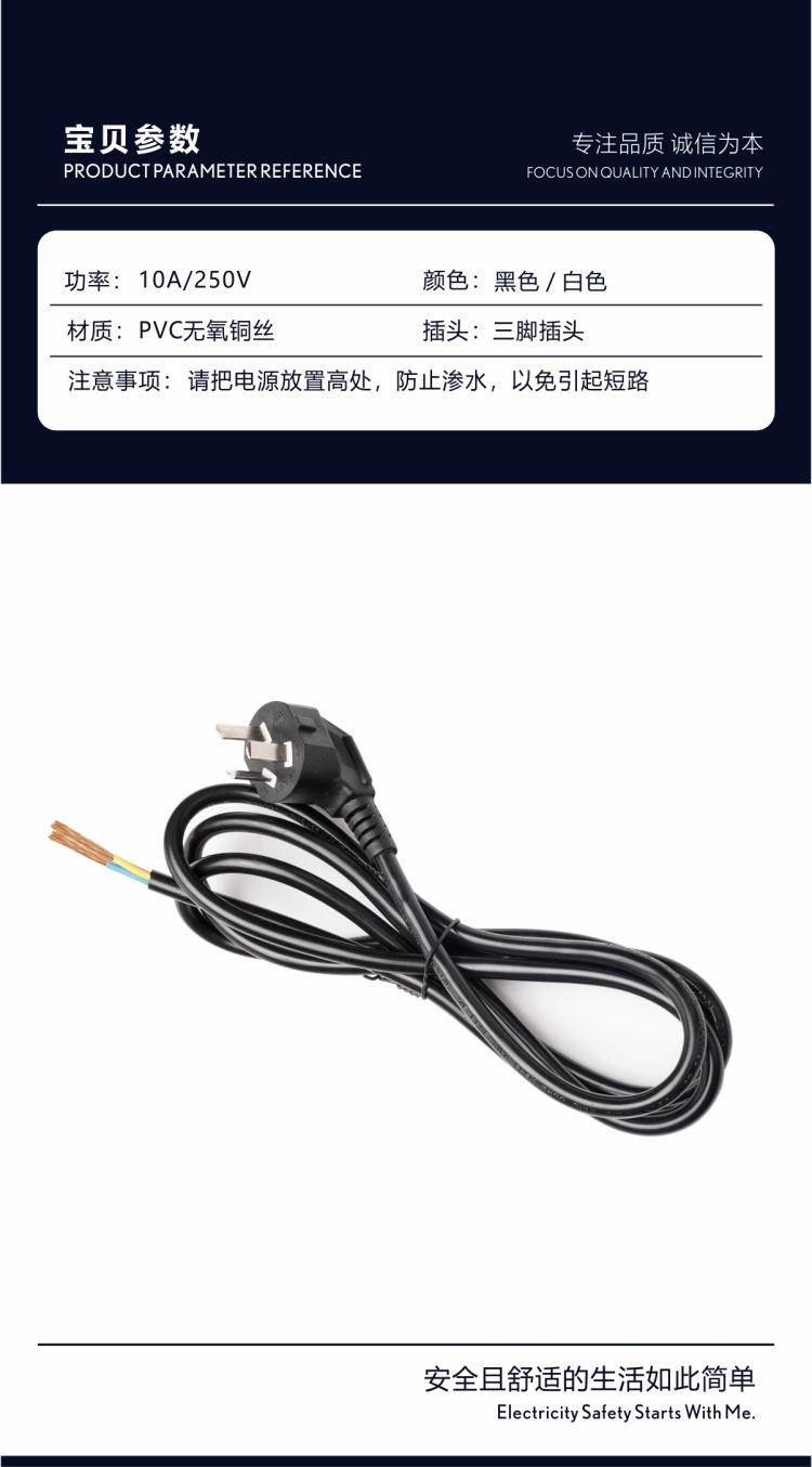Cable de alimentación de cobre puro 10A16A 3x 0,75 1 1,5 2,5 cable de enchufe de tres clavijas cable de alimentación de tres clavijas con enchufe