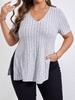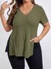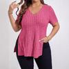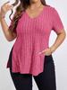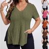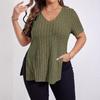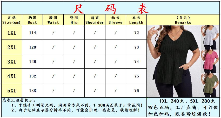 2024 primavera y verano ropa de mujer transfronteriza europea y americana nueva camiseta cepillada de manga corta con cuello en V de color sólido y abertura en la parte superior de talla grande