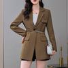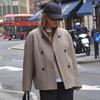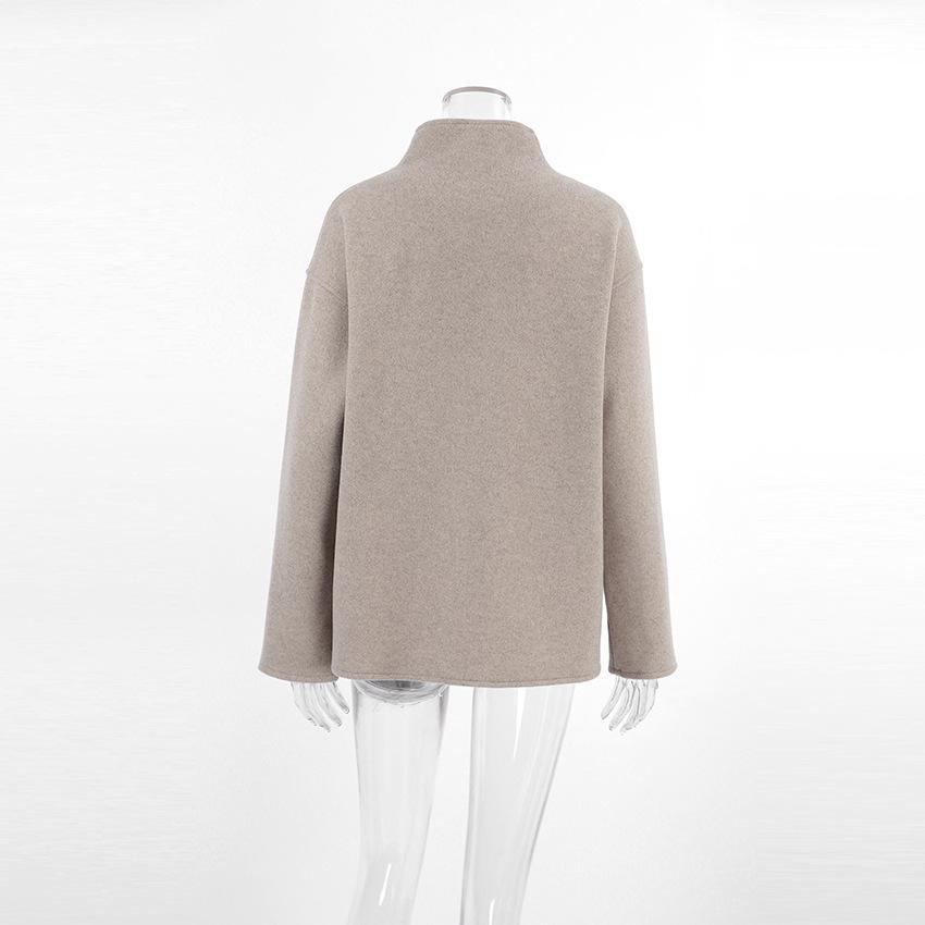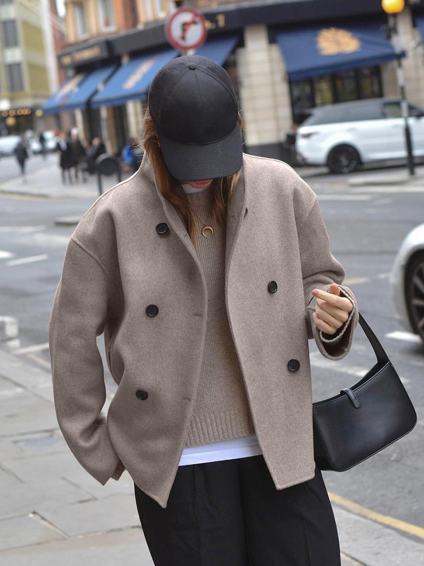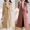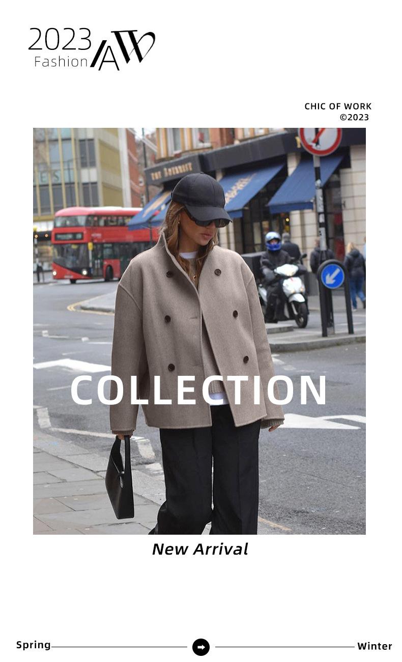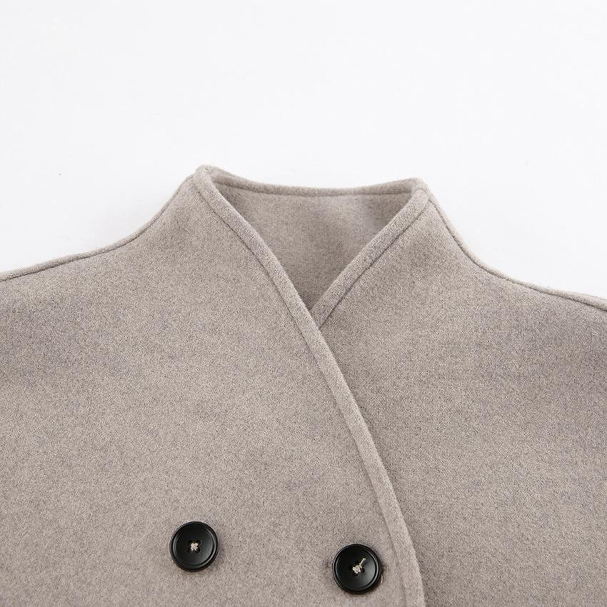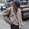 Abrigo de lana cruzado con cuello en V estilo francés marrón 2023 nuevo traje de otoño e invierno de comercio exterior europeo y americano ropa de mujer