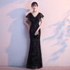 2025 Nuevo Elegante y Sexy Vestido Largo de Banquete de Verano de Cola de Pez Ajustado Negro Ancla Vestido de Noche de Encaje