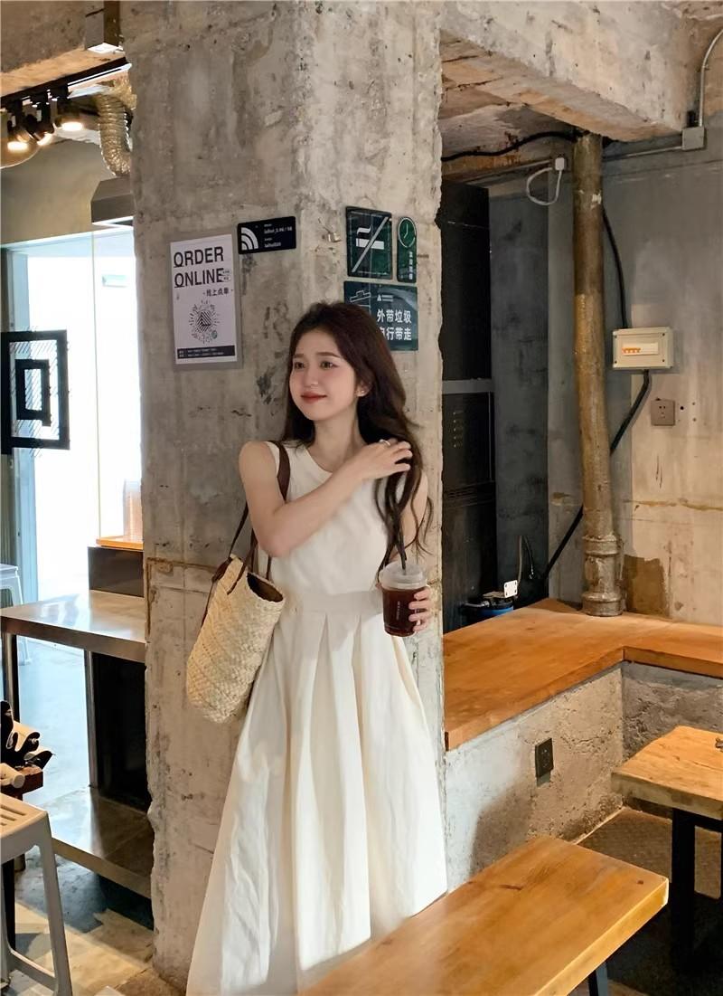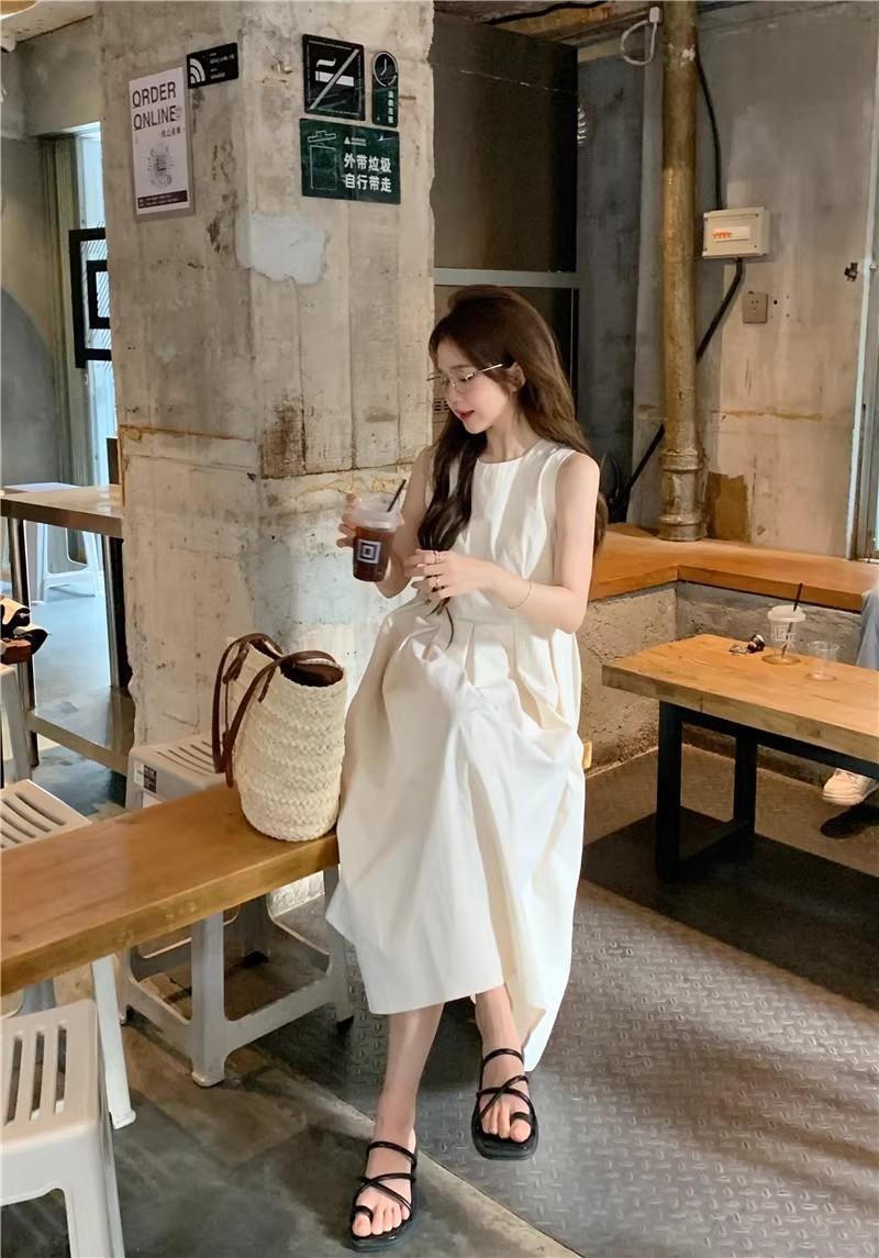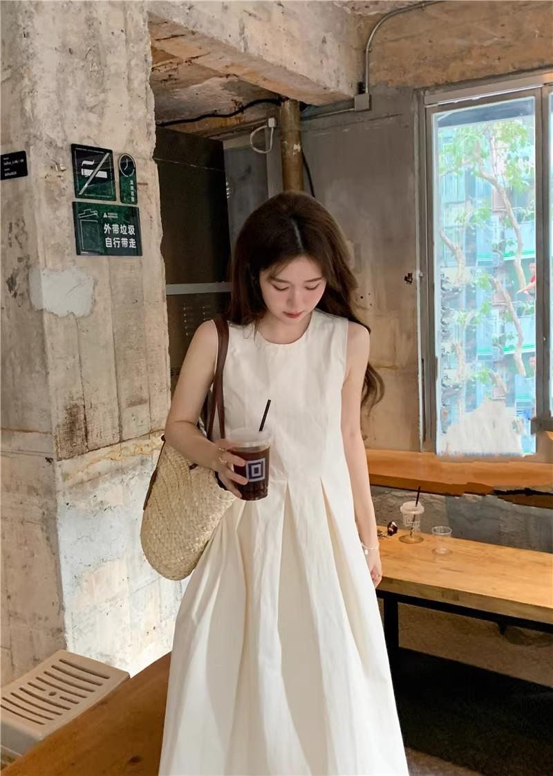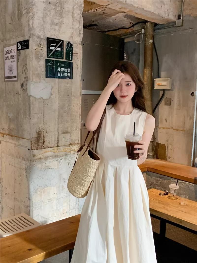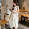 Gongyu Weng Verano Francés Albaricoque Mediano A-line Falda Vestido Sin Mangas Nuevo Color Elegante Falda Hasta la Rodilla