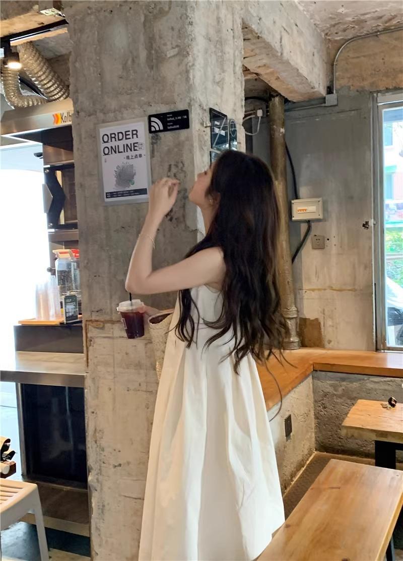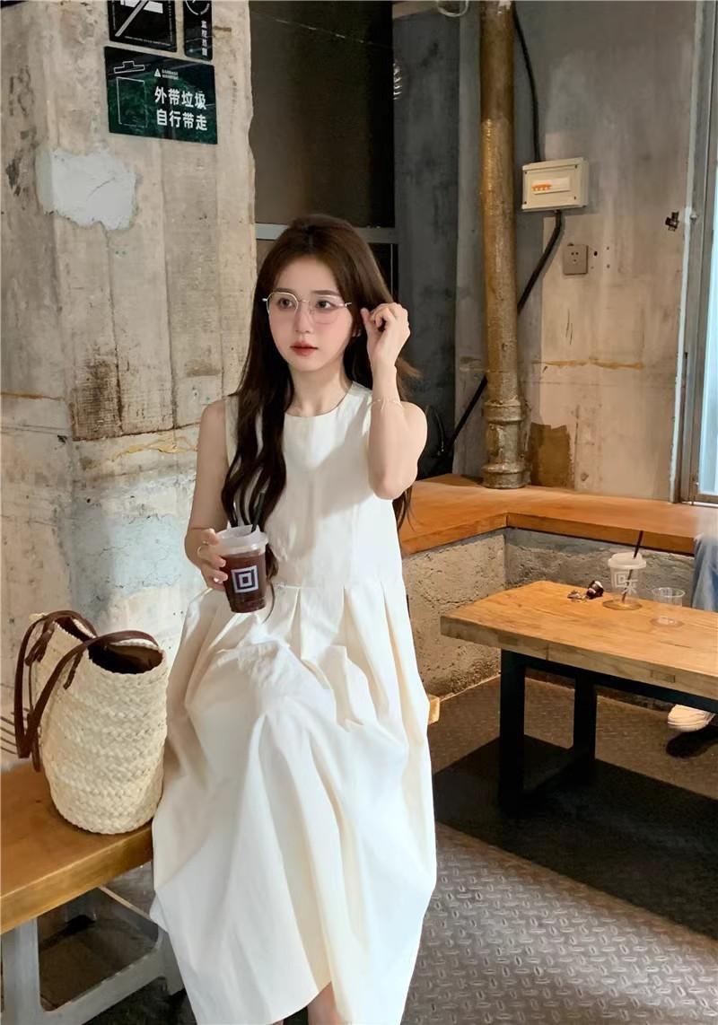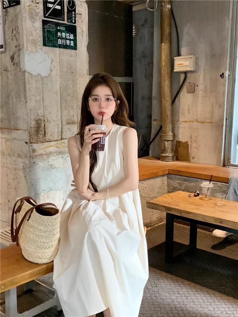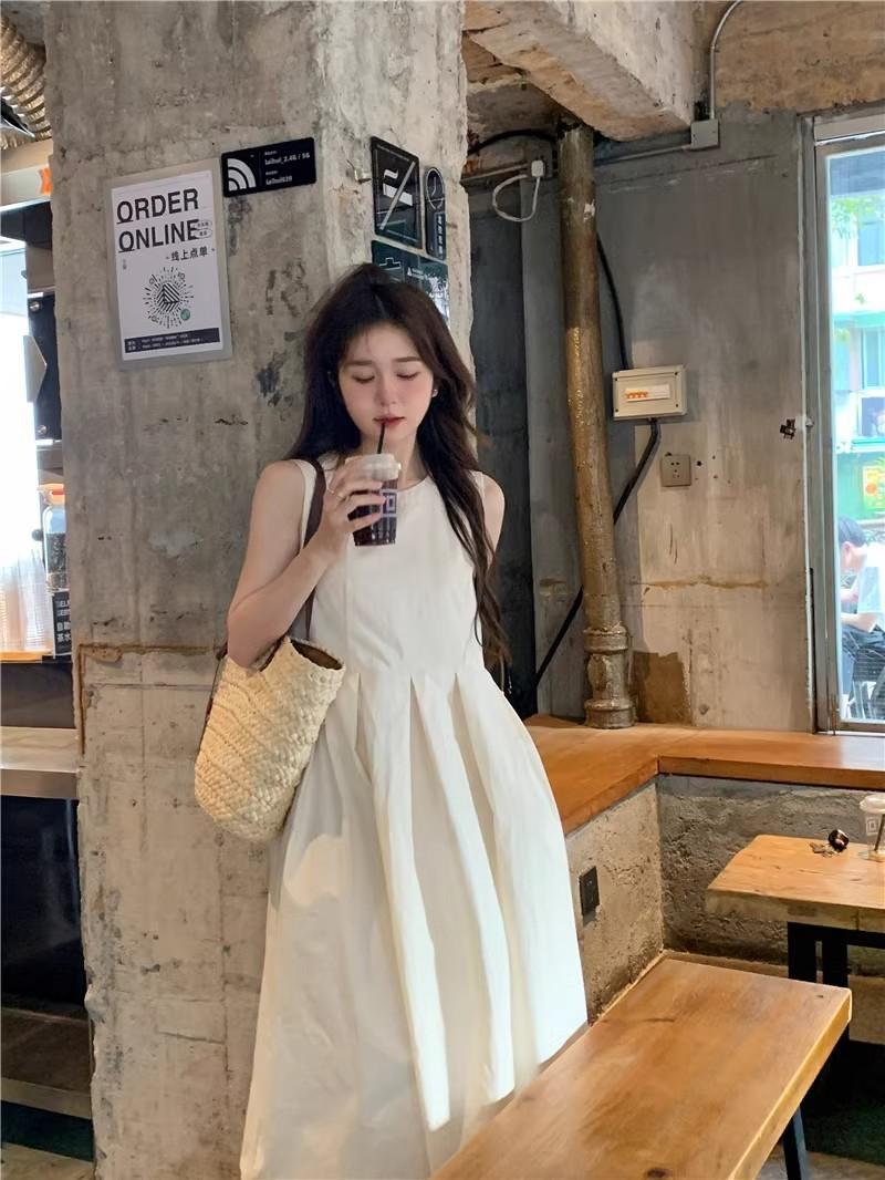 Gongyu Weng Verano Francés Albaricoque Mediano A-line Falda Vestido Sin Mangas Nuevo Color Elegante Falda Hasta la Rodilla