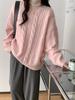 Suéter Pulóver Suave y Delicado con Trenzas para Mujer Otoño e Invierno Nuevo Holgado Combinable Cuello Redondo Top Perezoso para Mujer