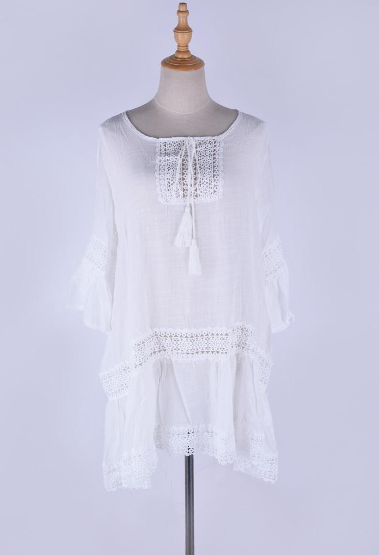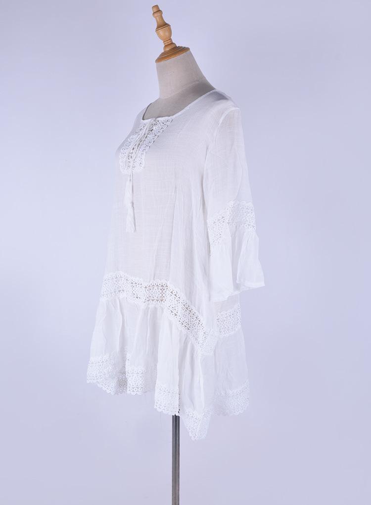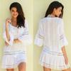 Gran oferta, nueva camisa de encaje de algodón en capas, estilo manga acampanada, para playa, protección solar, traje de baño, chaqueta, cárdigan femenino