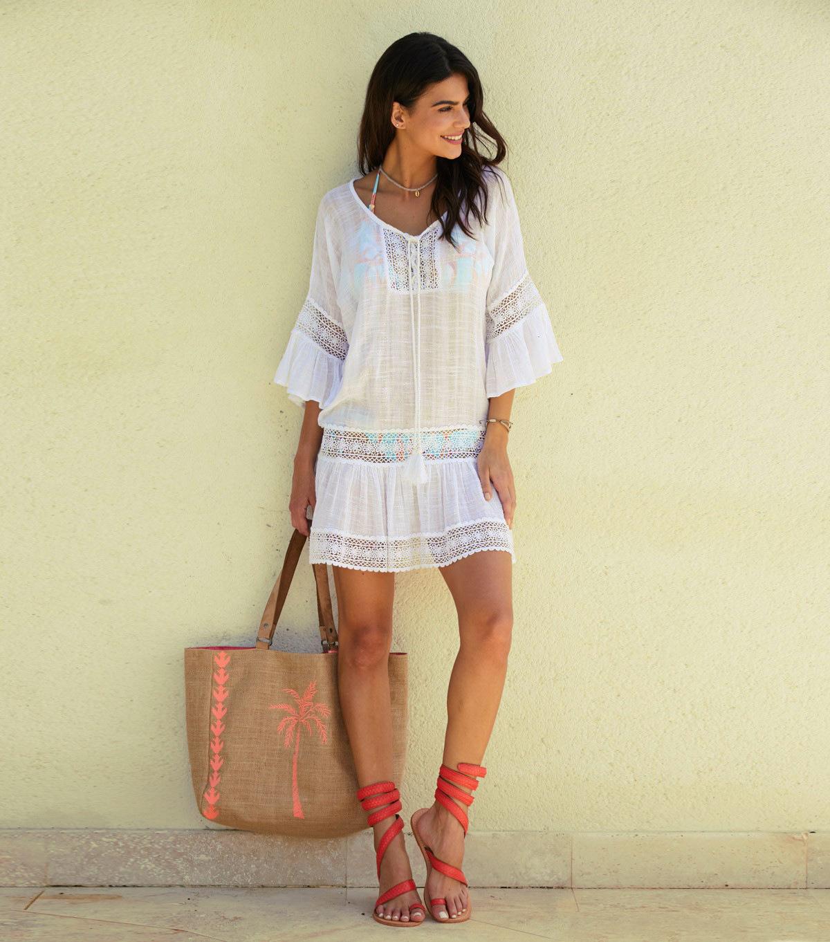 Vestido playero de algodón de bambú con cinturón, estilo europeo y americano, protector solar, sexy, sin espalda, falda corta, traje de baño femenino, ropa de abrigo