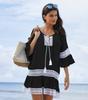 Nuevo cárdigan de playa de bikini de manga larga holgado estilo camisa negra estilo europeo y americano para vacaciones en la playa con protector solar