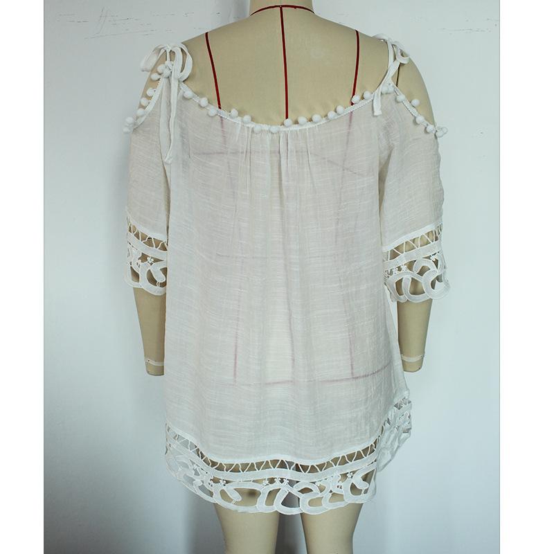 Gran oferta, nueva camisa de encaje de algodón en capas, estilo manga acampanada, para playa, protección solar, traje de baño, chaqueta, cárdigan femenino