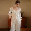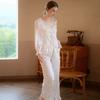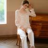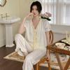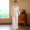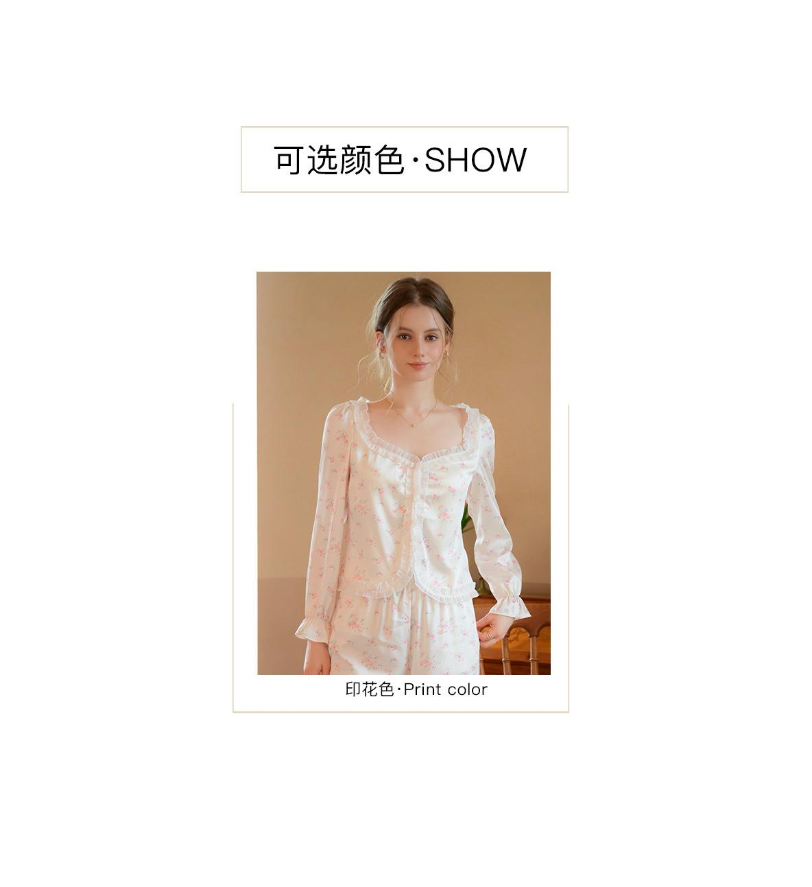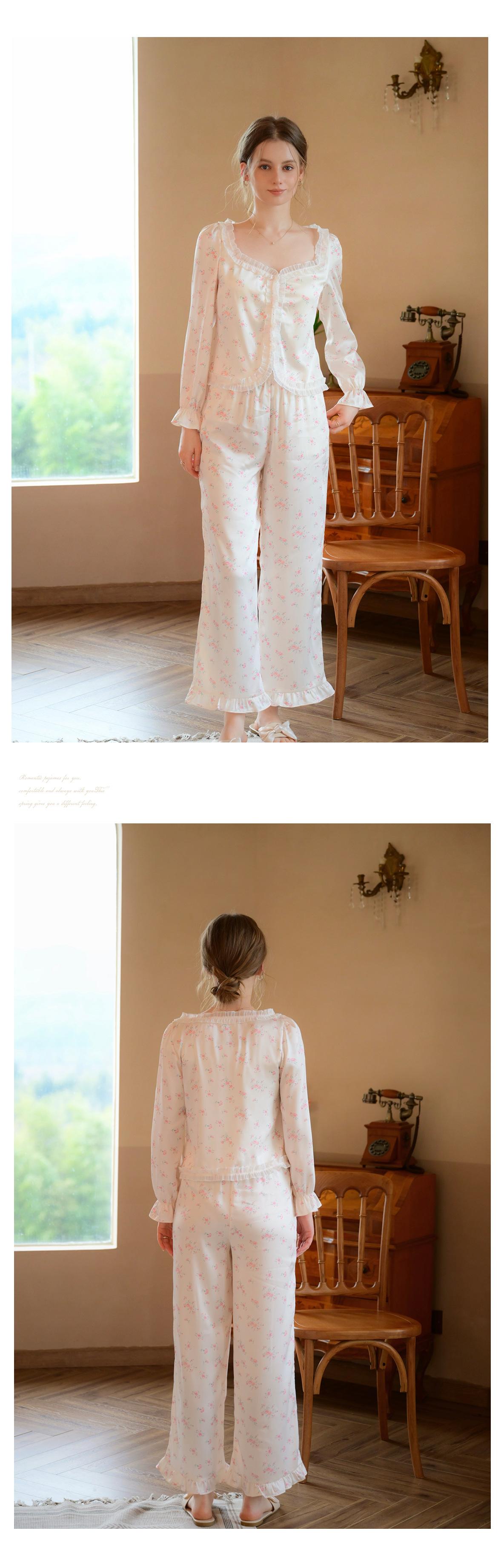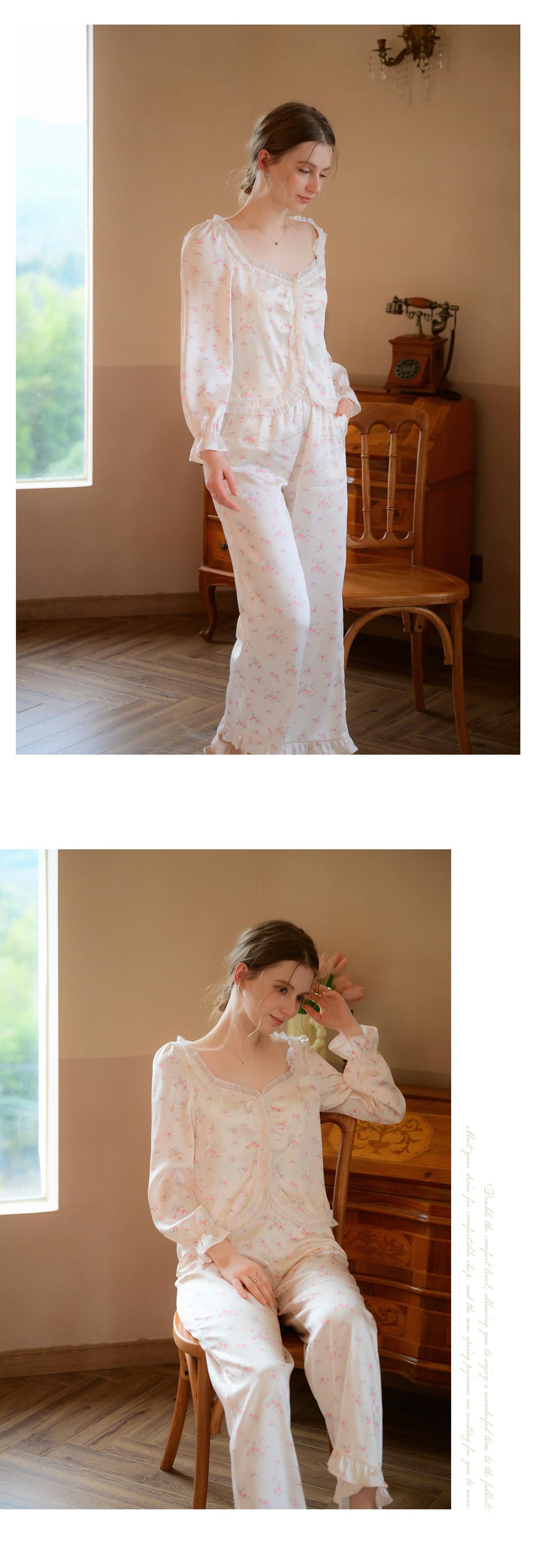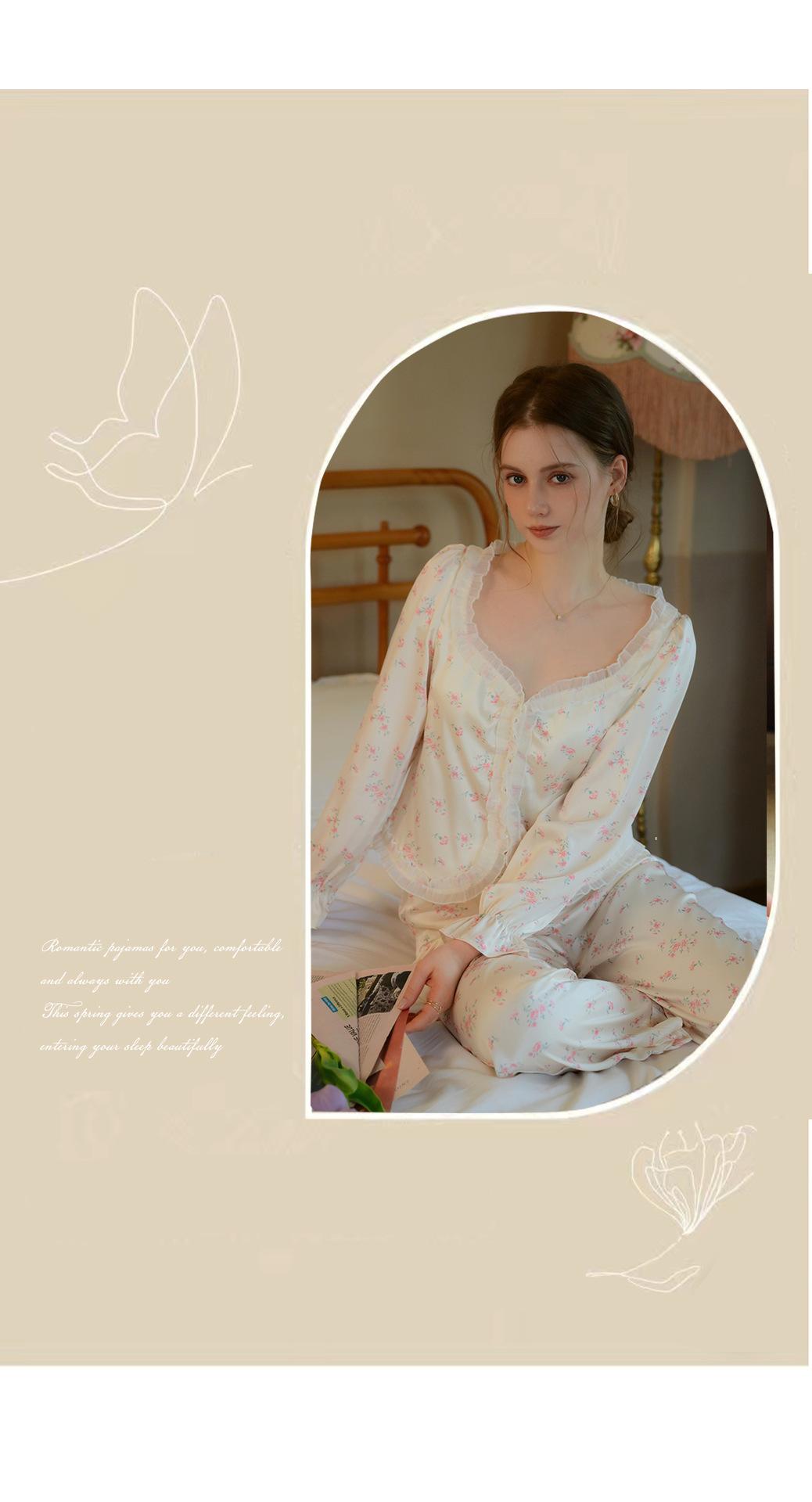 Conjunto de Pijama Francés para Mujer Primavera 2024 Nuevo Satén Estampado Pantalón de Manga Larga Ropa de Casa de Alta Gama Se Puede Usar Afuera