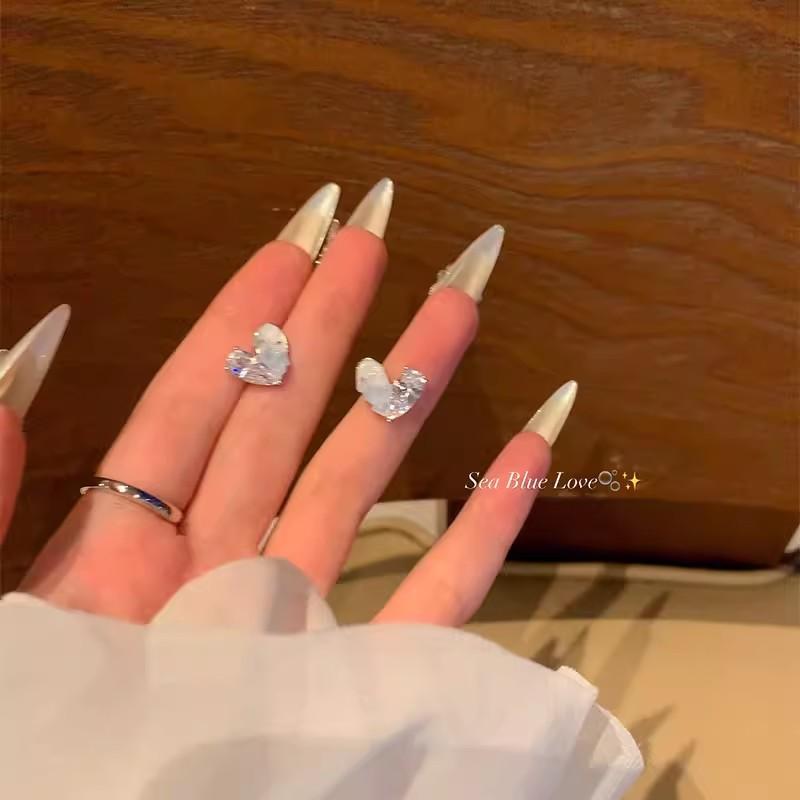 Aretes de Amor Azul Hielo de Verano para Mujer, Aretes Elegantes y Atmosféricos de Lujo Ligero y Alta Gama