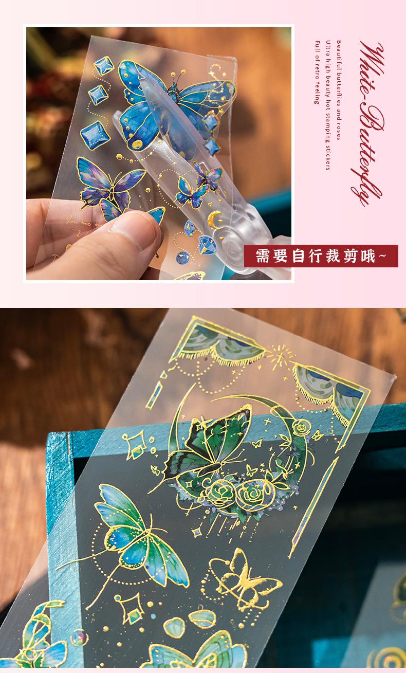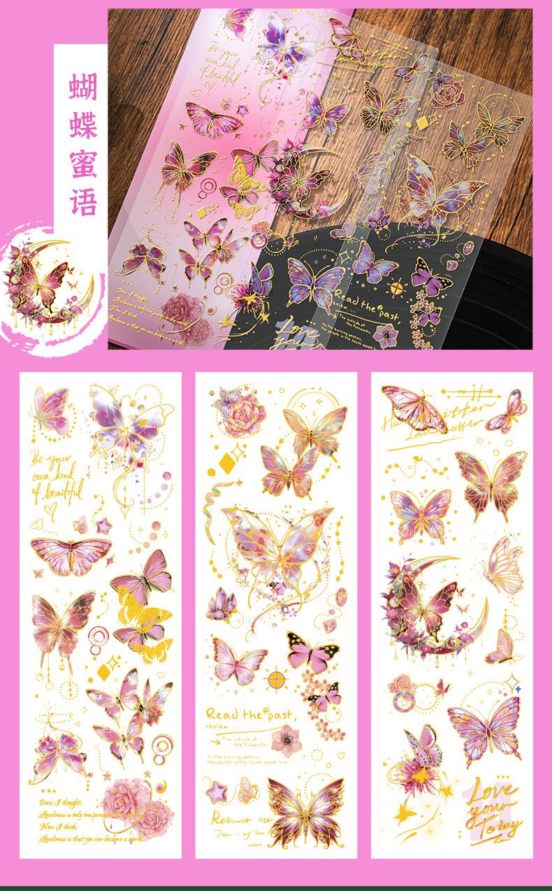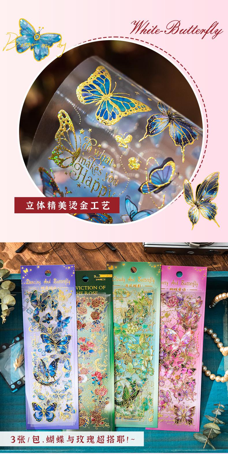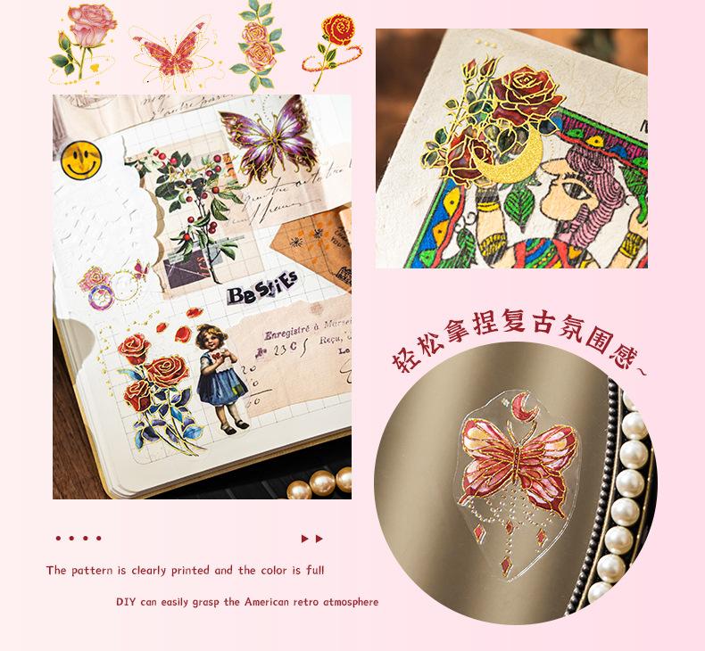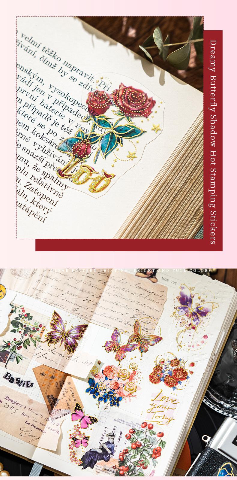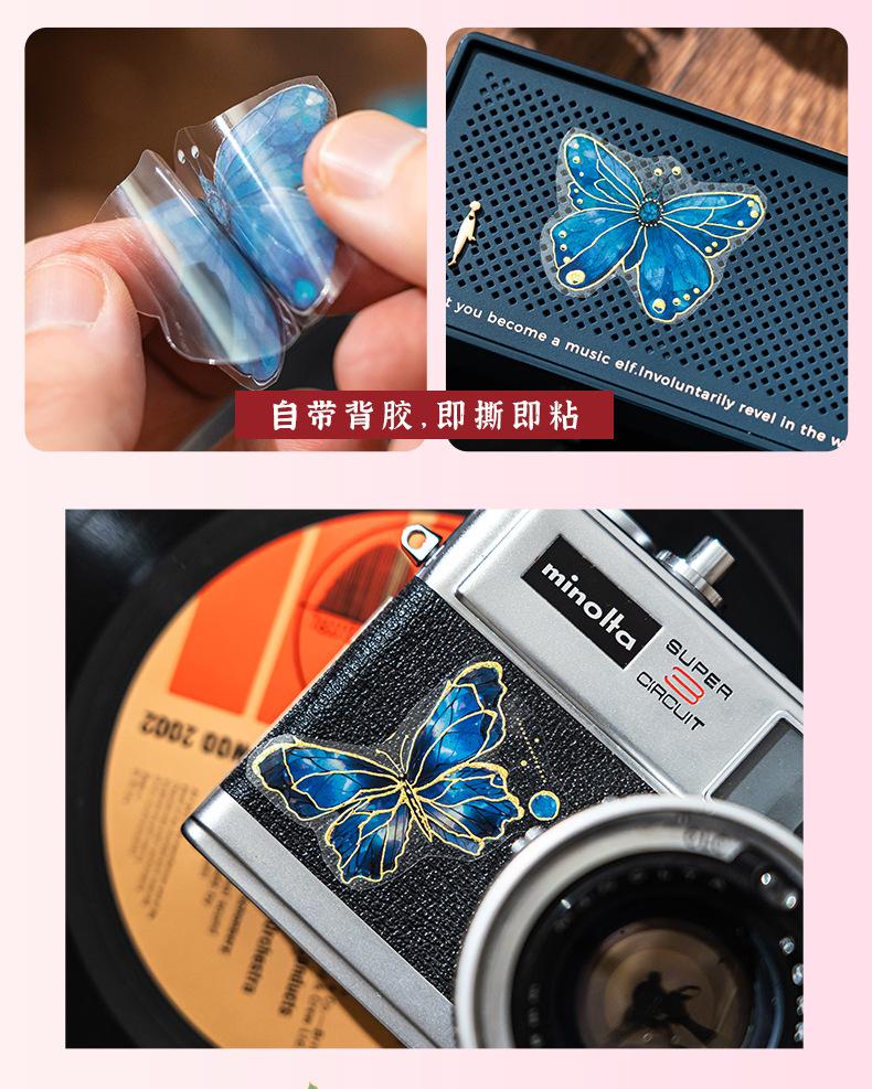 Calcomanía Mariposa Sombra Rosa Estampado en Caliente Alto Valor Estilo Ins Transfronterizo Material de Decoración de Cuenta de Mano Retro Americano Calcomanía de Cuenta de Mano St