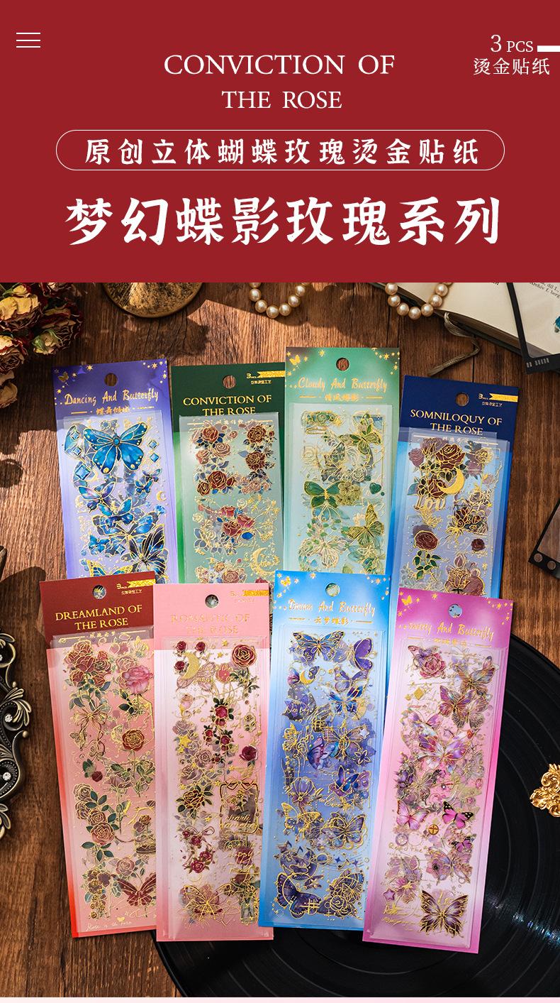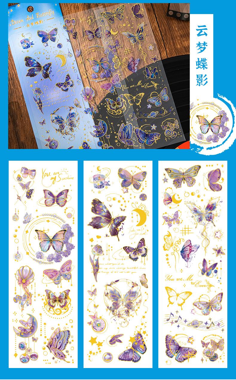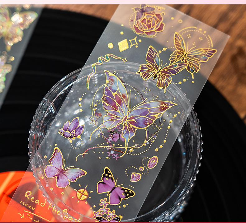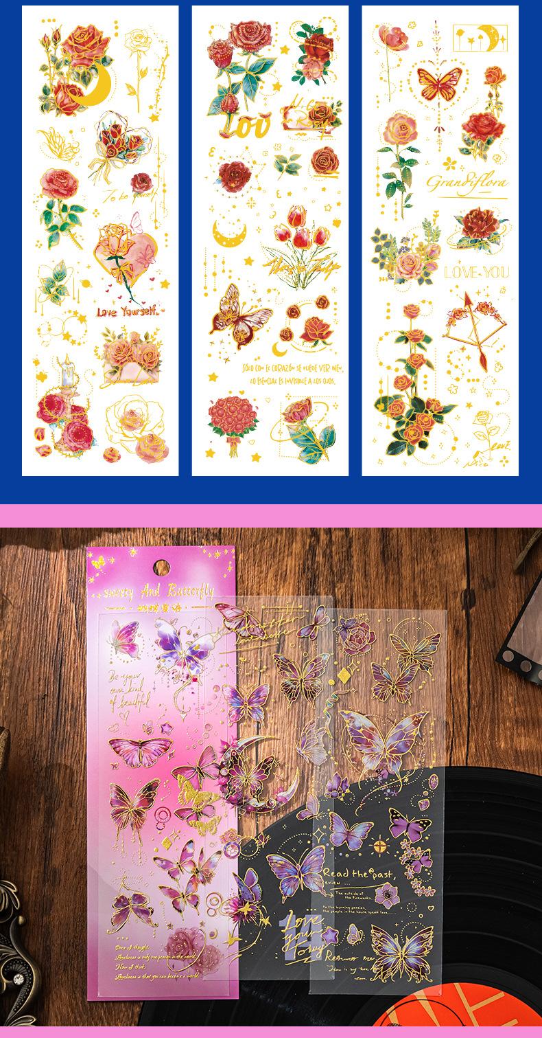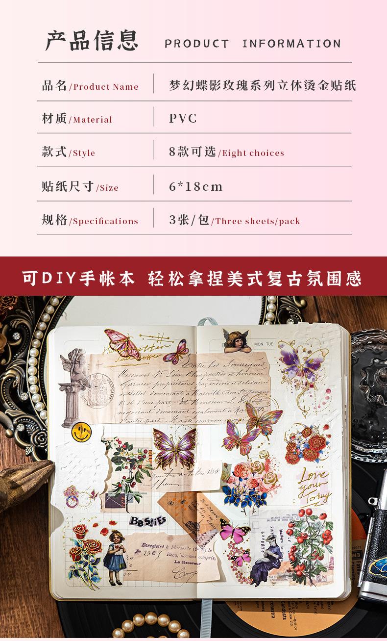 Calcomanía Mariposa Sombra Rosa Estampado en Caliente Alto Valor Estilo Ins Transfronterizo Material de Decoración de Cuenta de Mano Retro Americano Calcomanía de Cuenta de Mano St